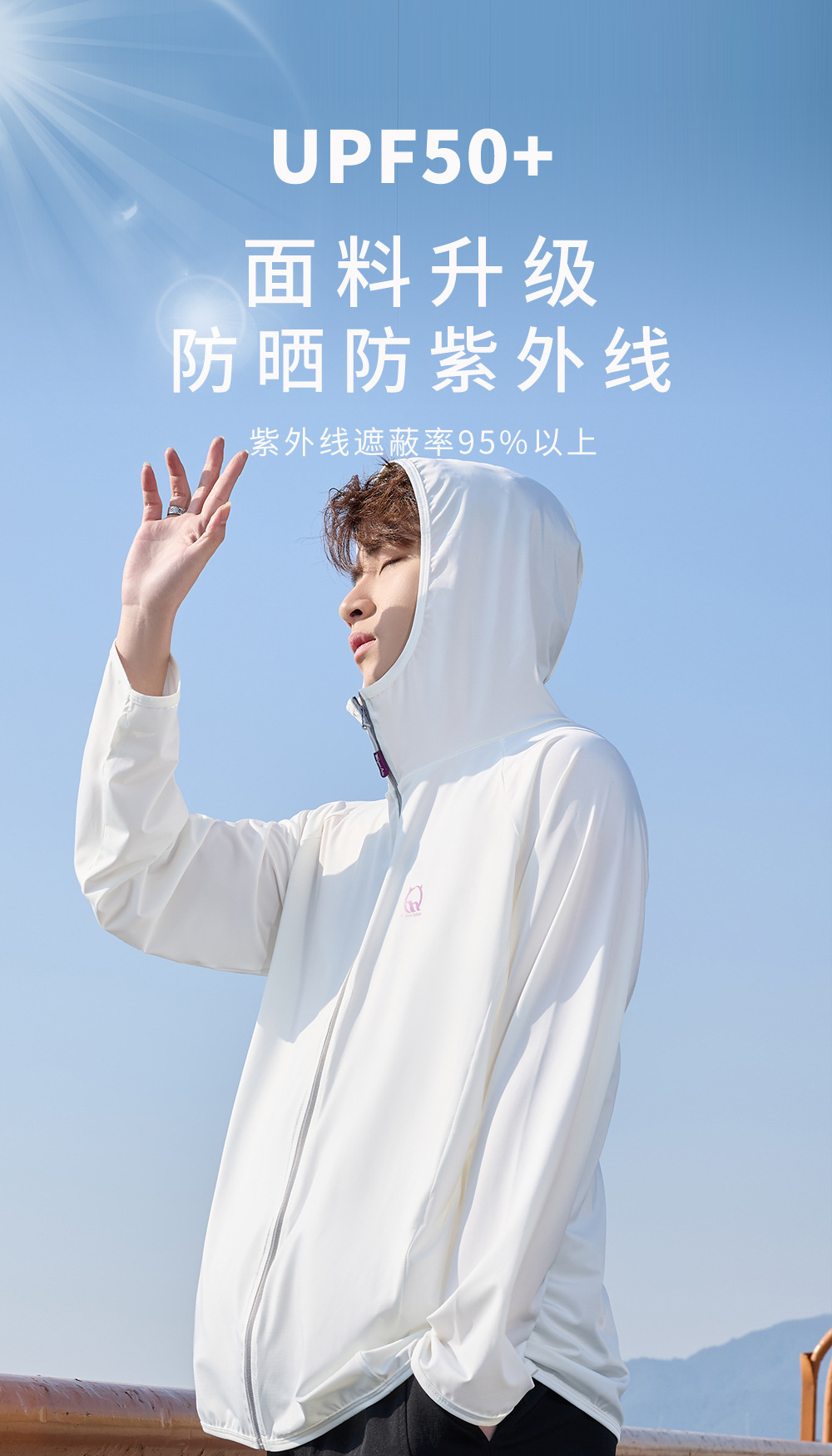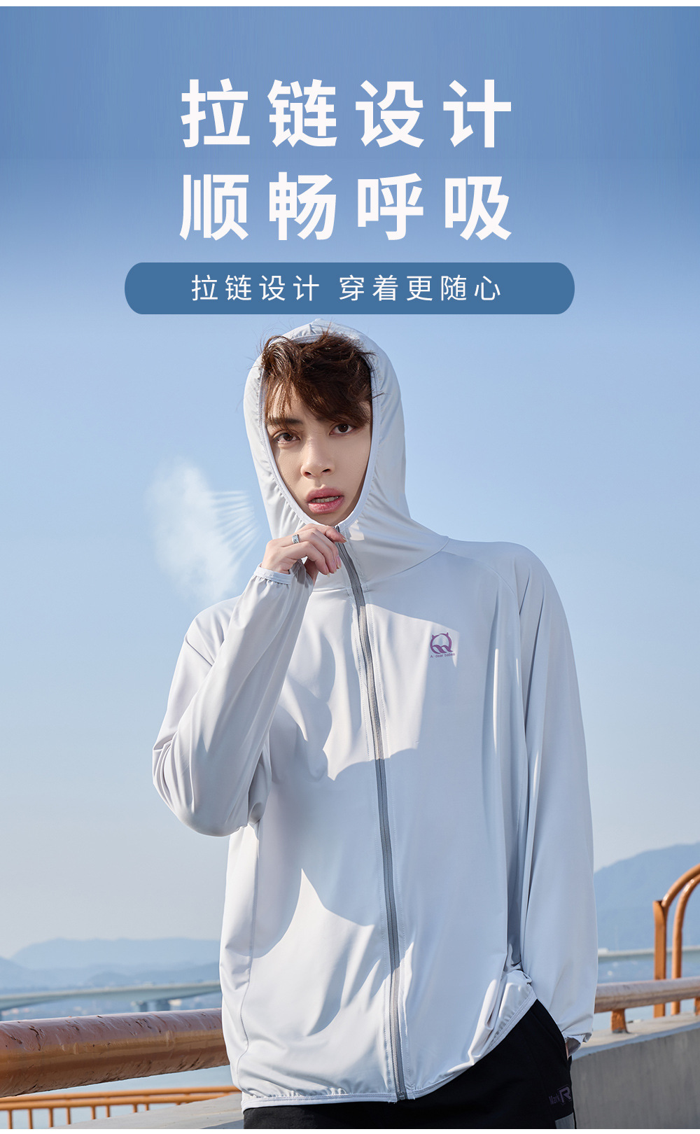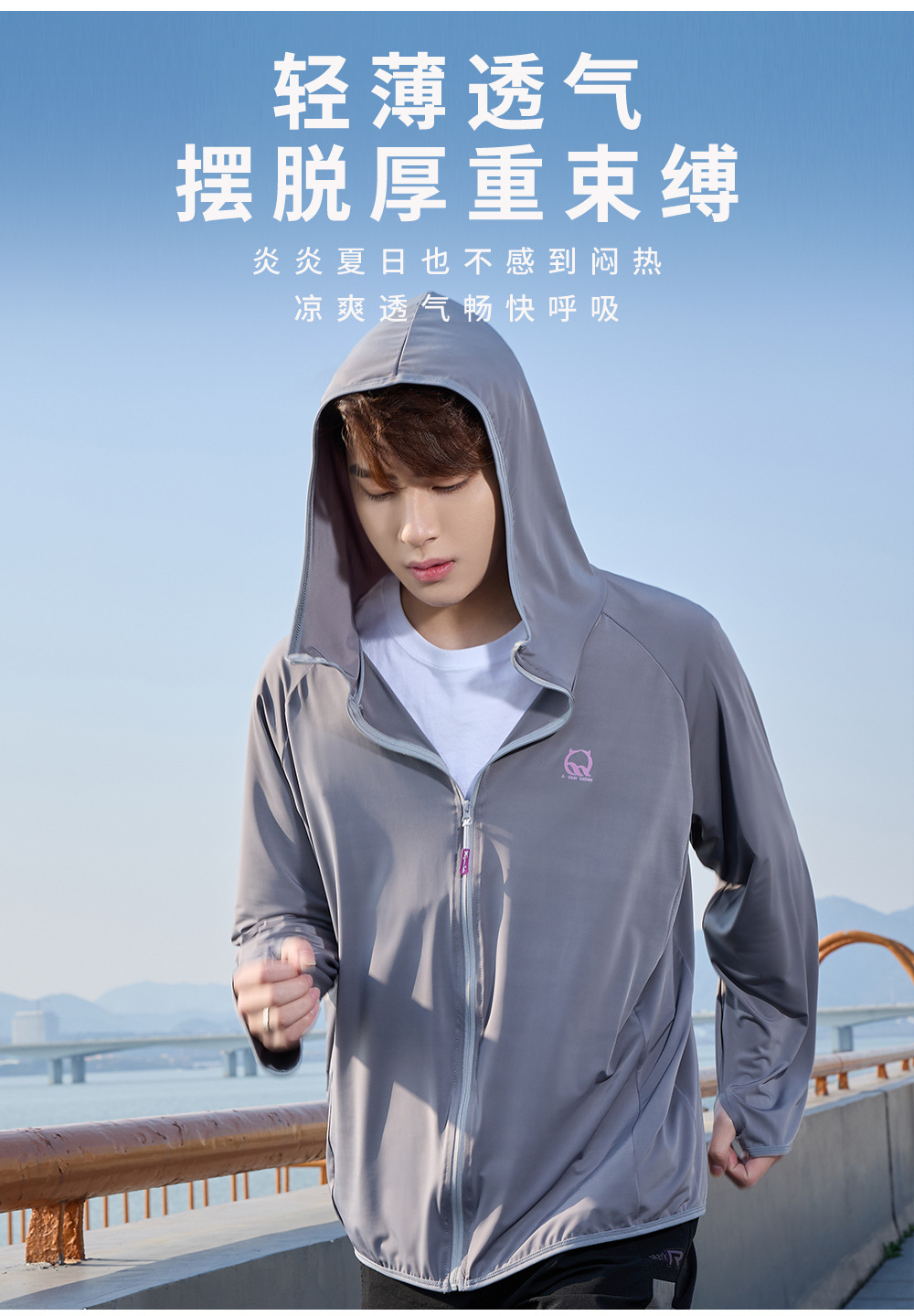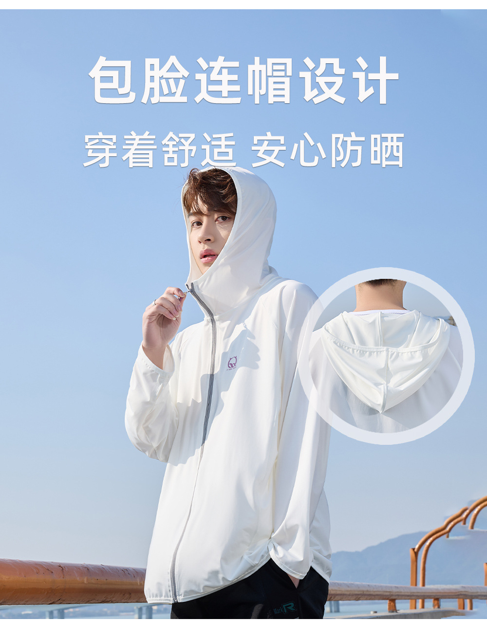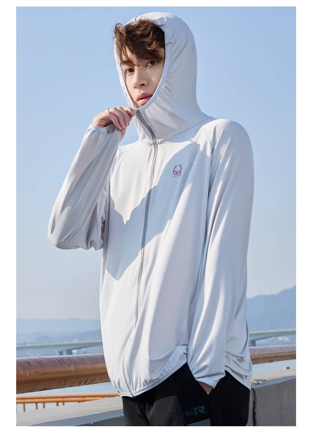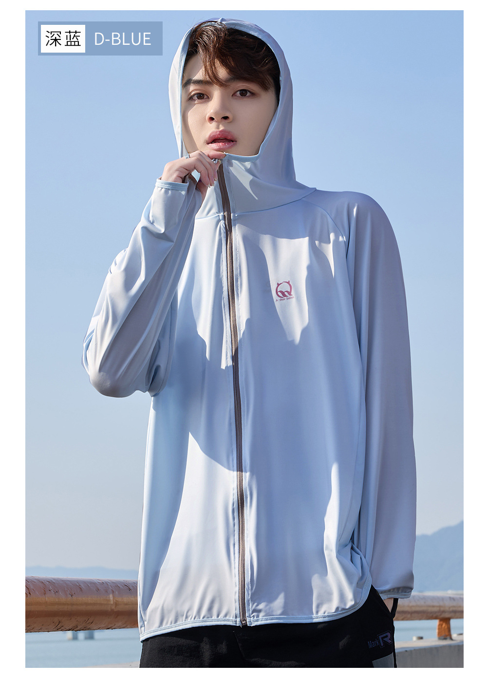 防晒衣男款UPF50+防紫外线冰丝连帽宽松防晒服中长款透气皮肤衣