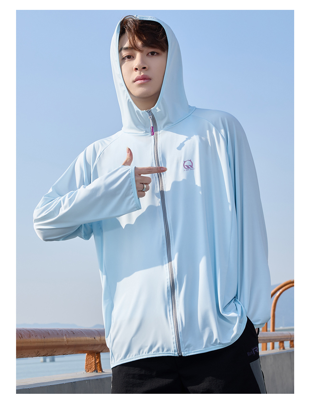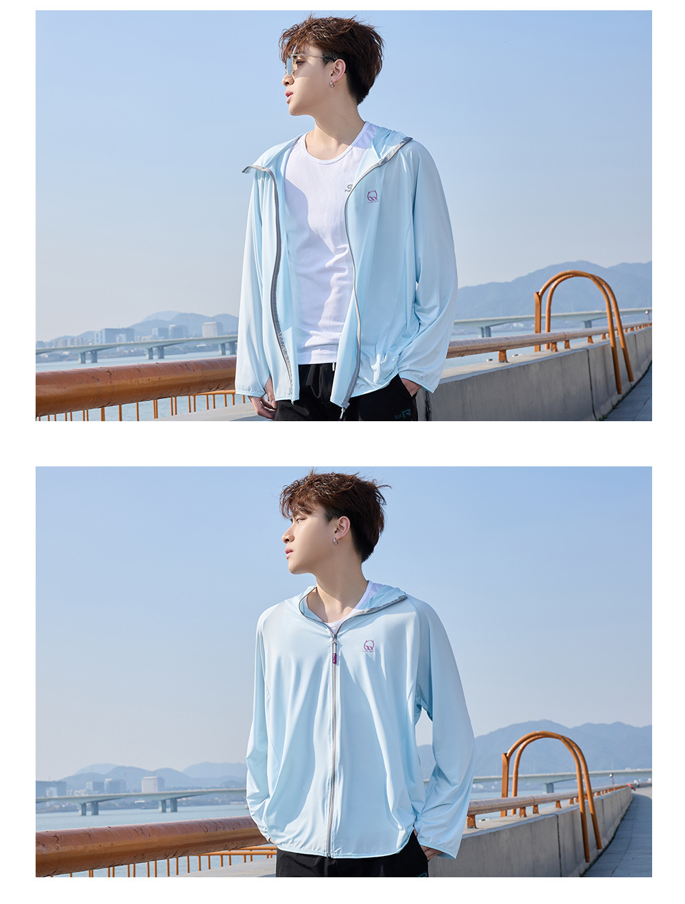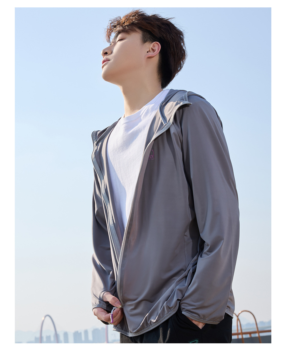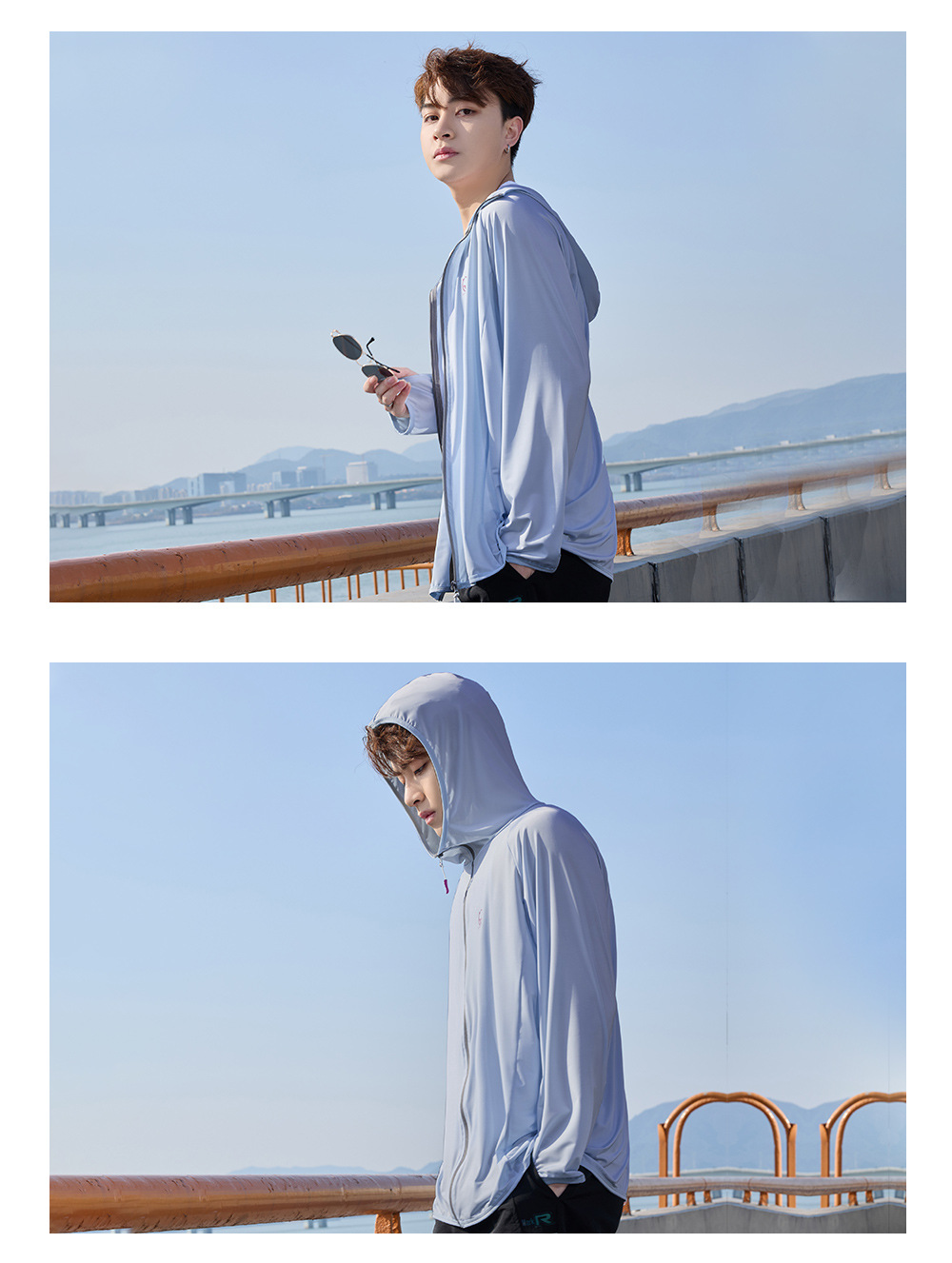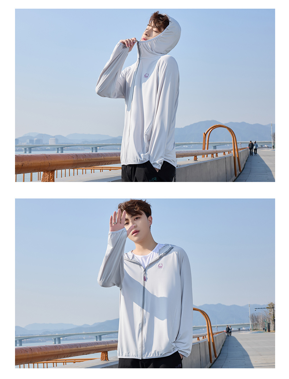 防晒衣男款UPF50+防紫外线冰丝连帽宽松防晒服中长款透气皮肤衣