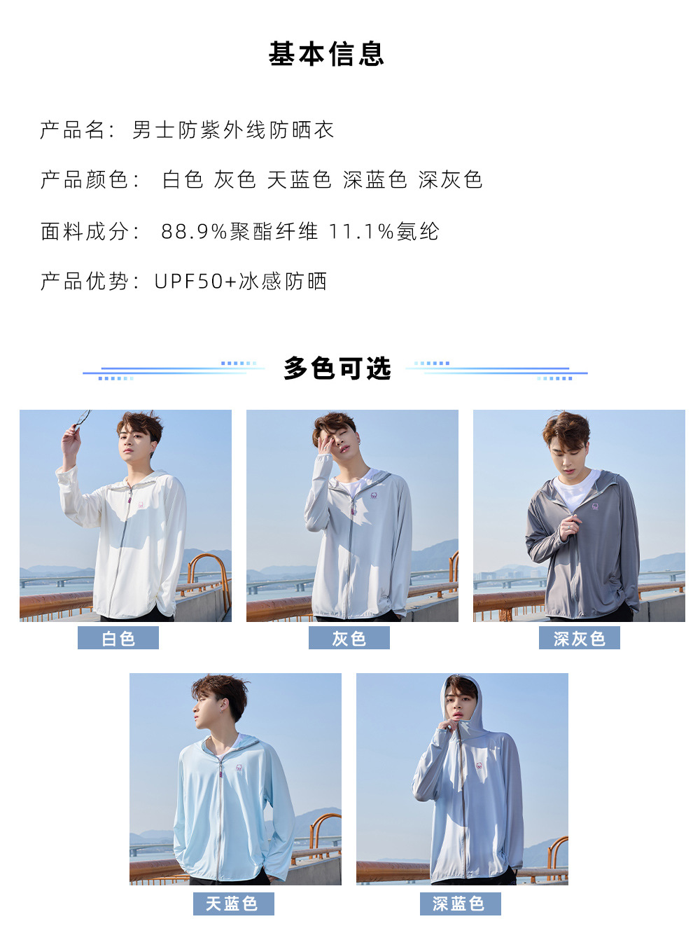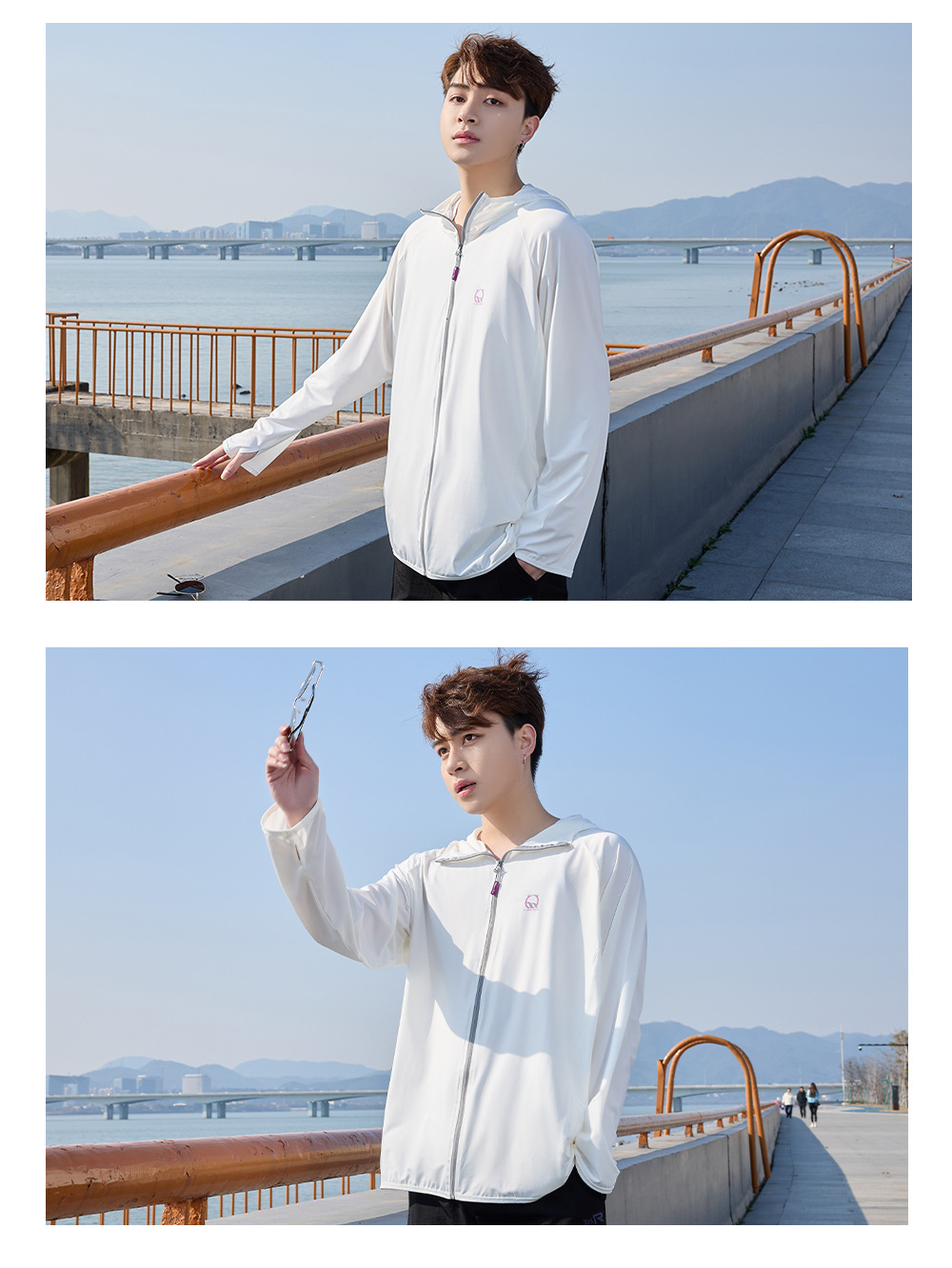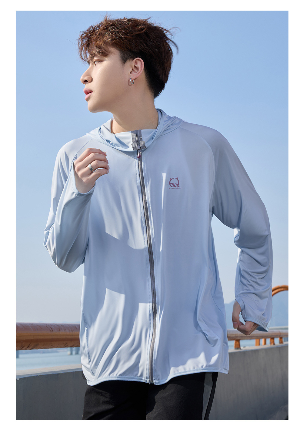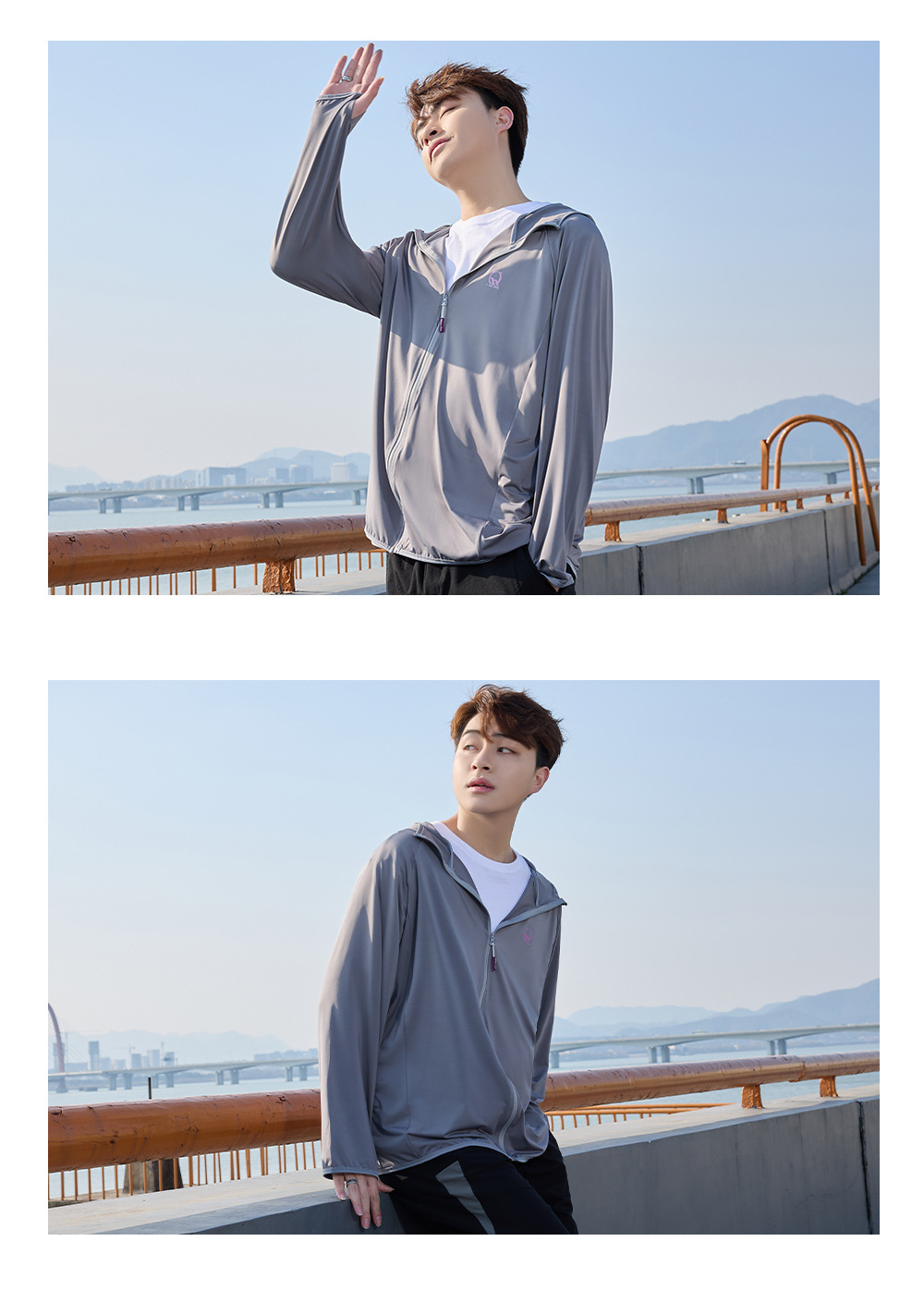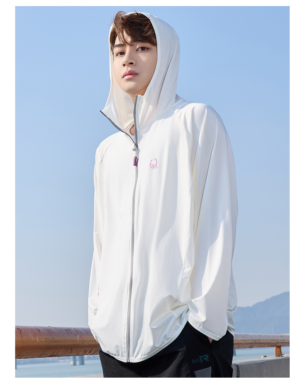 防晒衣男款UPF50+防紫外线冰丝连帽宽松防晒服中长款透气皮肤衣