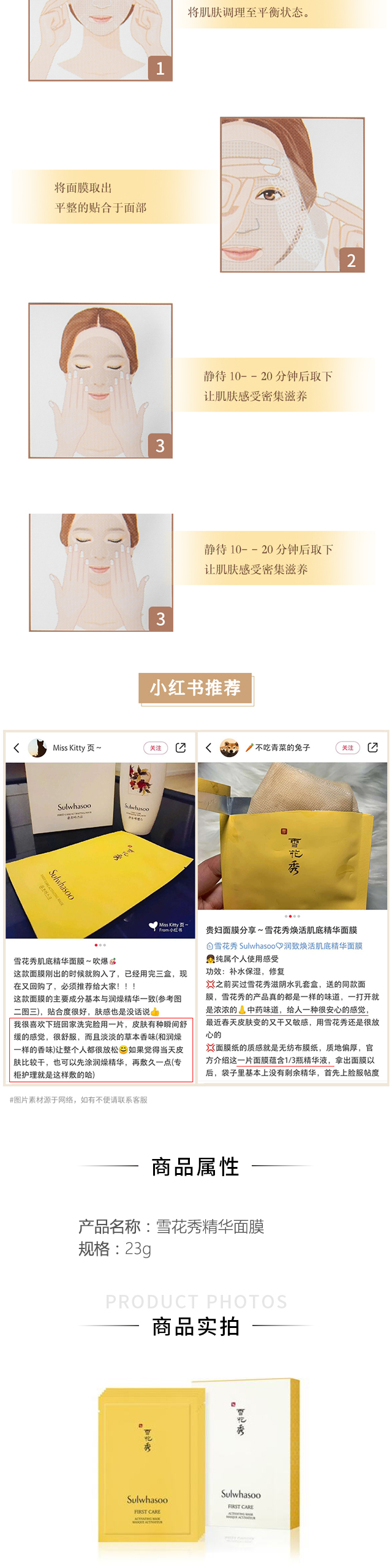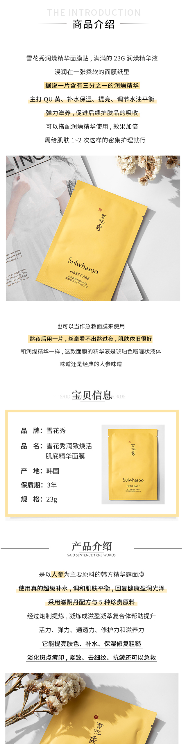 【换季面膜】韩国Sulwhasoo雪花秀润燥精华面膜23g *8片(无盒)