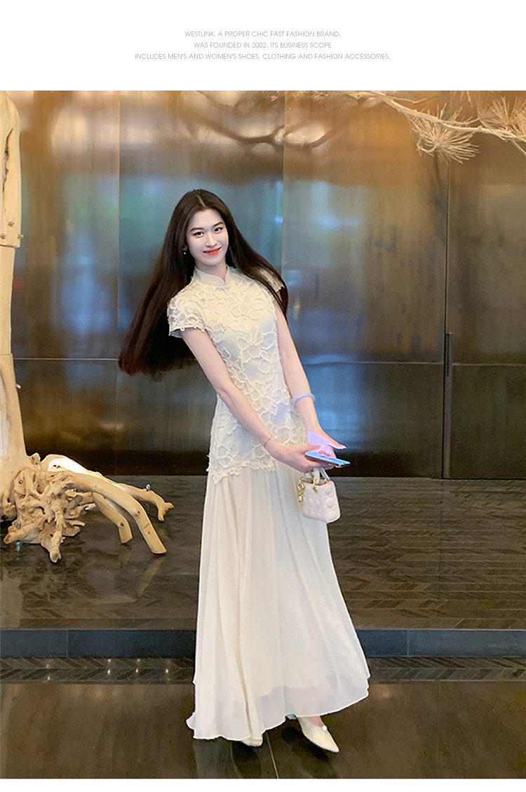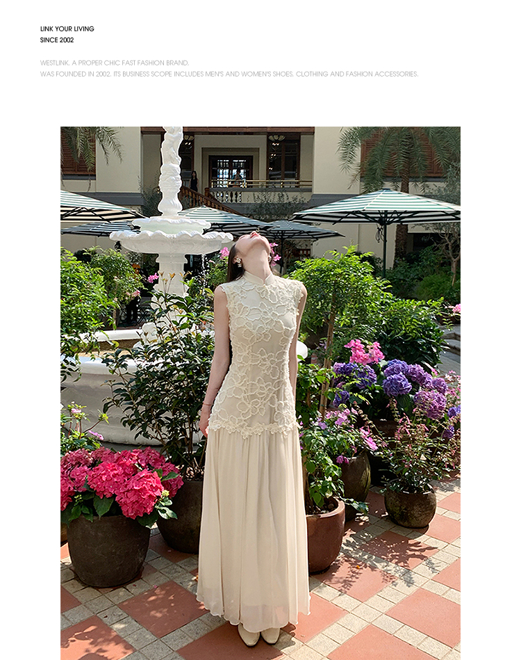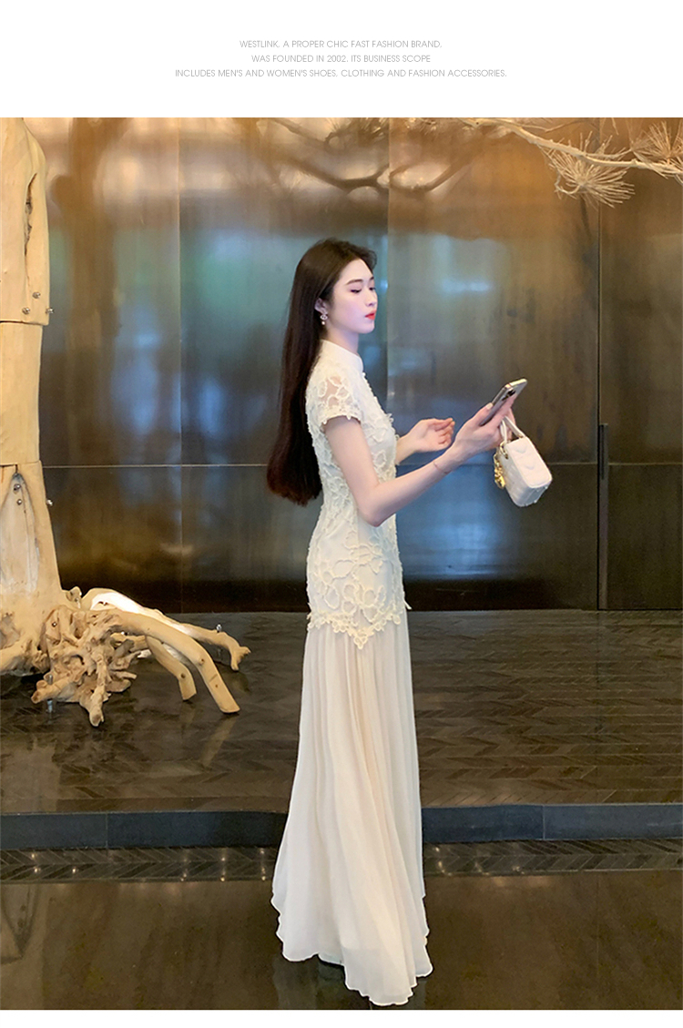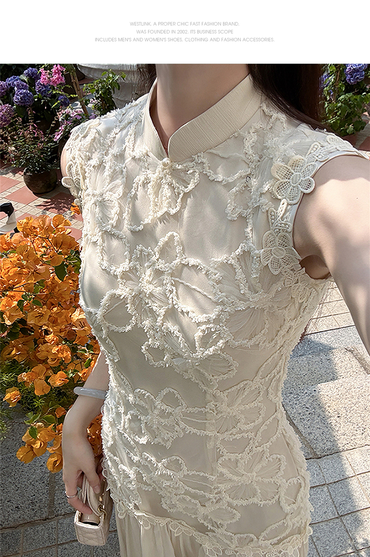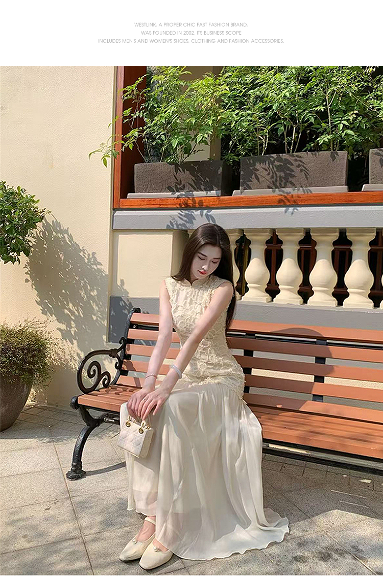 西遇拼接网纱连衣裙女2025年夏季新款收腰刺绣新中式改良旗袍裙SS050832/SS050833