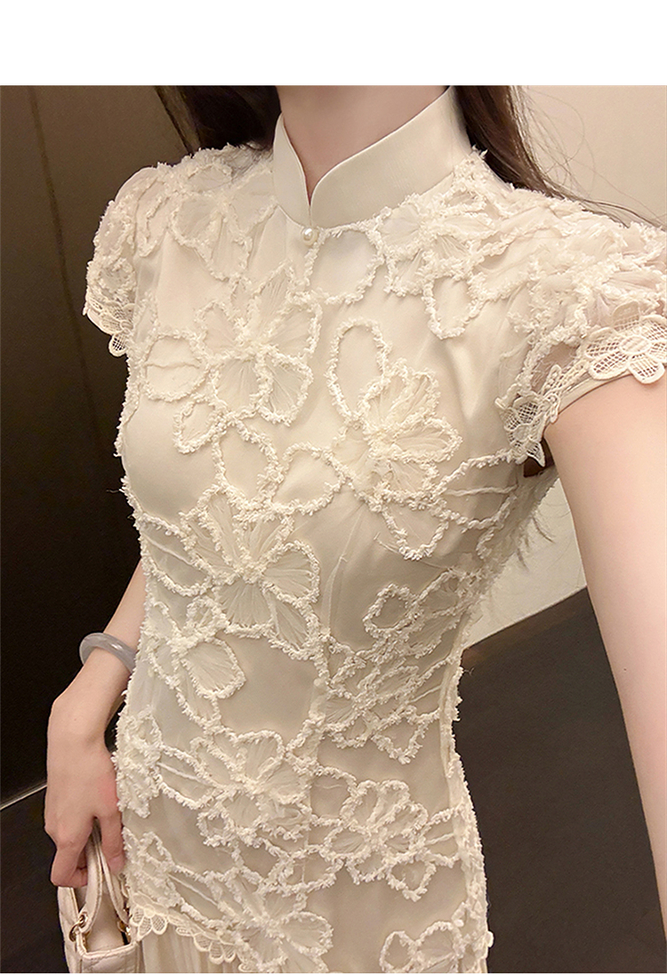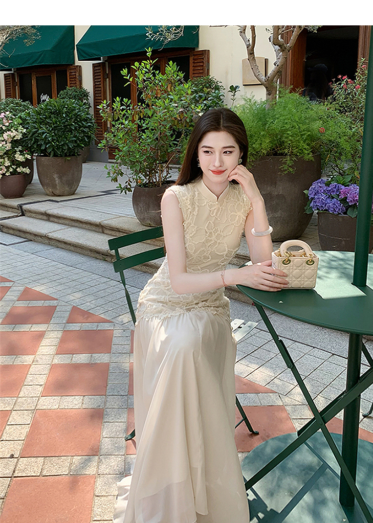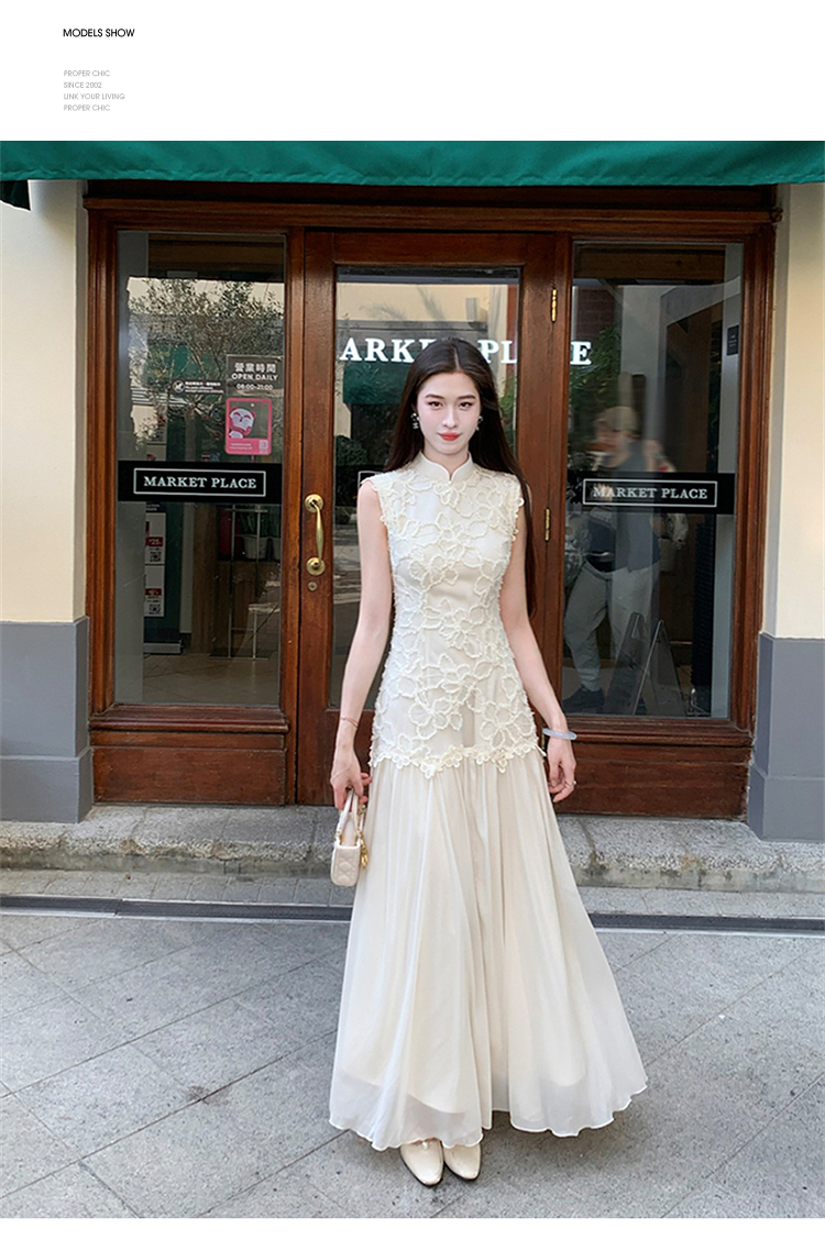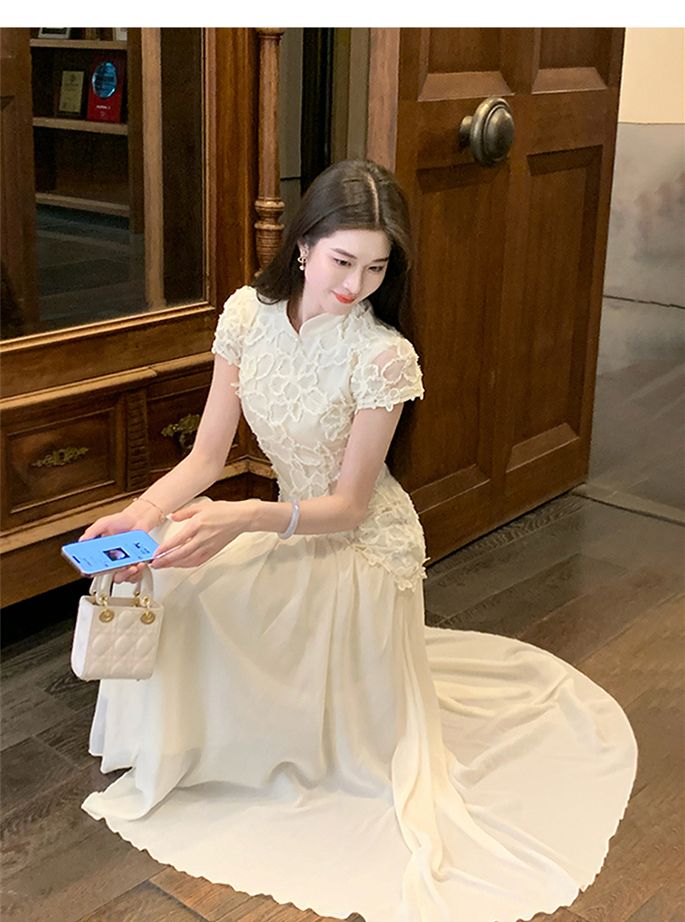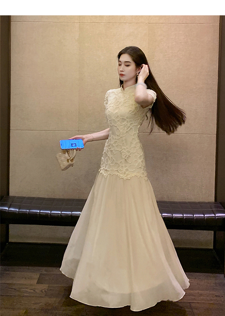 西遇拼接网纱连衣裙女2025年夏季新款收腰刺绣新中式改良旗袍裙SS050832/SS050833