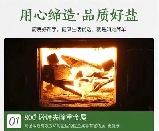 持续烧至八个小时后,粉碎包装,成为我们的一烤竹盐