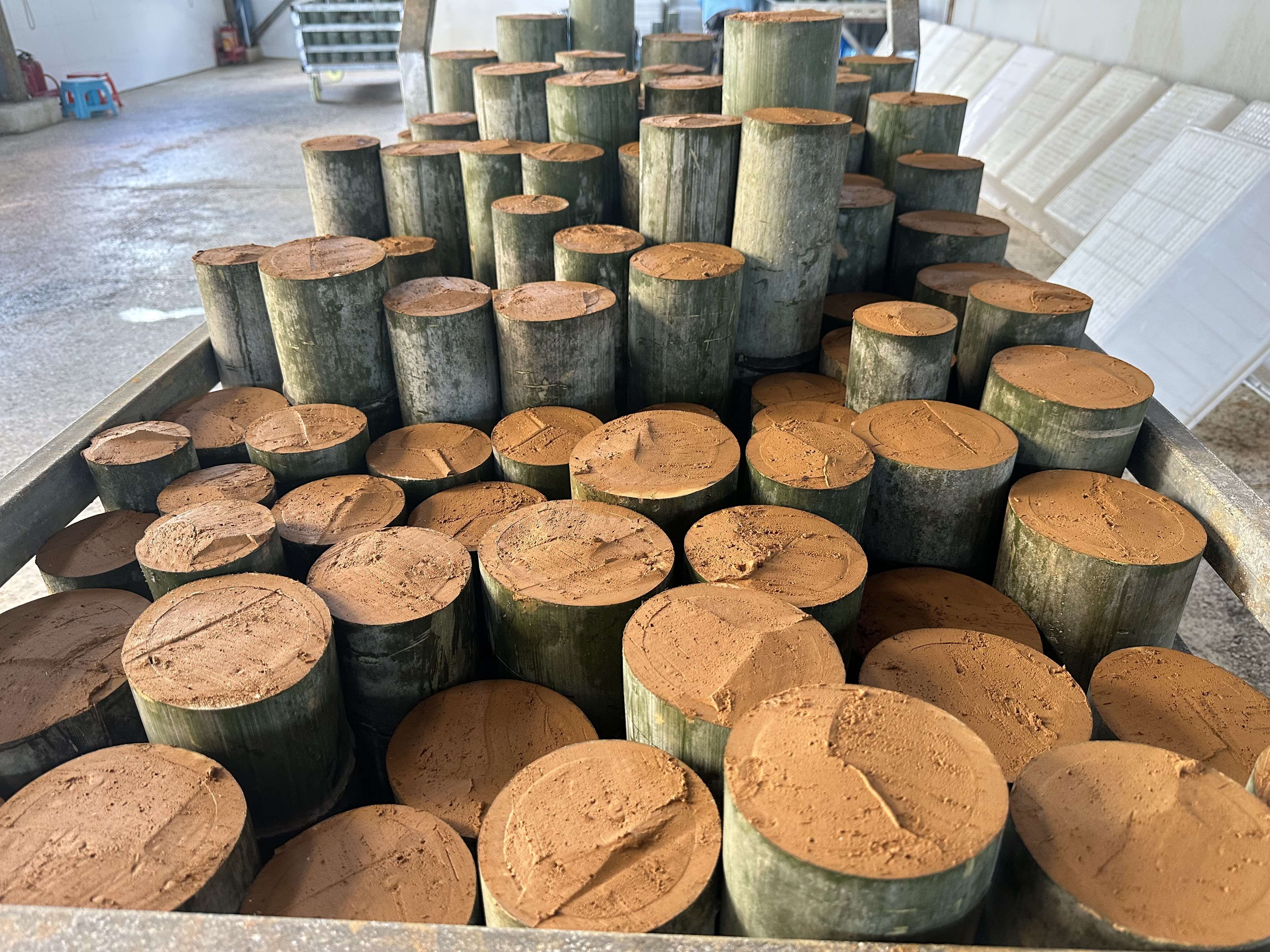 将青海格尔木察尔汗湖盐灌入竹筒,用矿物质丰富没有污染的黄土封口
