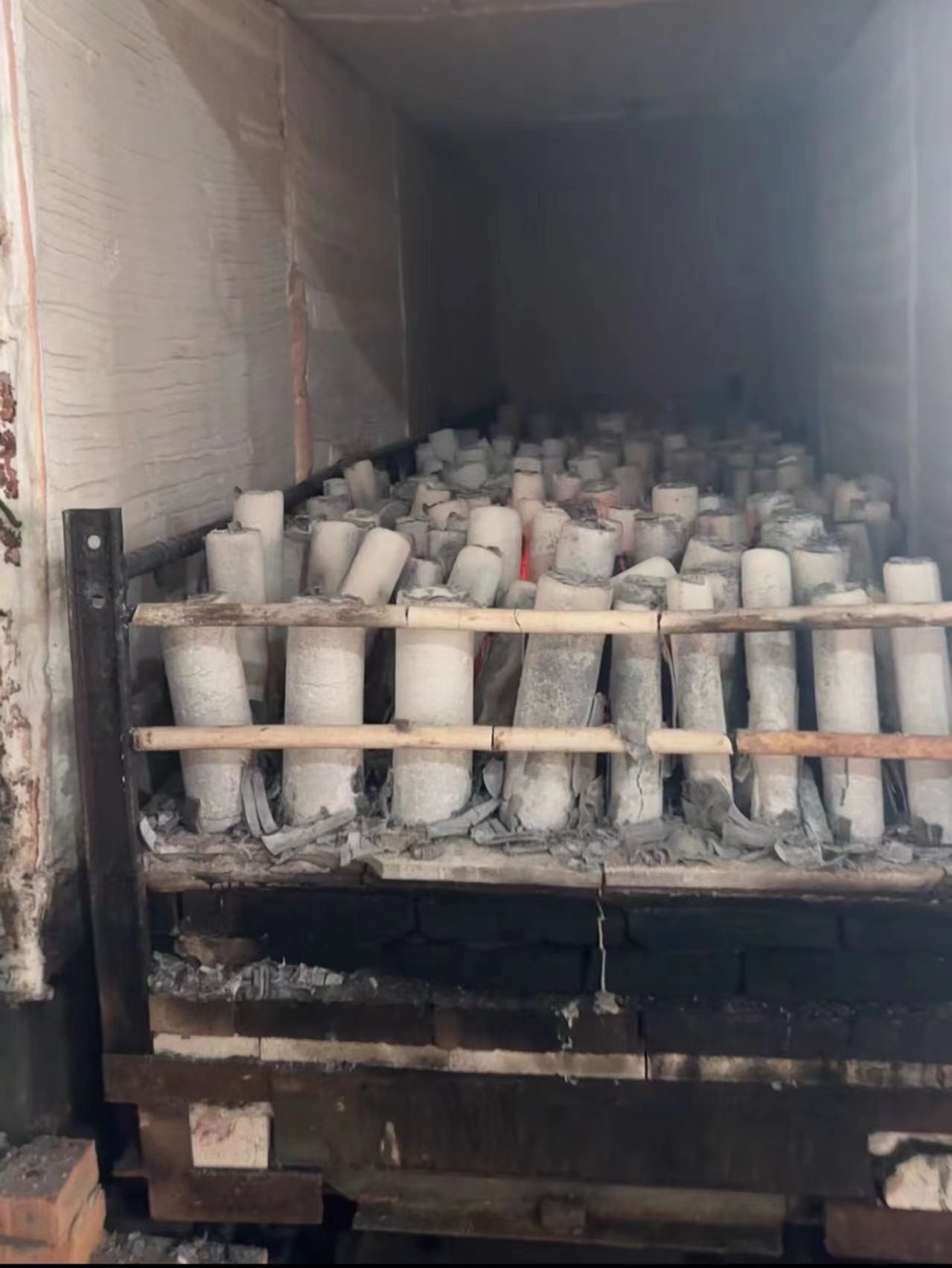 将封好口的竹筒送进炼制炉中煅烧 松木煅烧高温800度