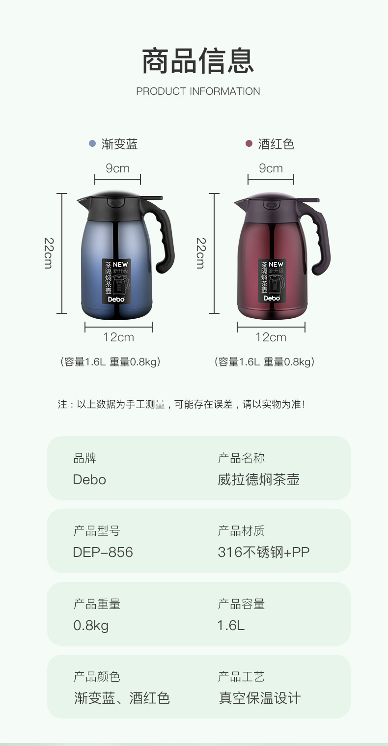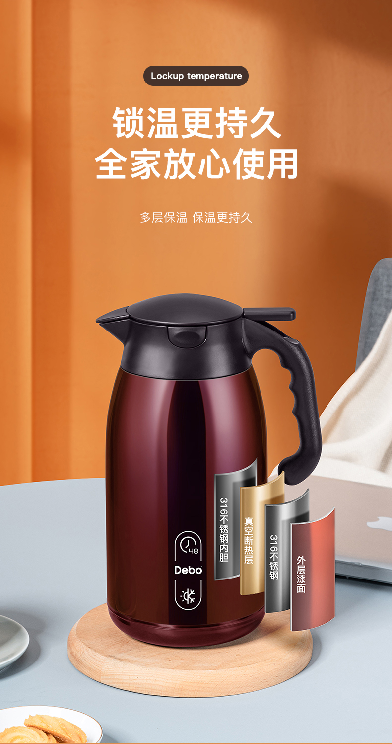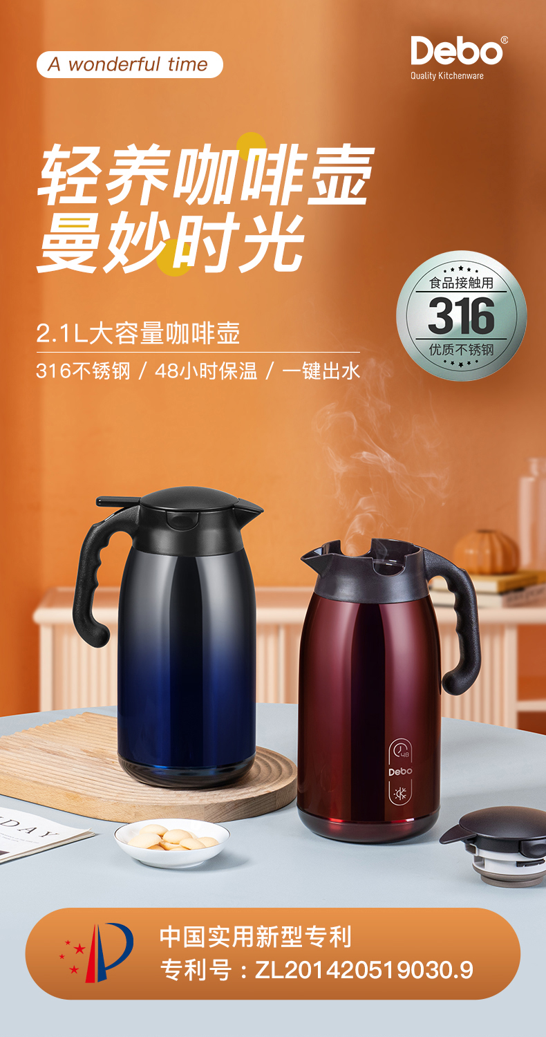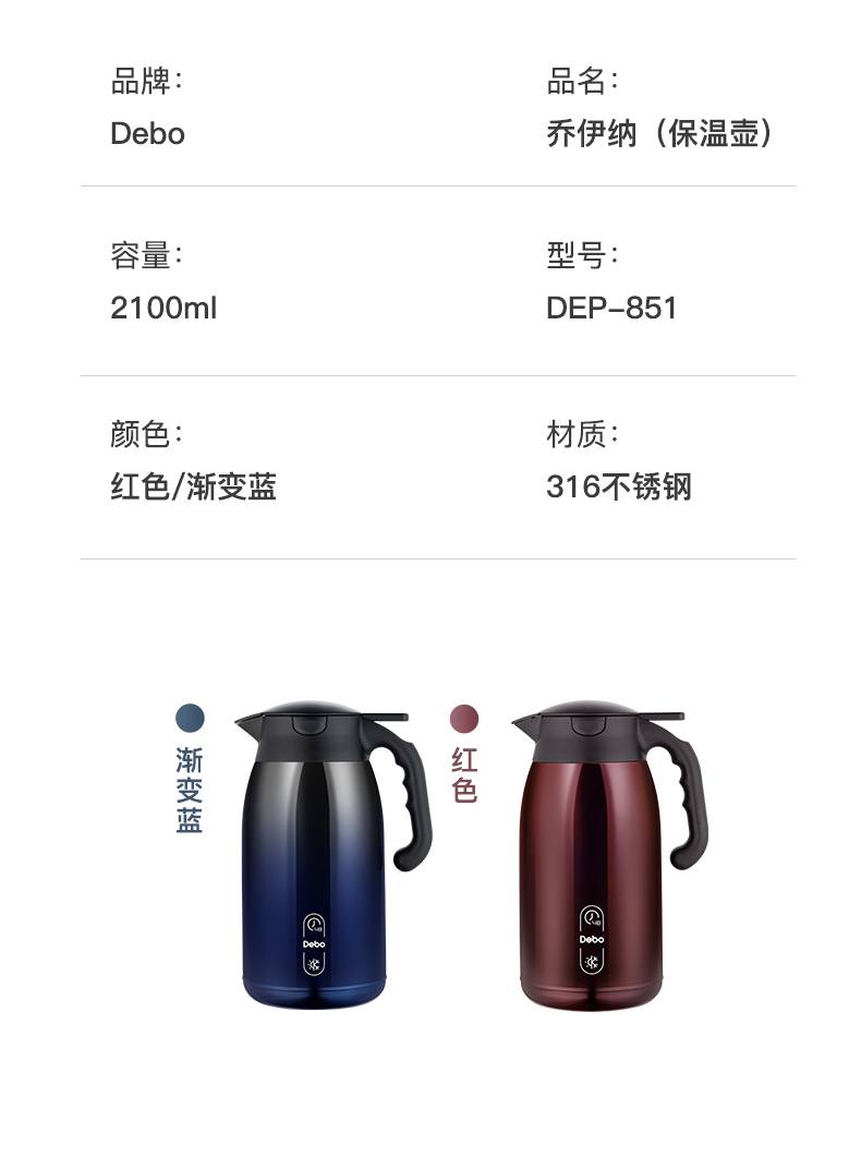 Debo德铂-乔伊纳 威拉德真空保温壶2.1L 新型专利款;全自动排压 使用更安全