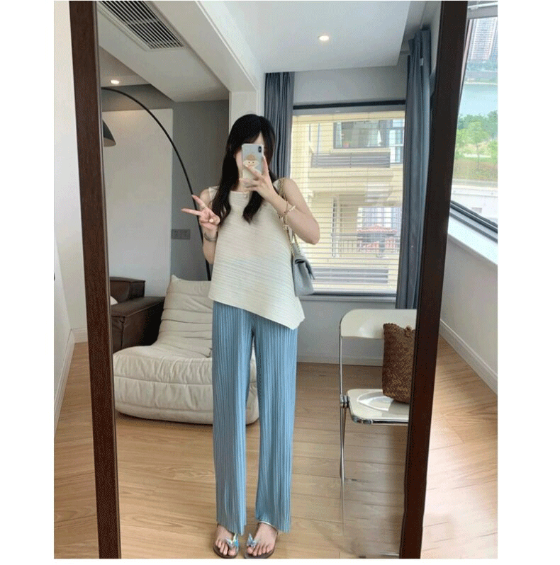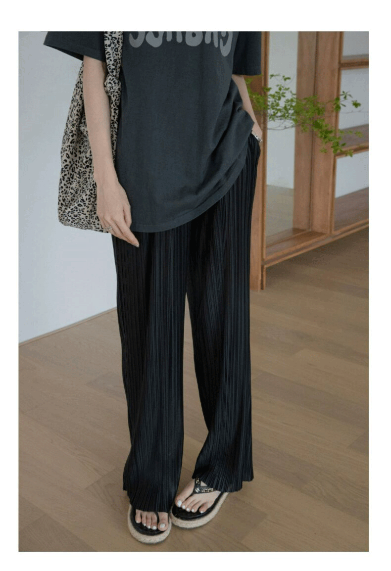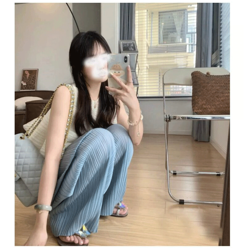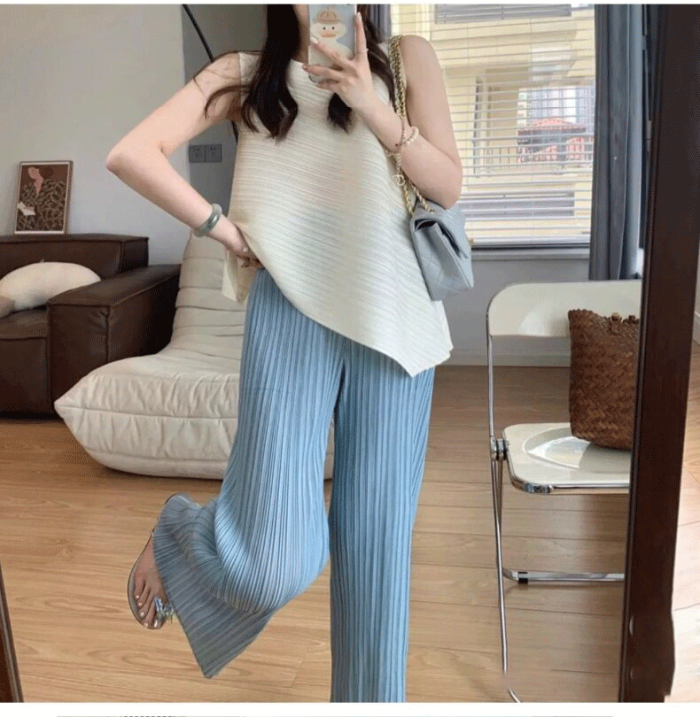 夏日多巴胺|囡语·冰丝阔腿裤 休闲垂感 弹力腰带 百褶长裤