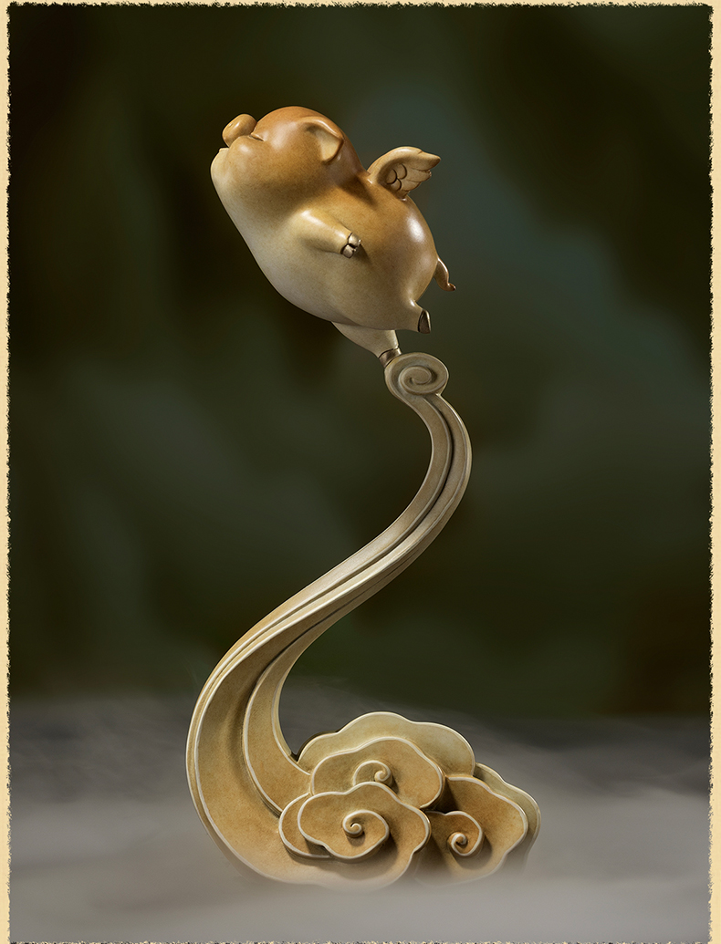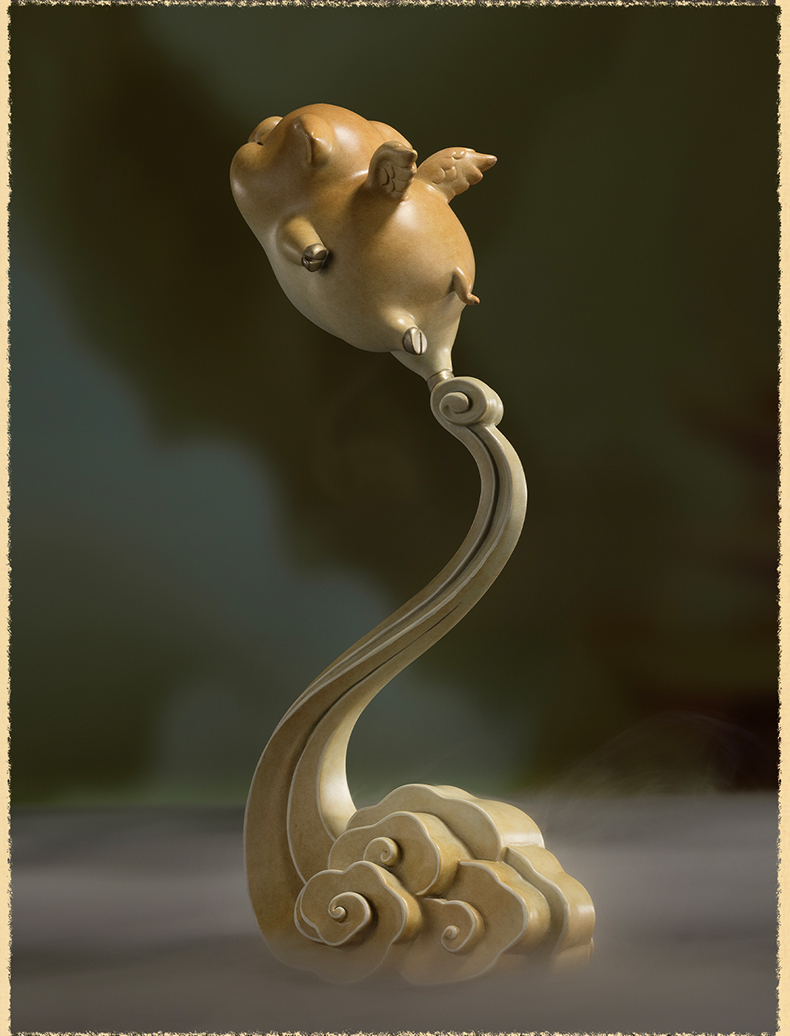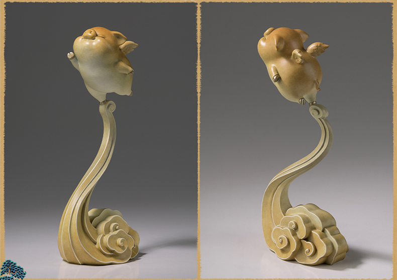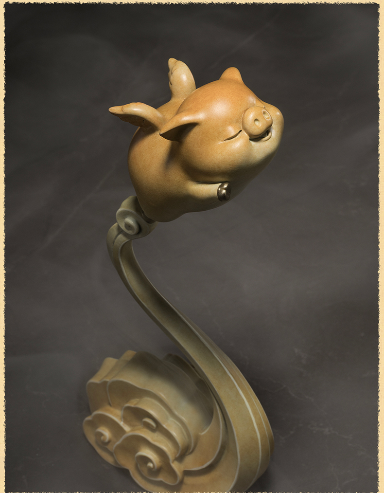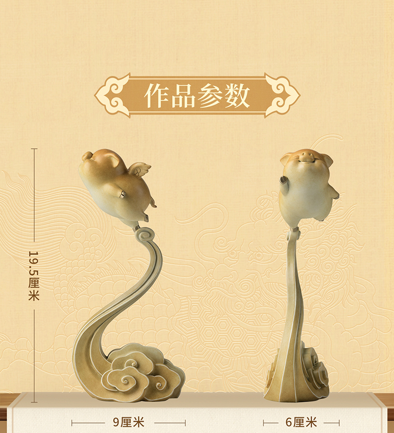 铜师傅《飞翔小猪》客厅桌面铜猪摆件 家居装饰工艺品 乔迁礼物
