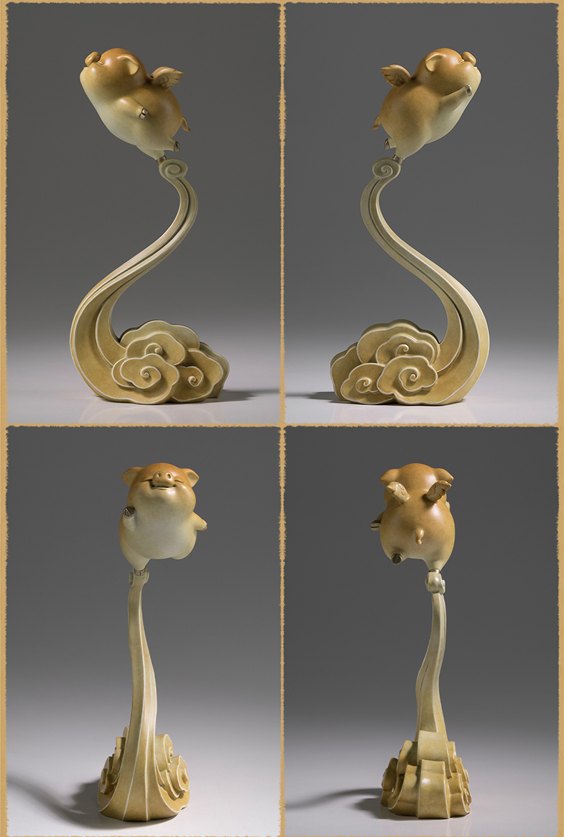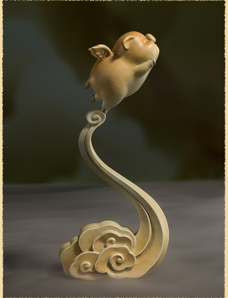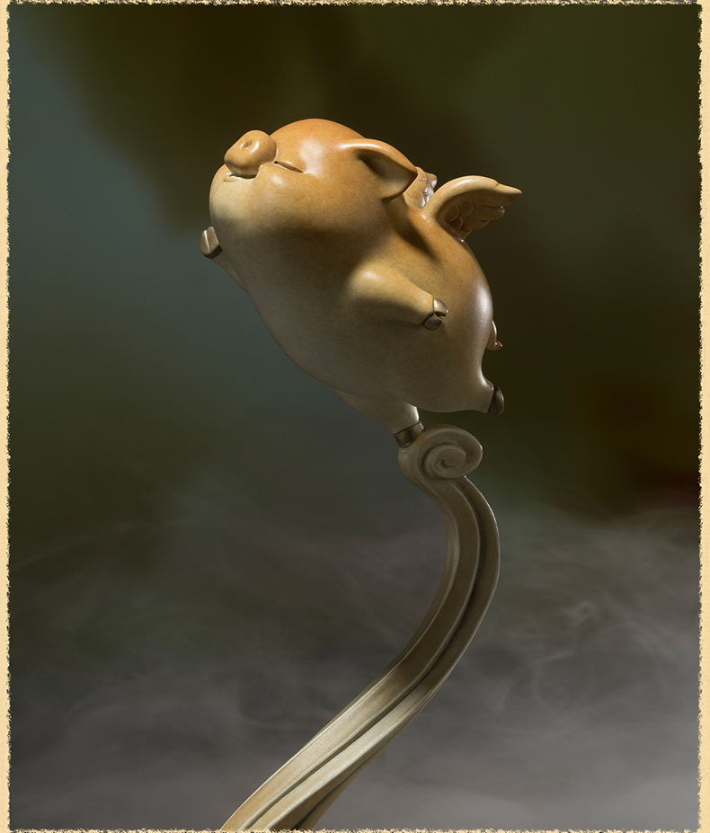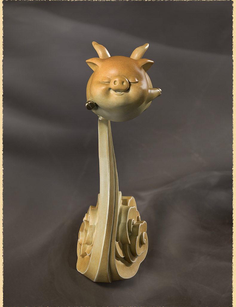铜师傅《飞翔小猪》客厅桌面铜猪摆件 家居装饰工艺品 乔迁礼物