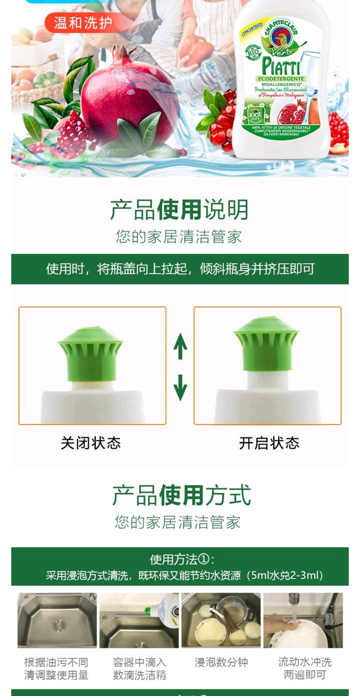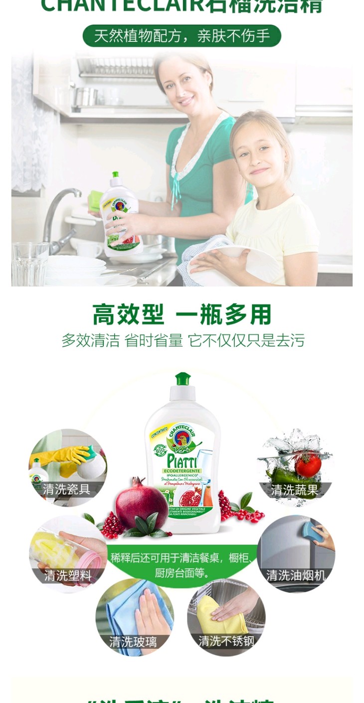 KJ 意大利进口大公鸡头浓缩石榴洗洁精家庭装家用厨房餐具果蔬无残留(新老包装随机发)