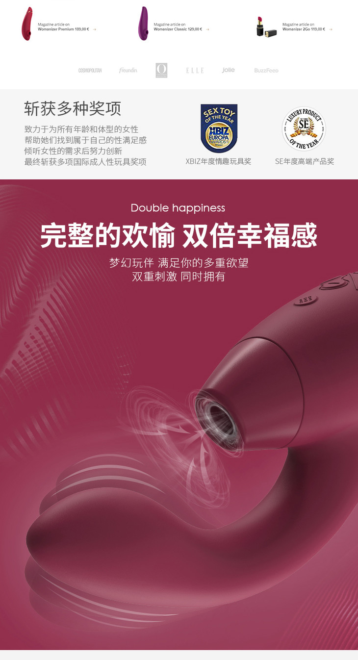 德国Womanizer豹美人 梦潮二代双头G点按摩棒 舔吸器按摩棒成人情趣性用品