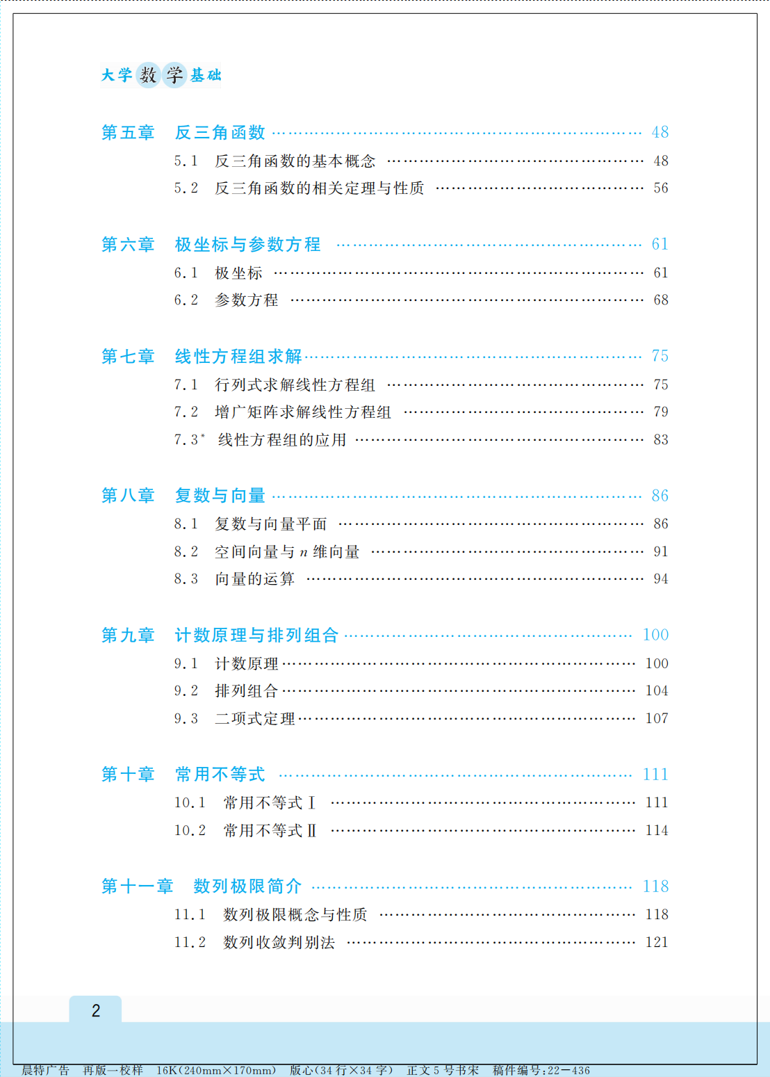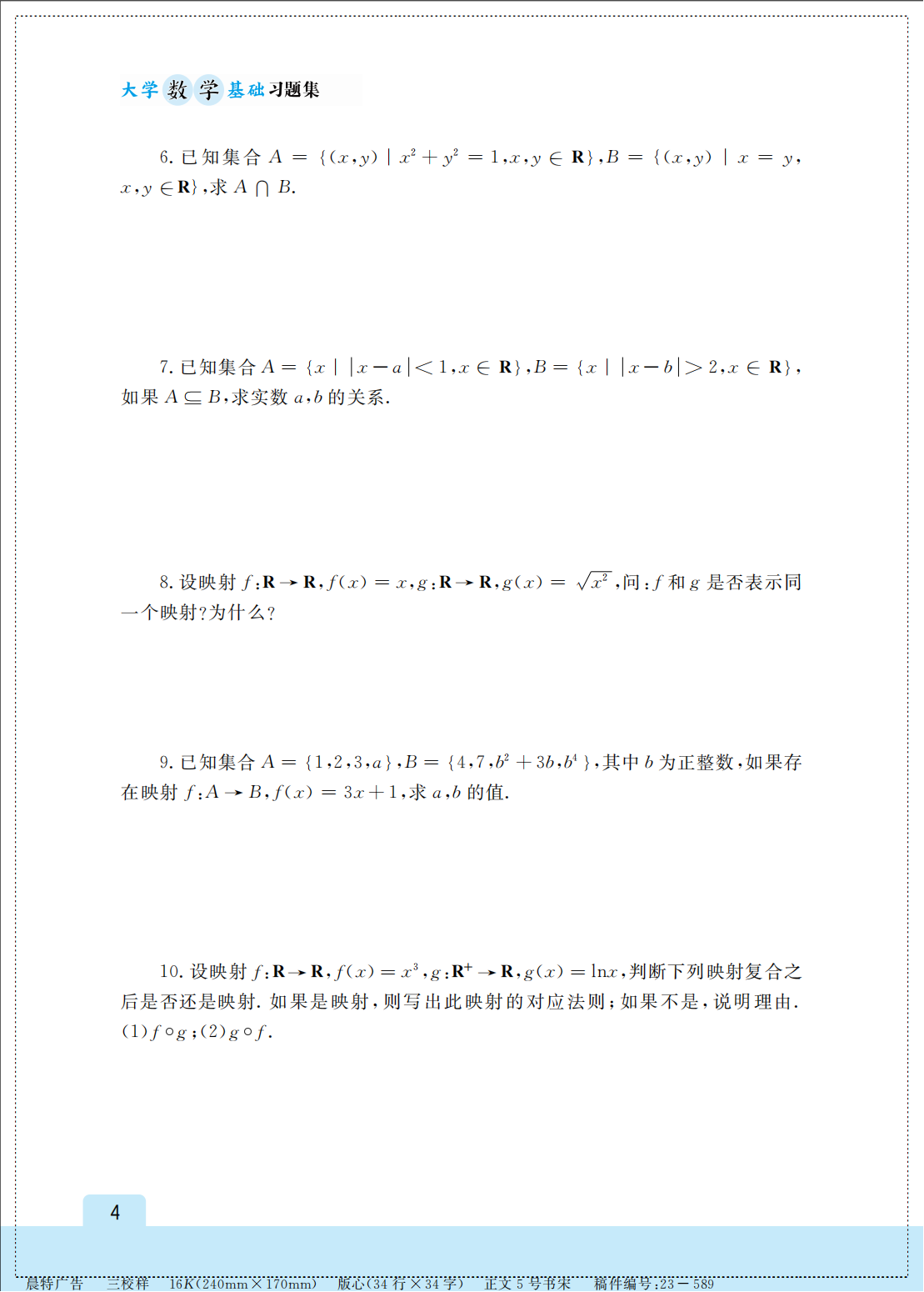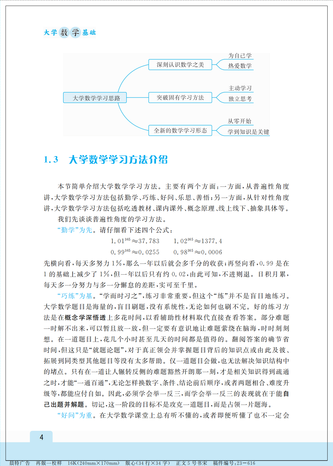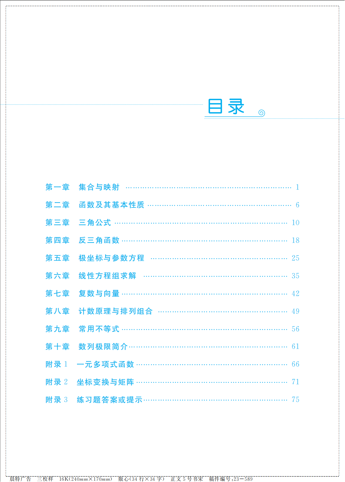本书是《大学数学基础》的配套习题集,重点在于突出中学与大学数学之间的衔接知识,以及这些知识在大学数学中的应用。内容深入浅出,例题浅显易懂,是一本很好的作为大一新生入学前的选修课教材或习题集。由于中学数学在不断地实施新课标改革,而大学数学仍然采用原来的教学体系,使得中学数学与大学数学之间的鸿沟无论在体系框架还是知识内容上都变得越来越大。本书通过例题精选让学生明白这些知识点如何应用,最后通过做练习题加以巩固。本教材对每个知识点都标注了以后将在大学数学的什么课程里面会有涉及,在最后的练习题里也加了个别简单的大学数学的题目,供自学能力强的同学练习。