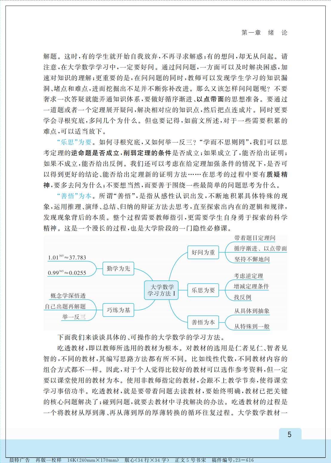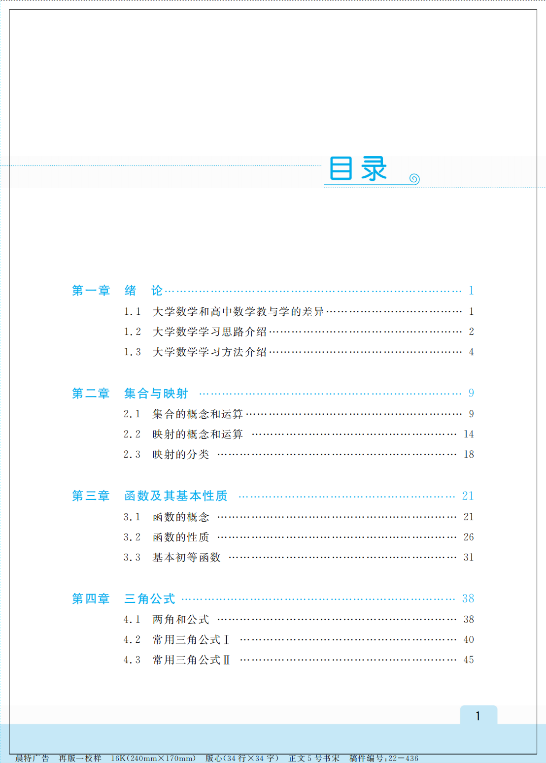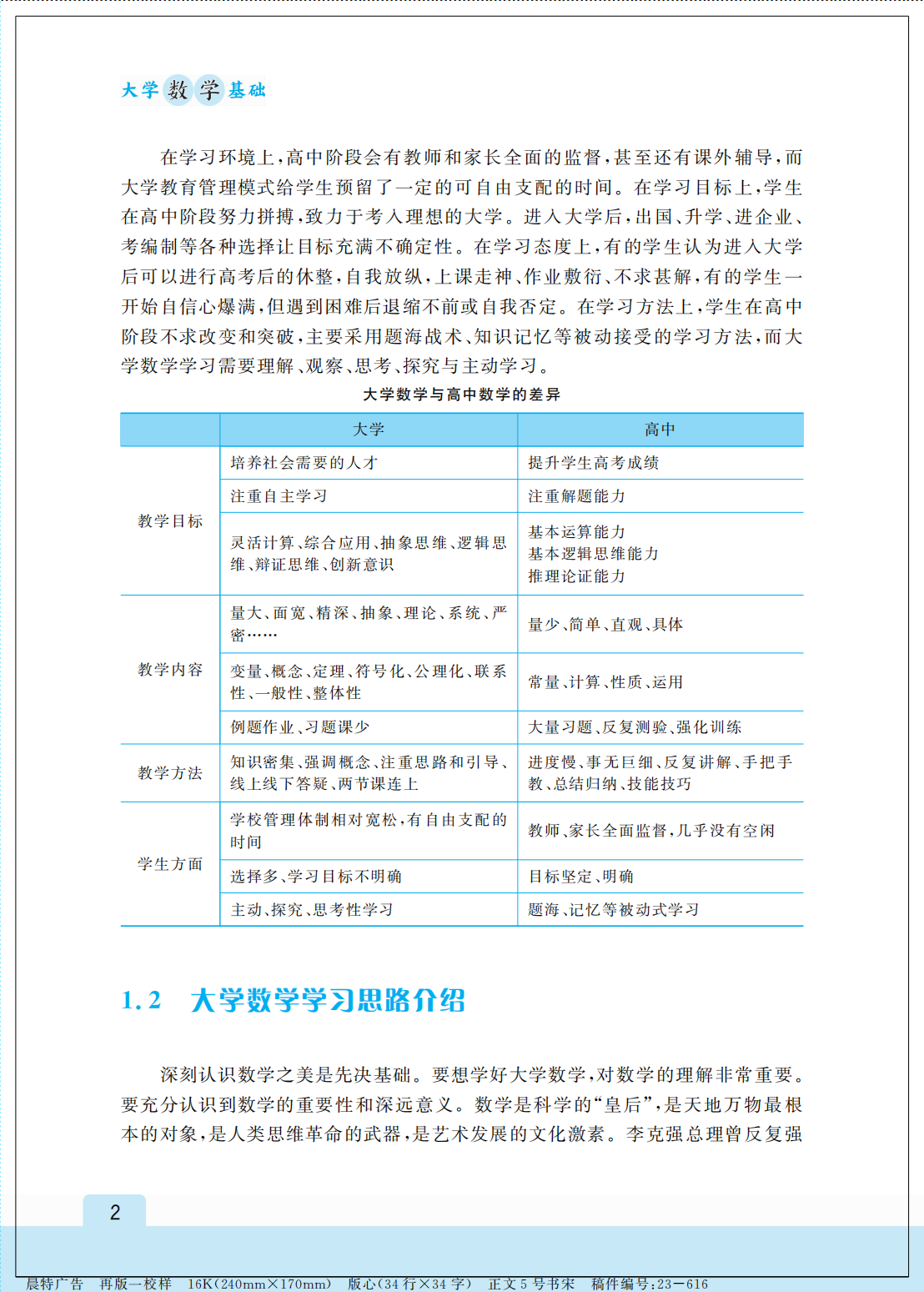本书是高中数学与大学数学学习的衔接教材。大学数学与高中数学的迥然差异,不仅给大一新生的大学数学学习带来了巨大的挑战,同时也是大学数学教师教学过程中的障碍。基于这一客观现实,本书通过对大学数学与高中数学衔接内容的梳理、回顾、深化和拓展,使两个阶段的知识得以贯通,帮助大一新生调整思维方式,推动学生的抽象思维、逻辑思维和创新思维不断提升,帮助其逐步从被动学习走向自主学习。