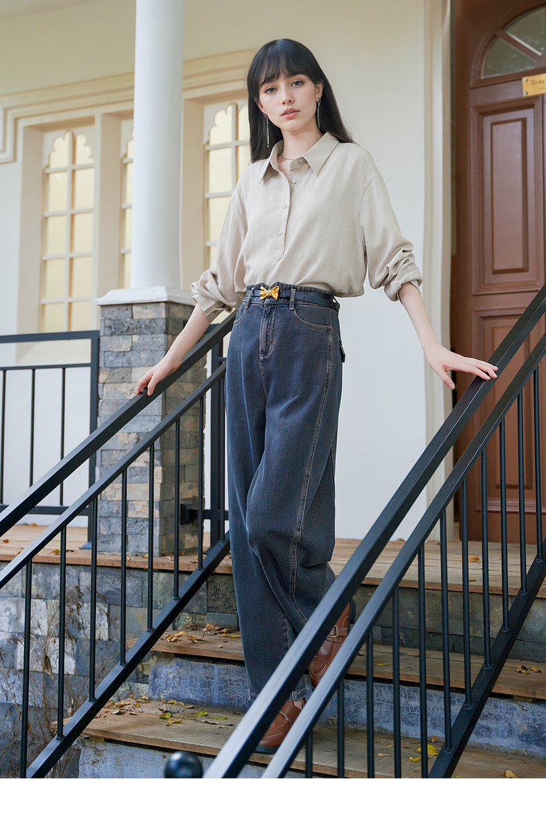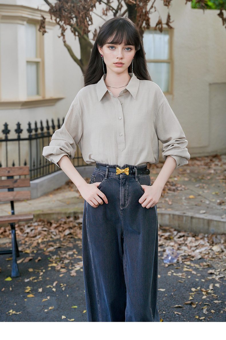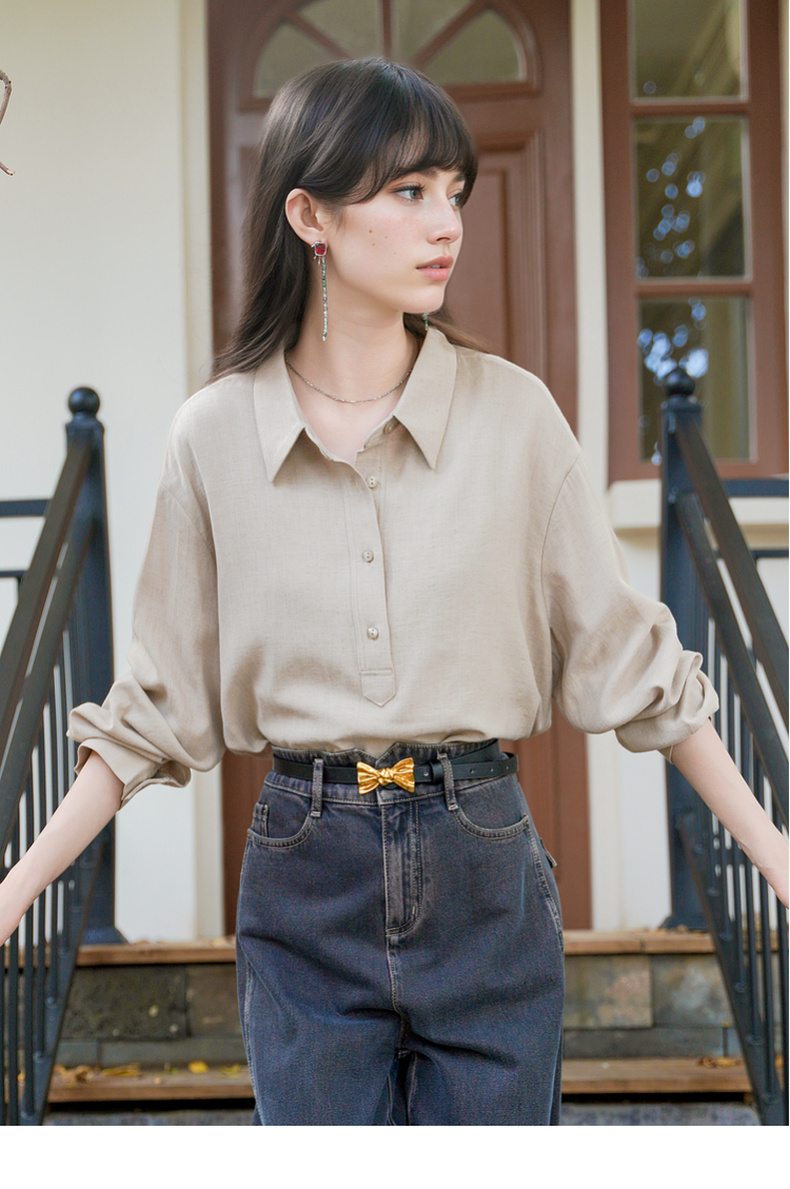 谜底半开门襟衬衫长袖女2025秋新款通勤风纯色合体衬衣257MC7873
