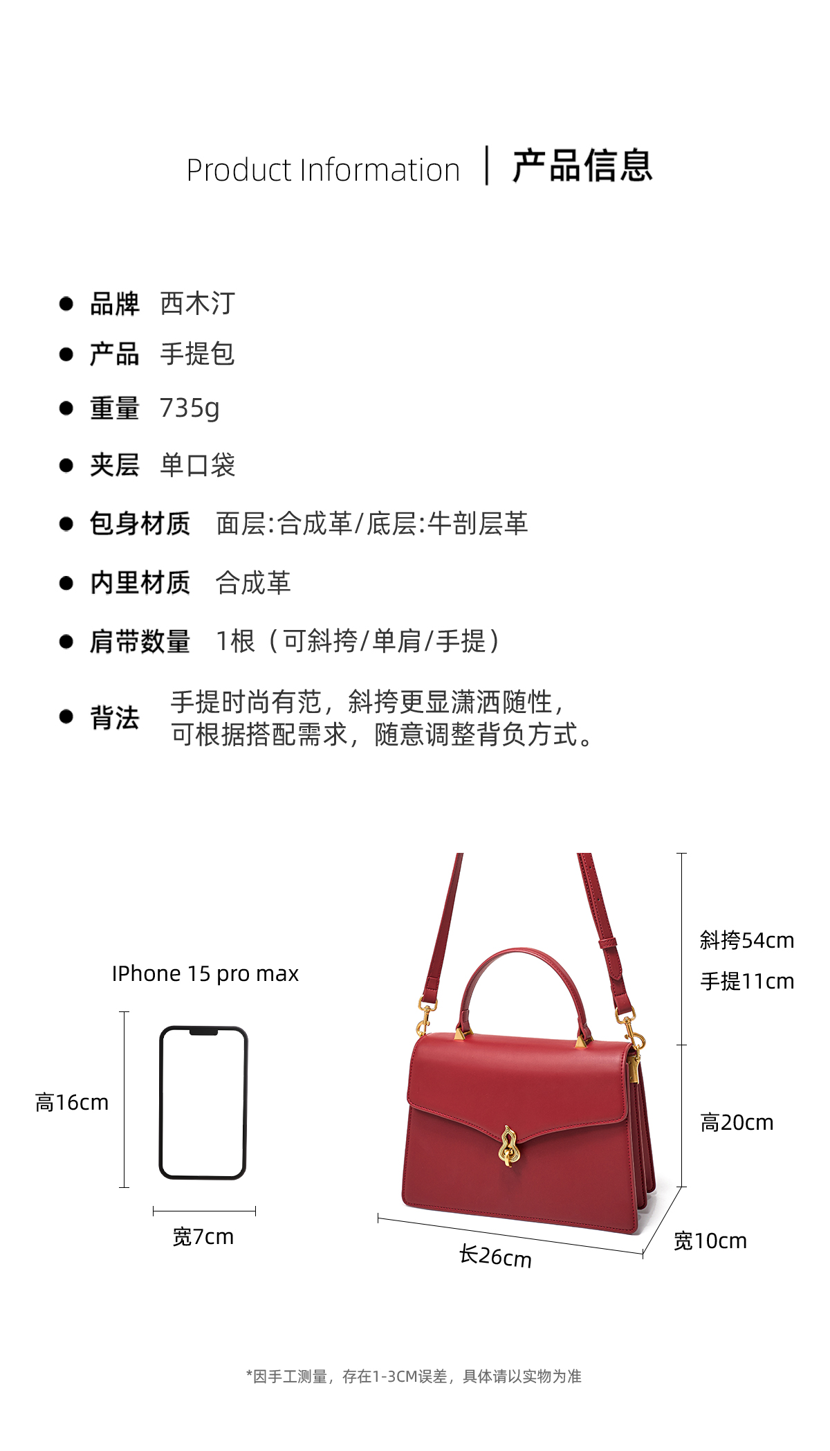 【种草好物馆专属】西木汀 乱世佳人 牛皮手提包女小众宽肩带新娘婚包单肩斜挎包