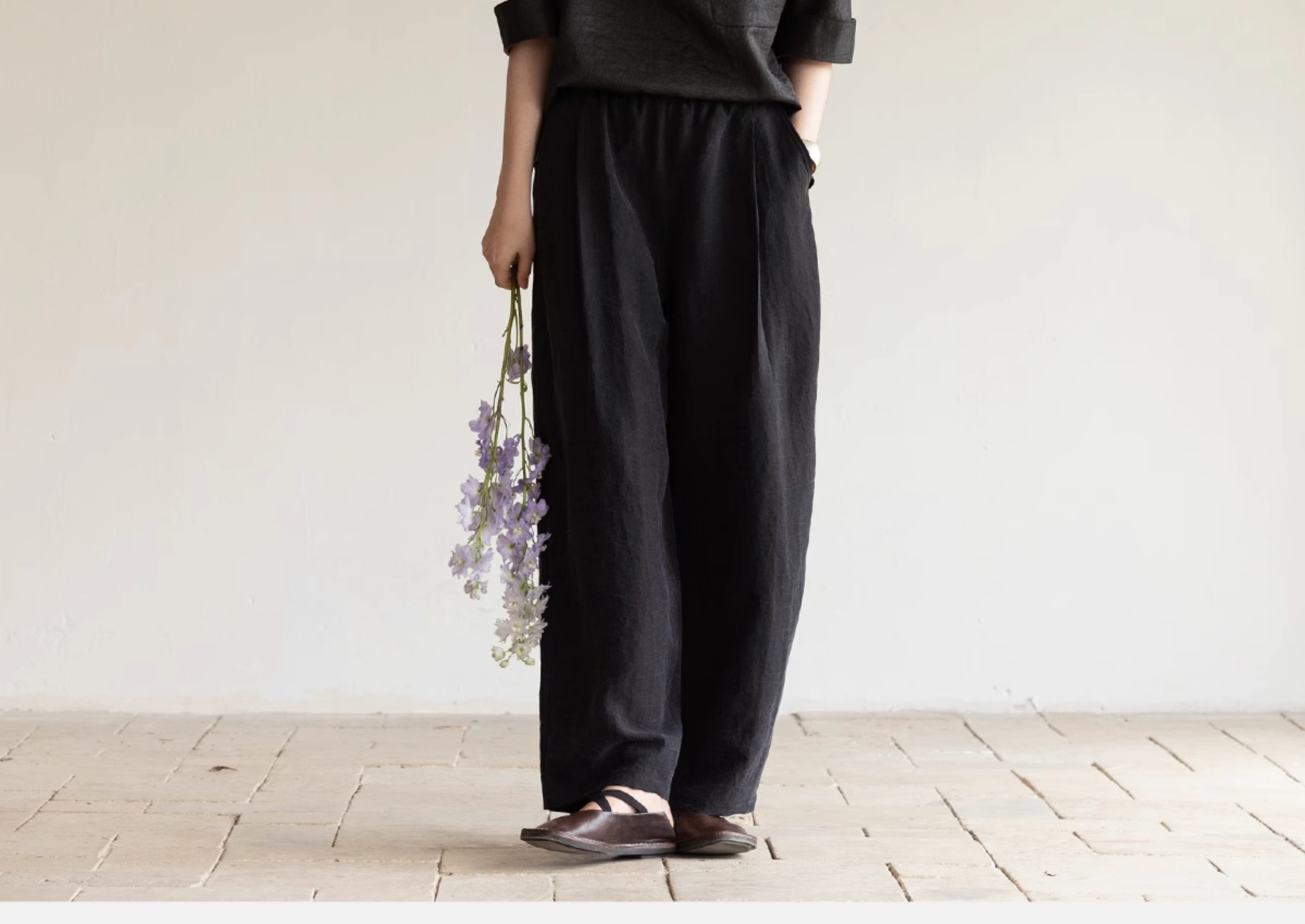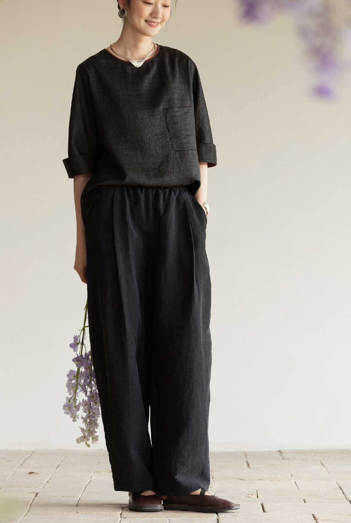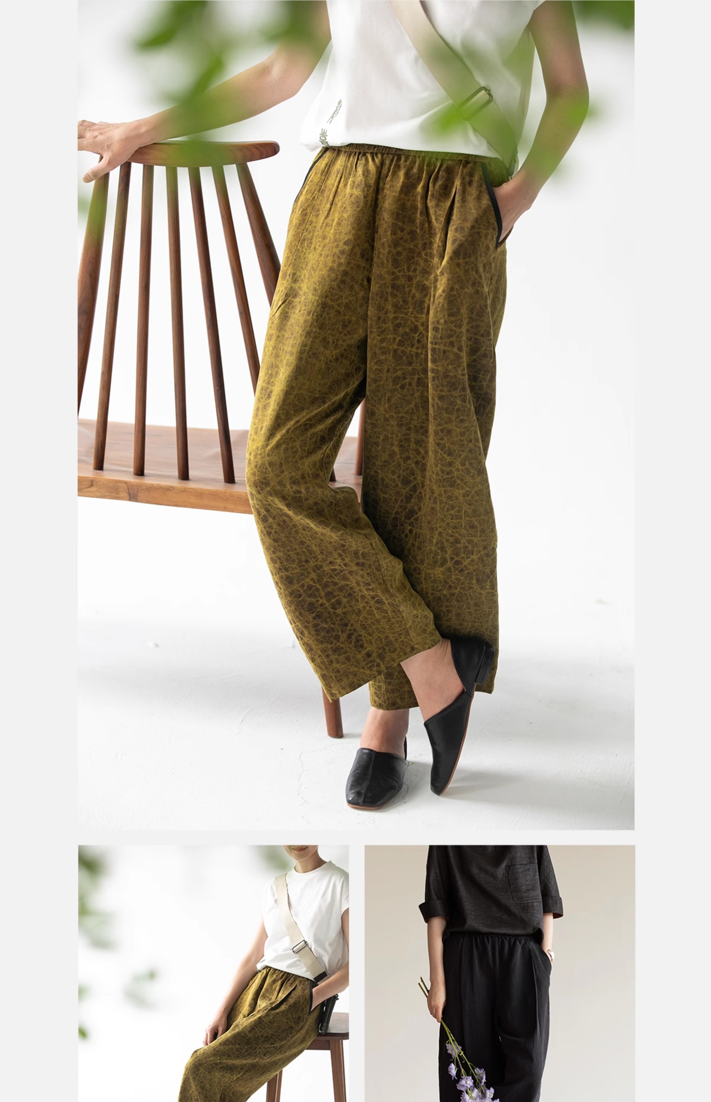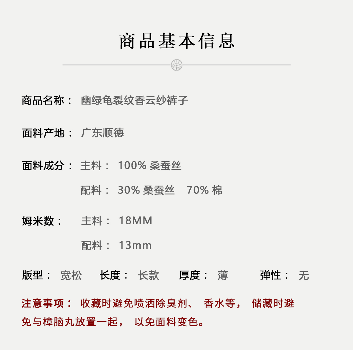 【经典回归】牧衣游原创 幽绿龟裂纹香云纱裤子夏宽松百搭 阳光海