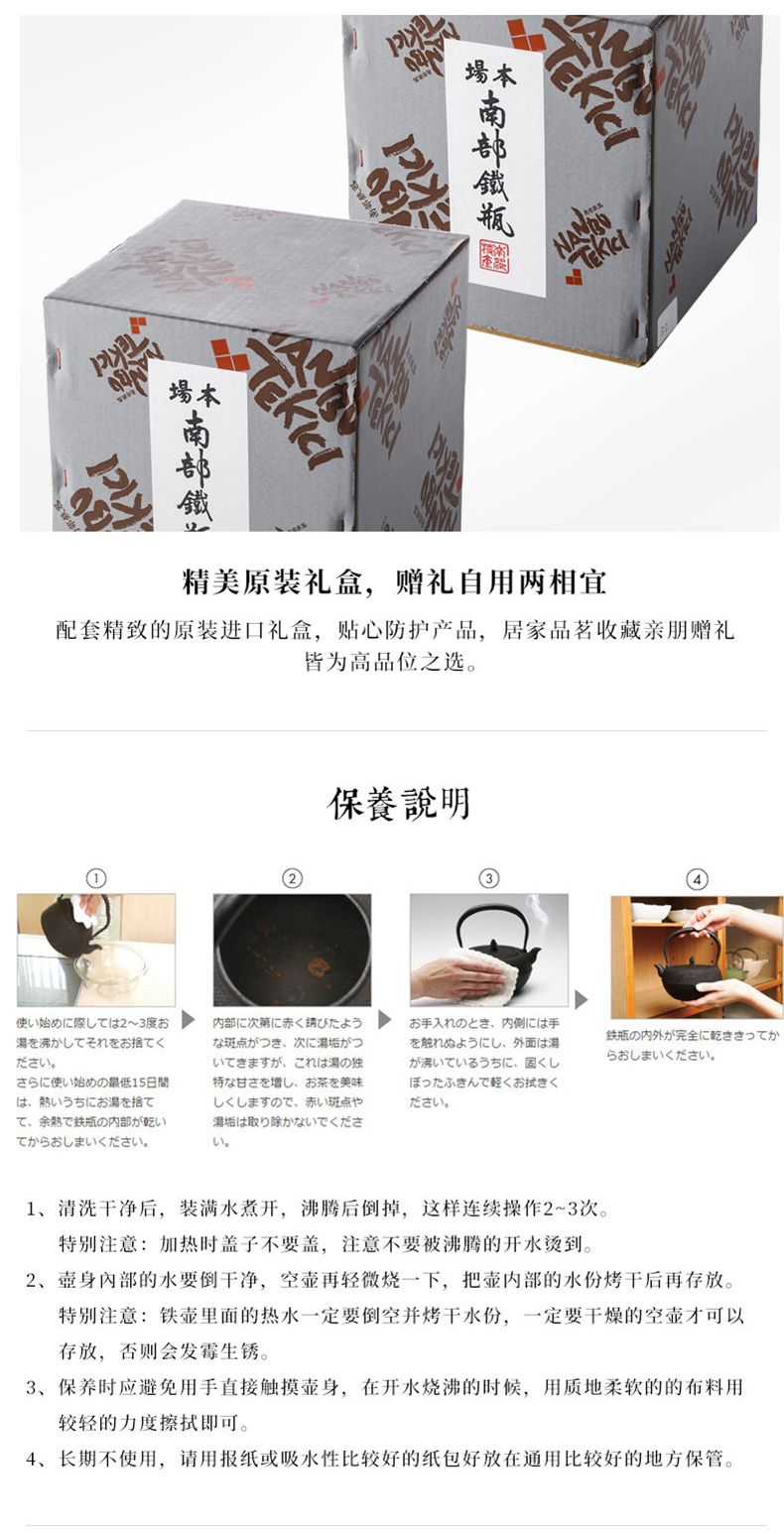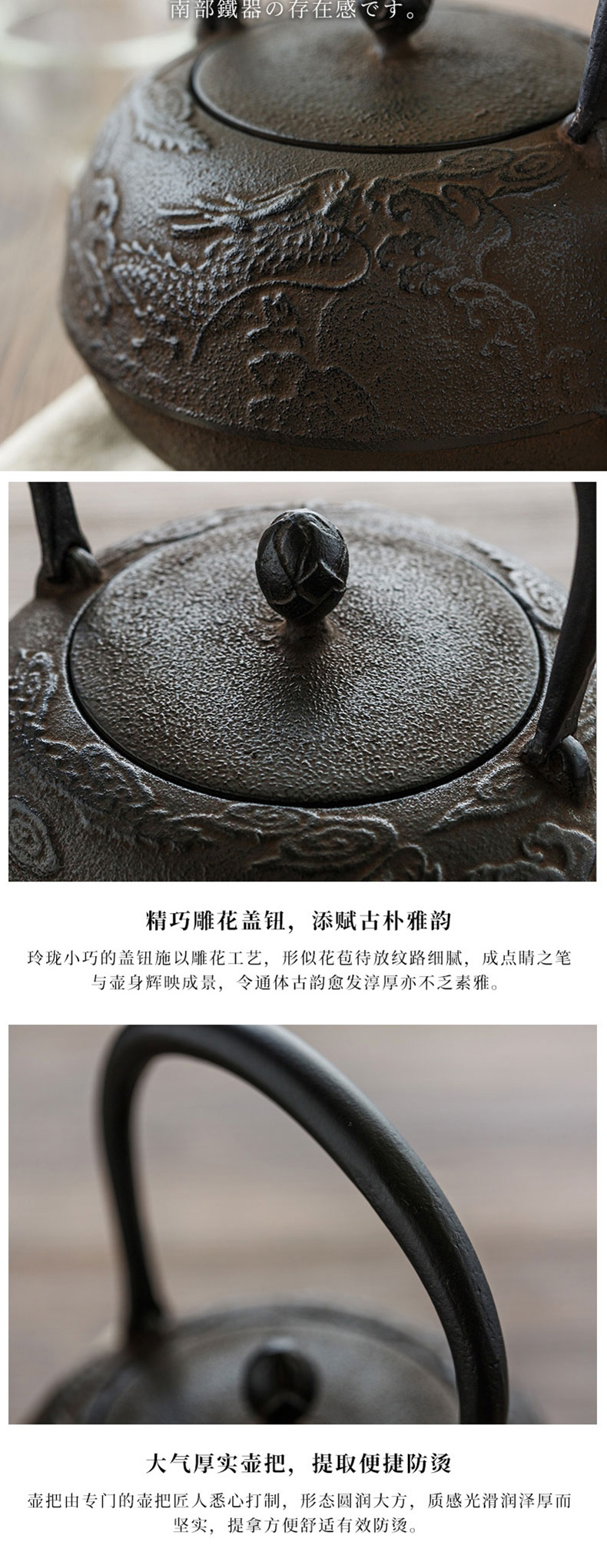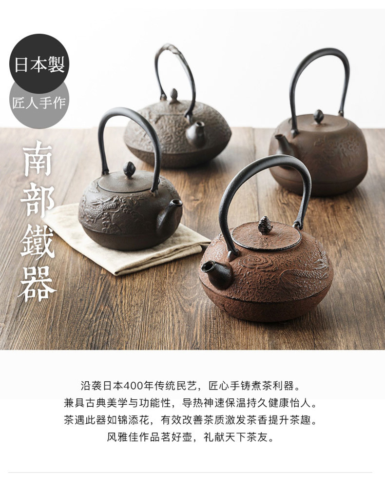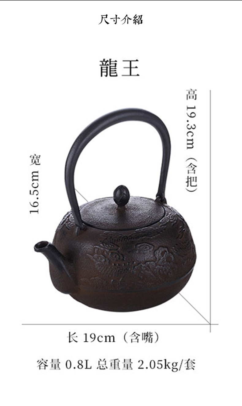 日本进口南部铁器龙王手工铸铁壶0.8L