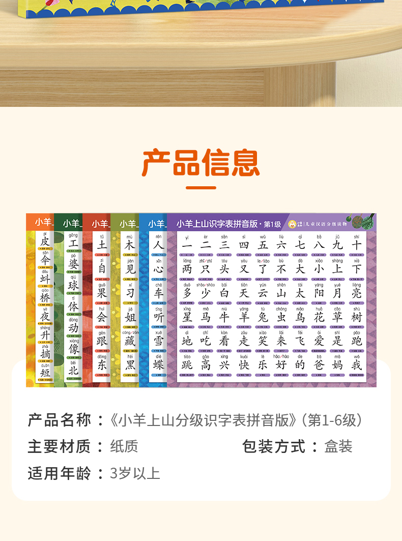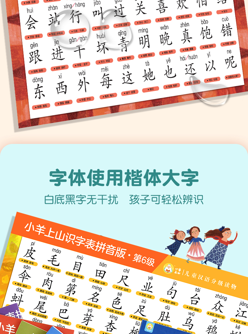 【青葫芦】小羊上山分级识字表拼音版 第1~6级