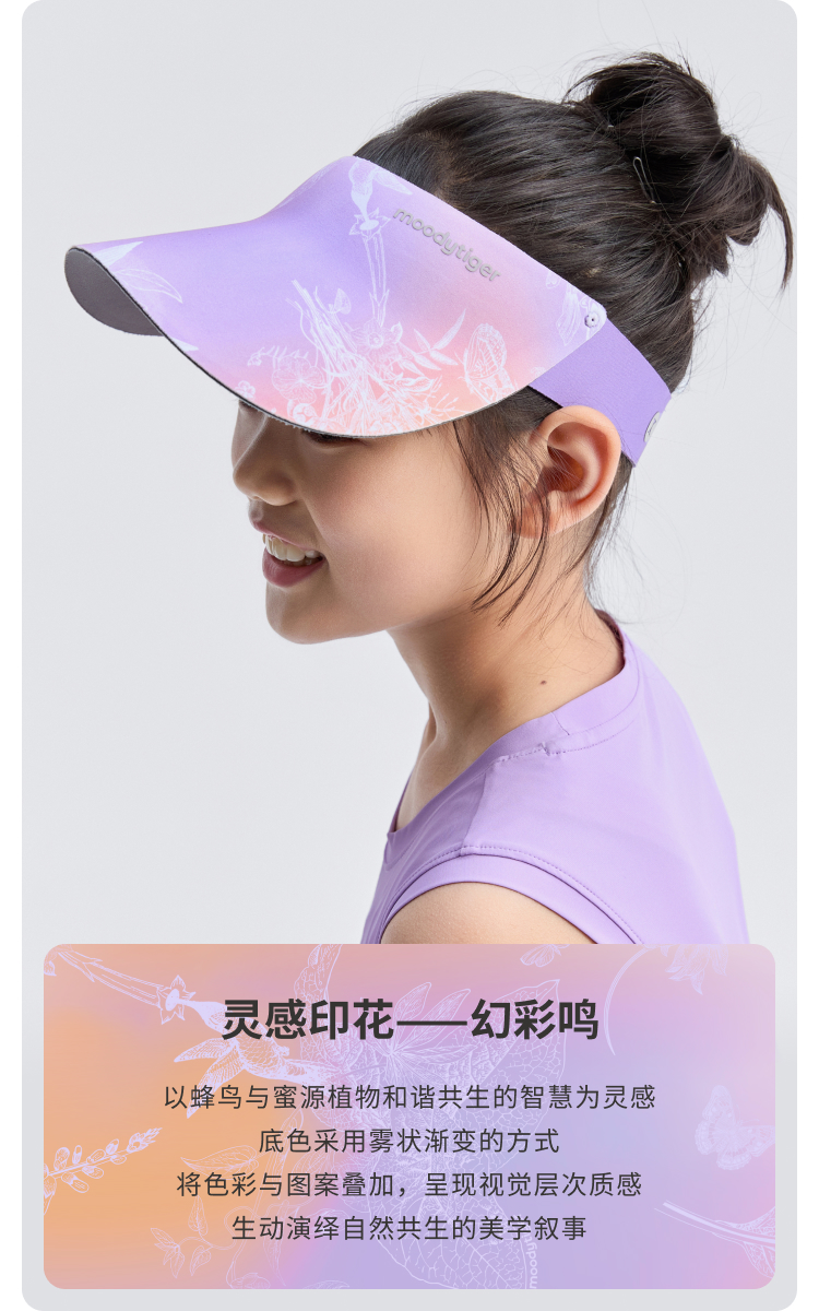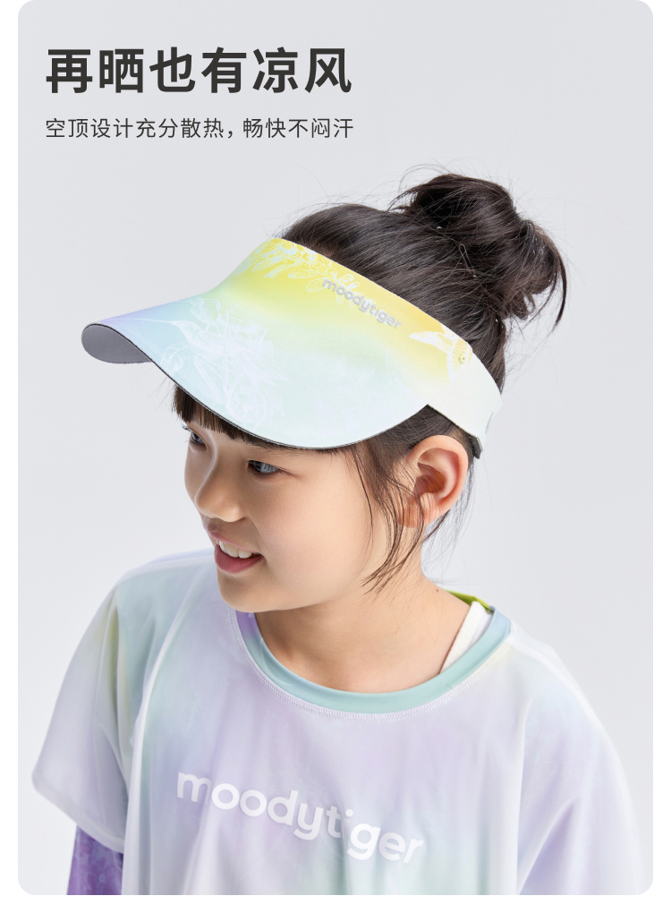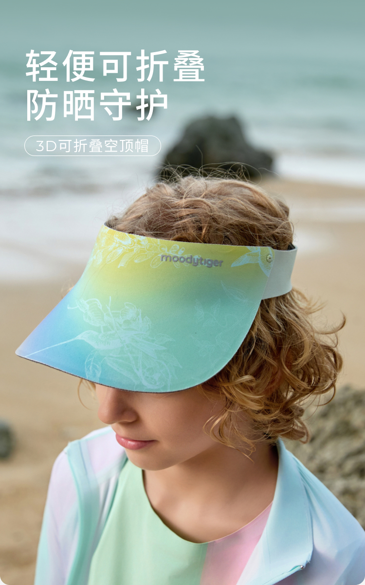 moodytiger儿童遮阳帽25夏新户外防晒3D轻便可折叠空顶帽52532402