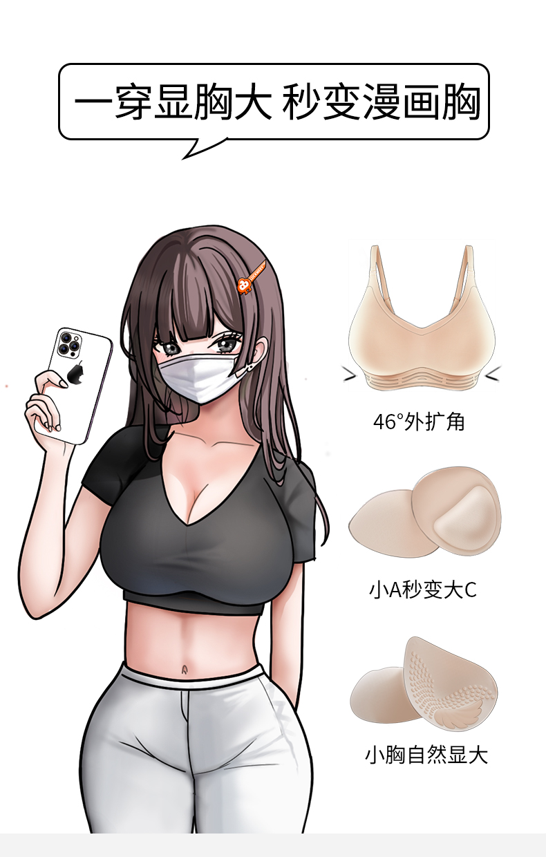 幸棉·蜜桃漫画胸小胸显大外扩内衣A变C背心款/背扣款【G】