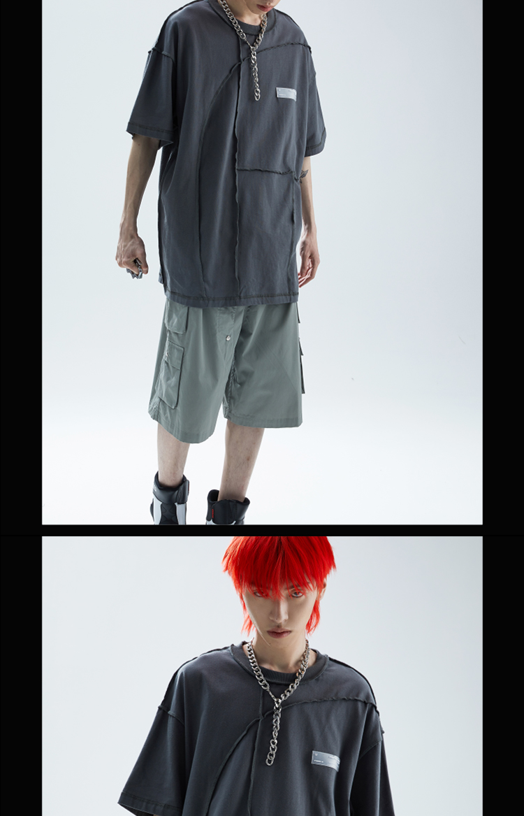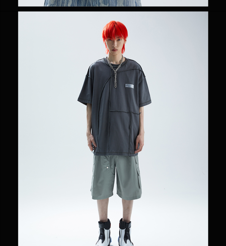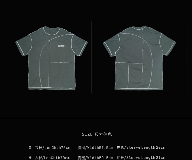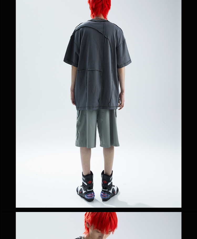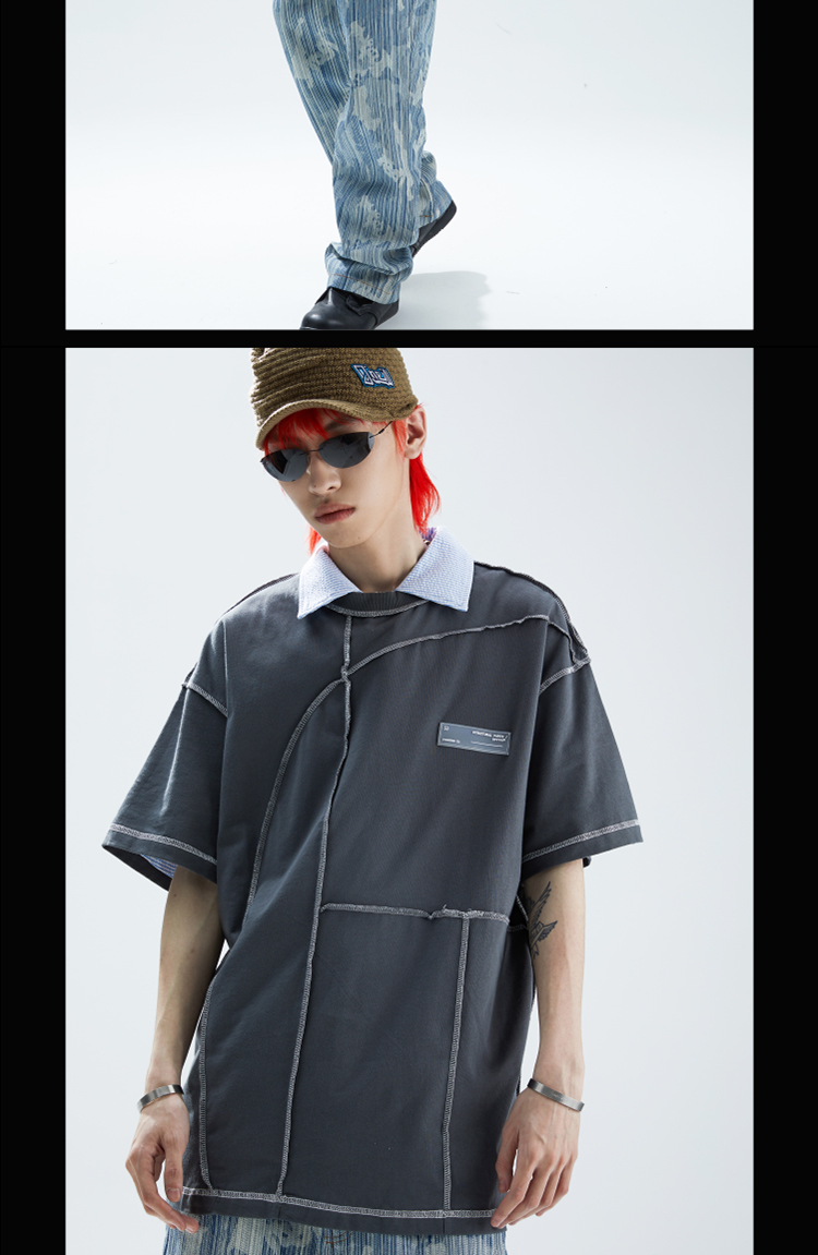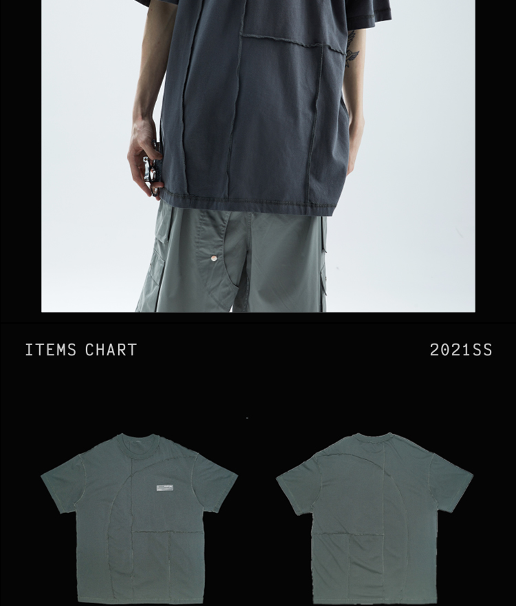 SFTTR 2021SS.曲线分割解构男女廓形不规则明线/暗线宽松短袖T恤