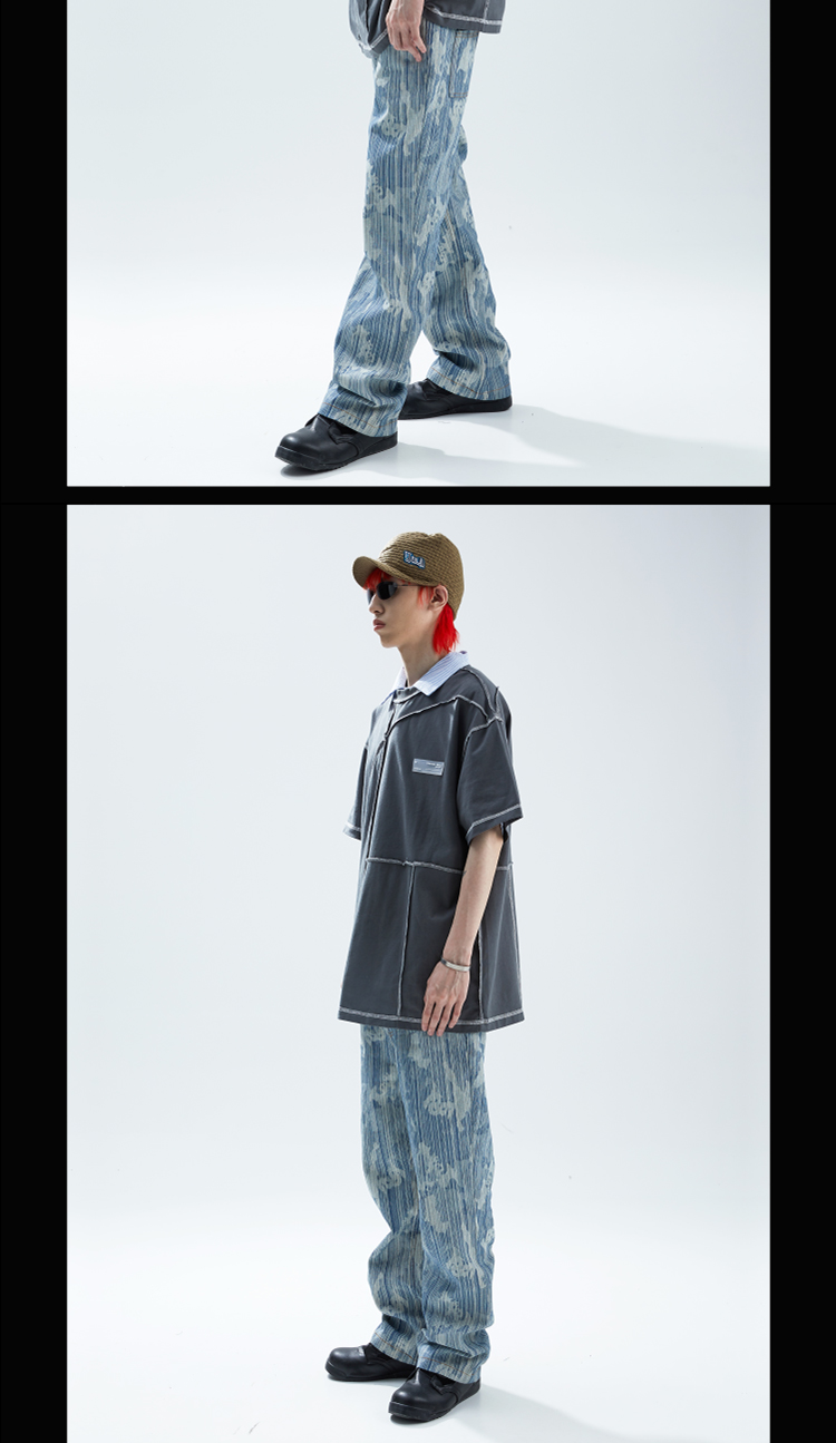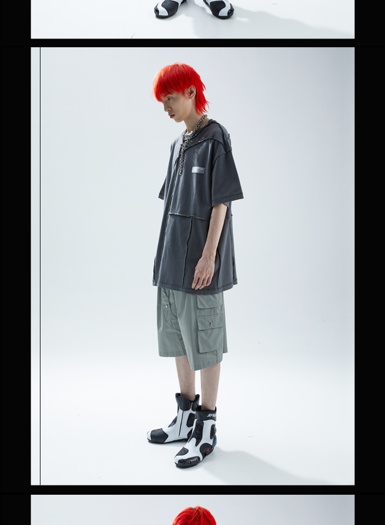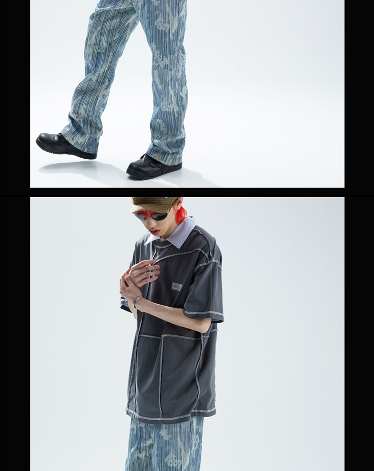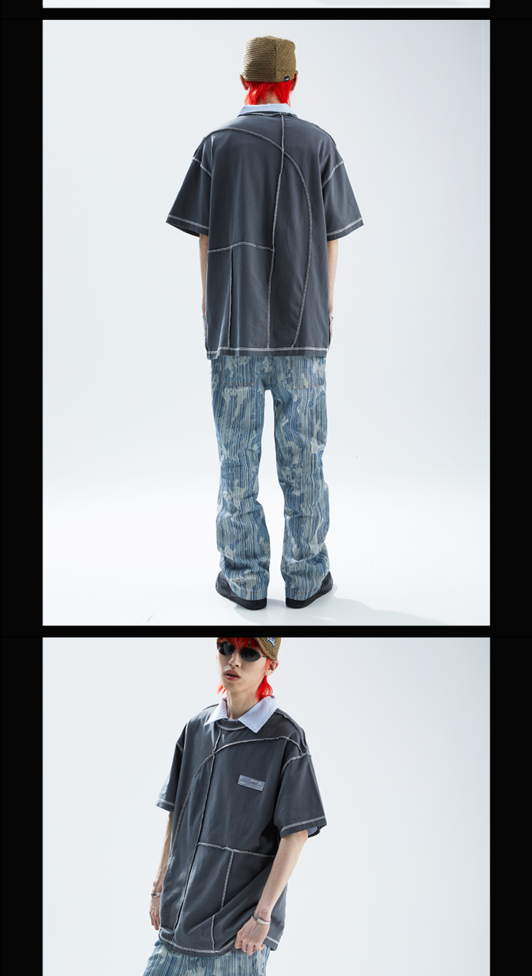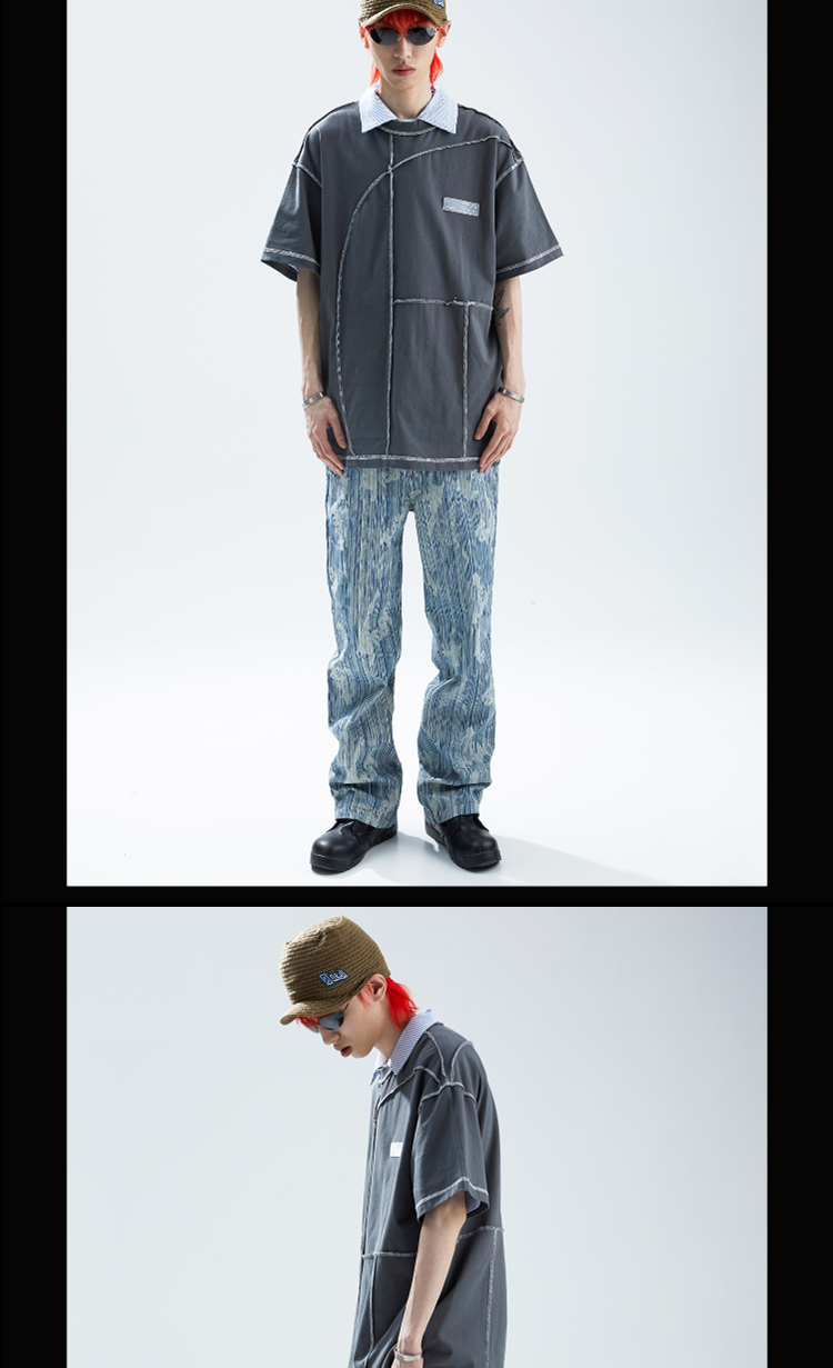SFTTR 2021SS.曲线分割解构男女廓形不规则明线/暗线宽松短袖T恤