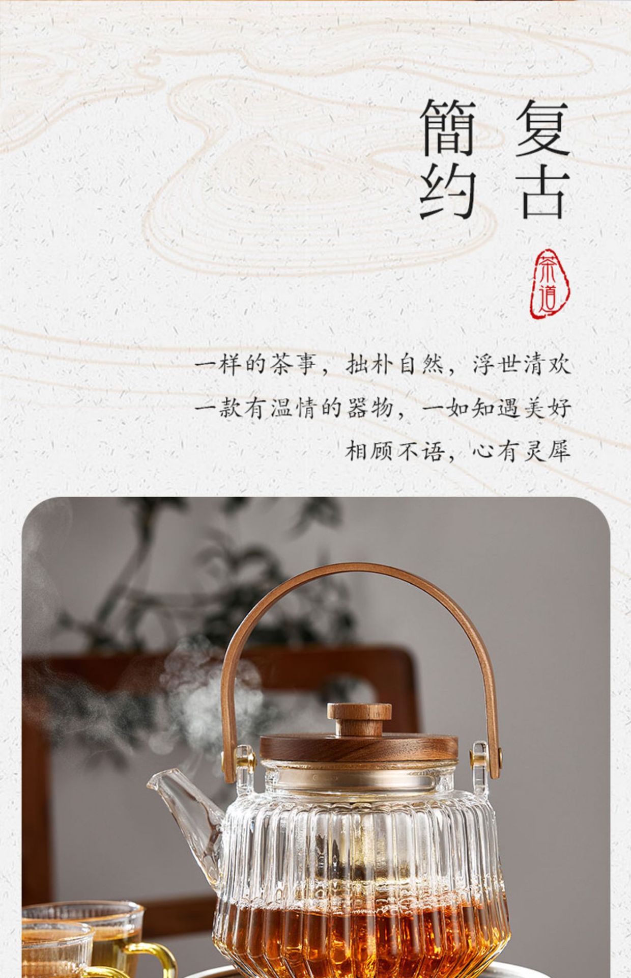 家用养生耐高温烧水壶玻璃蒸煮茶壶提梁围炉煮茶器电陶炉茶具套装