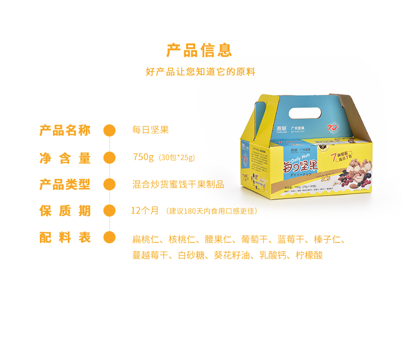 【广州帮扶】燕联丨每日坚果A款(内含30小包)750g