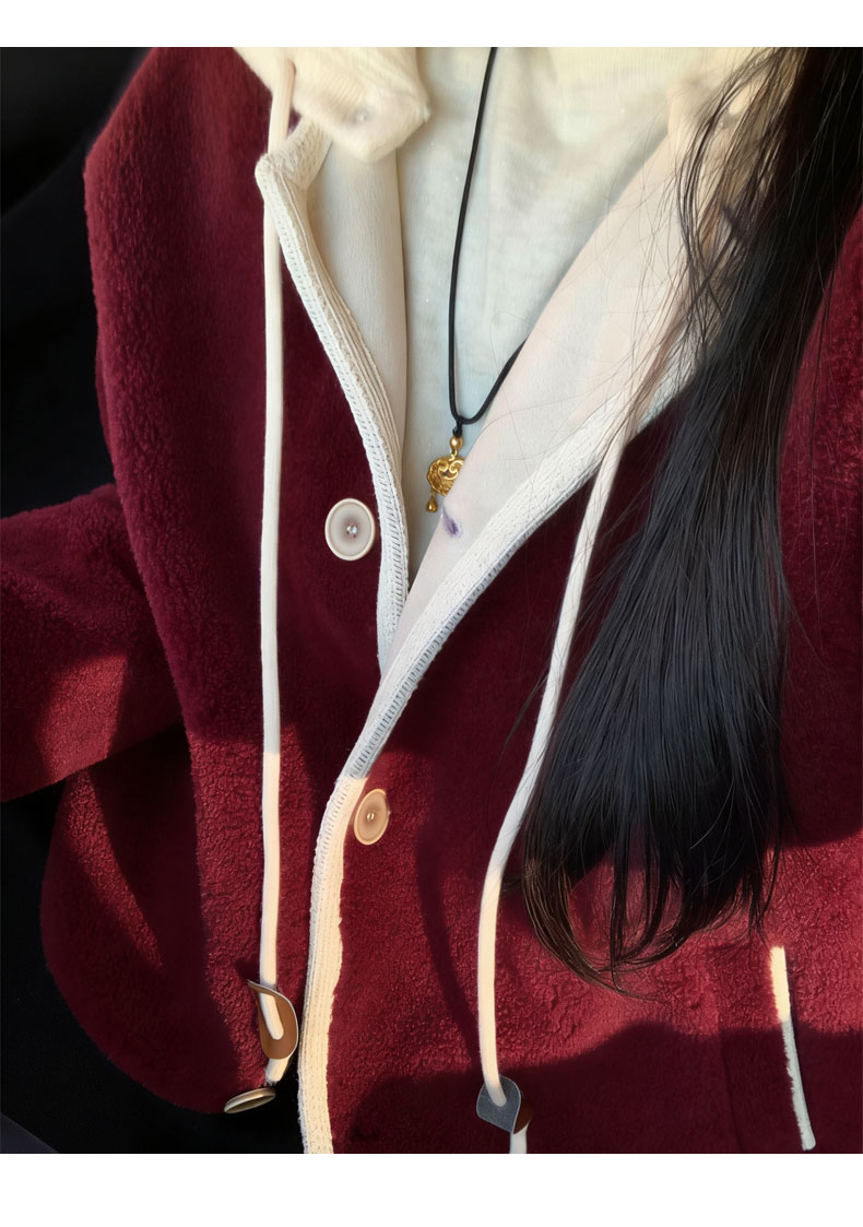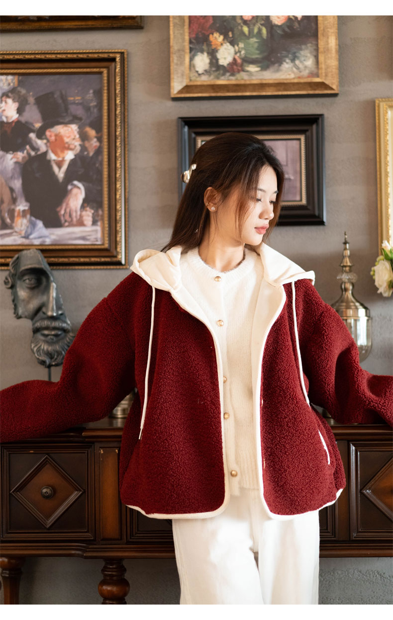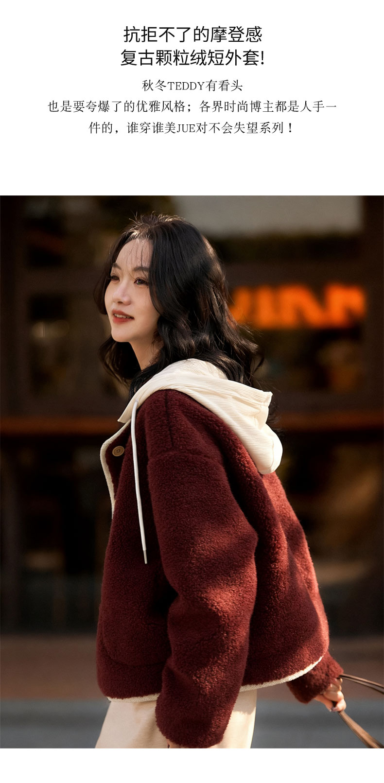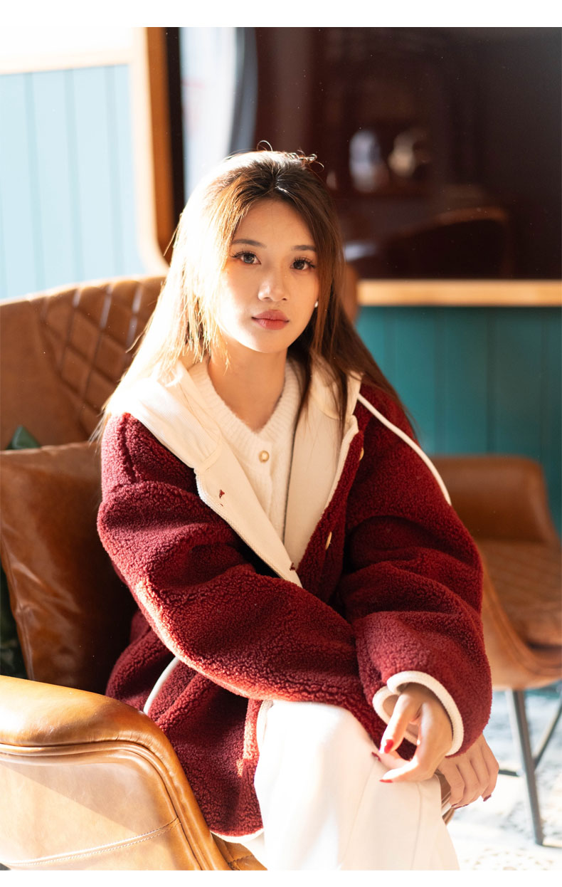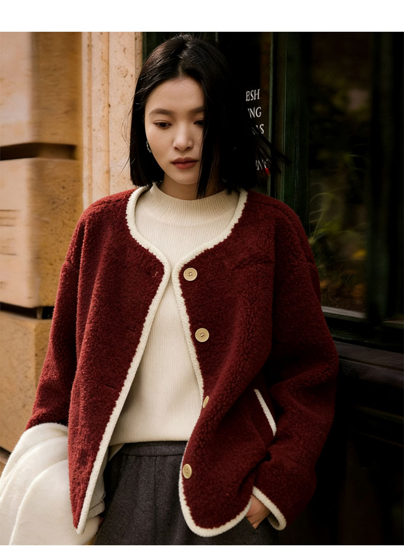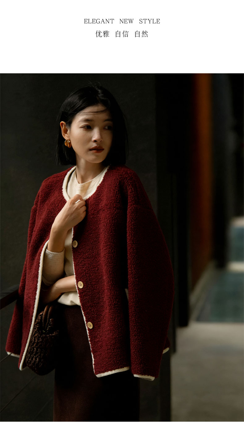LONGNVFAIR车厘子红羊羔绒外套,藏着一抹热红酒的醇厚,衬得气色透亮,年底贵气战衣(3-7天发货)【G】