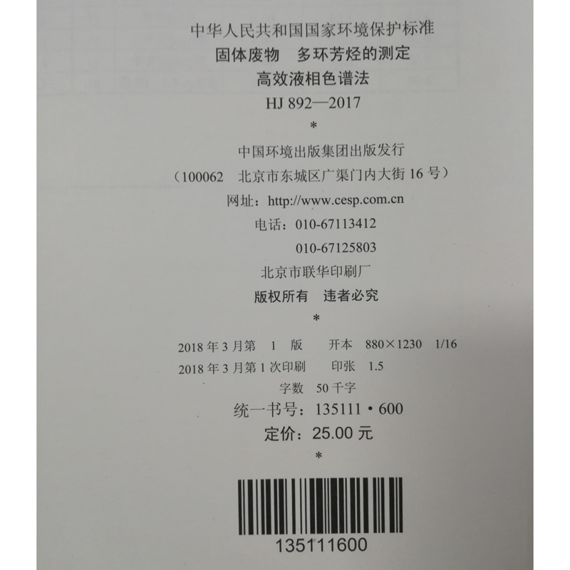 HJ 892—2017固体废物 多环芳烃的测定 高效液相色谱法 国家标准GB 环境保护 环境科学 135111600