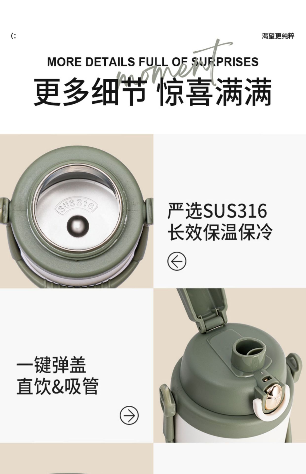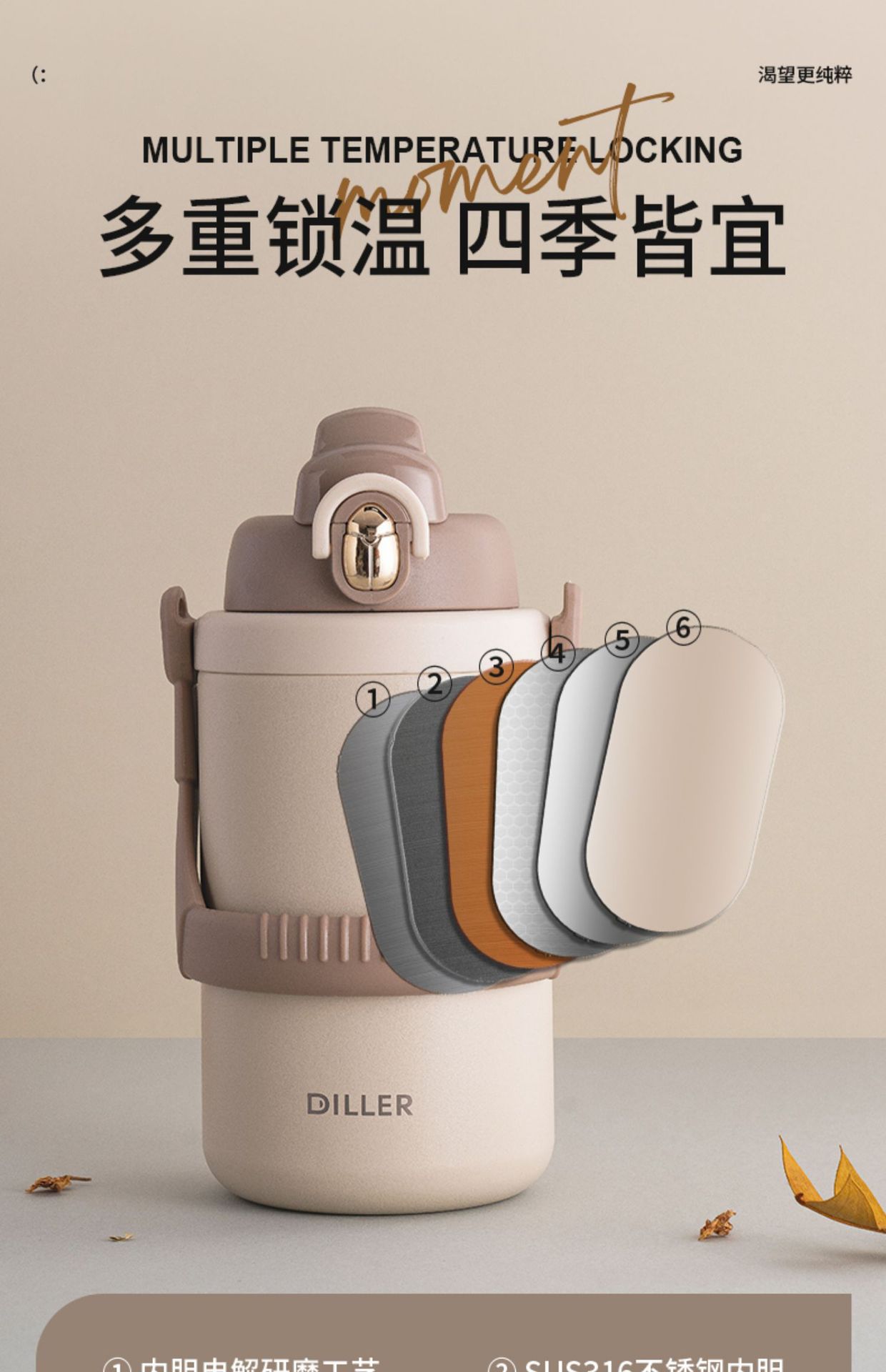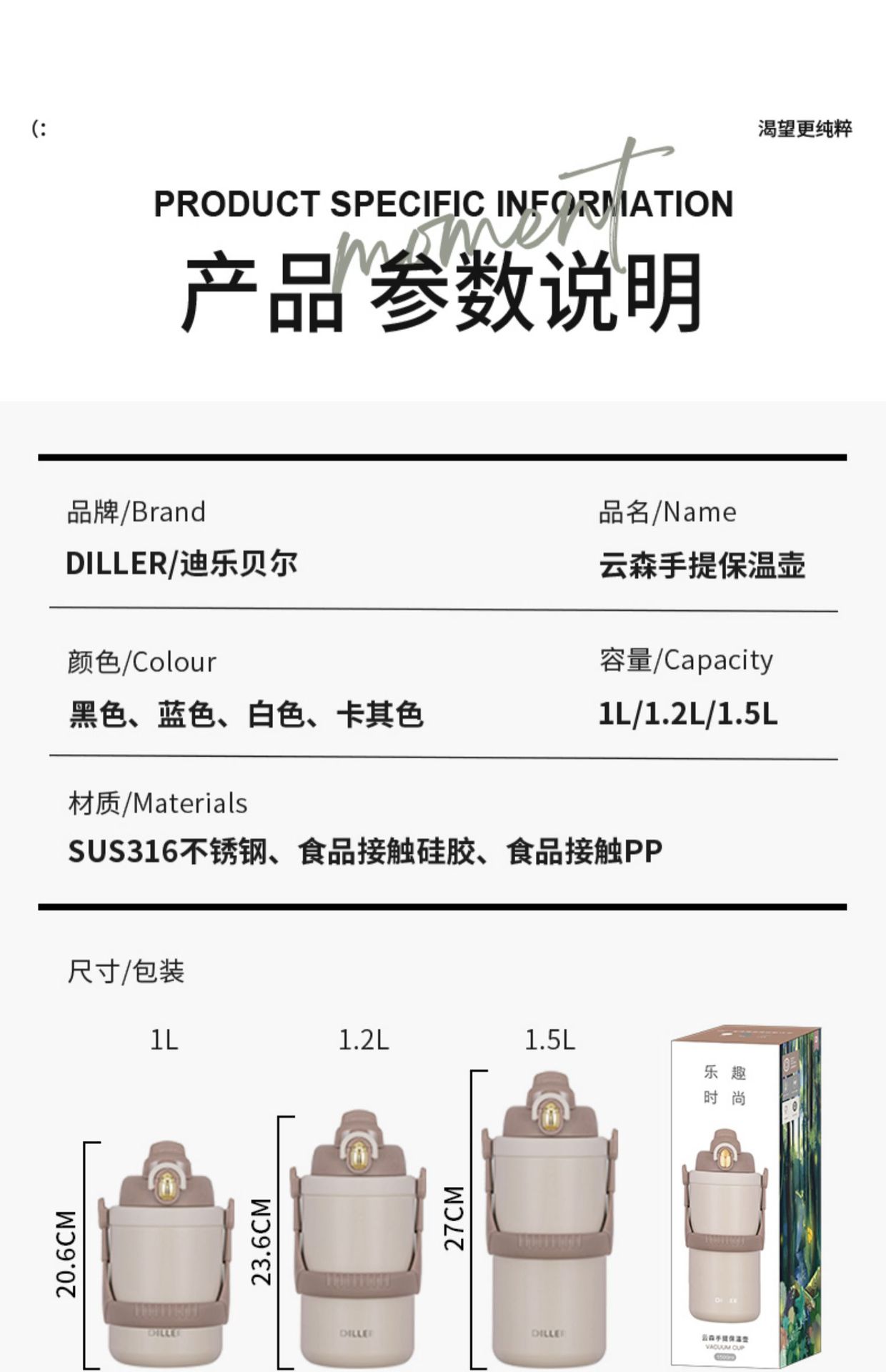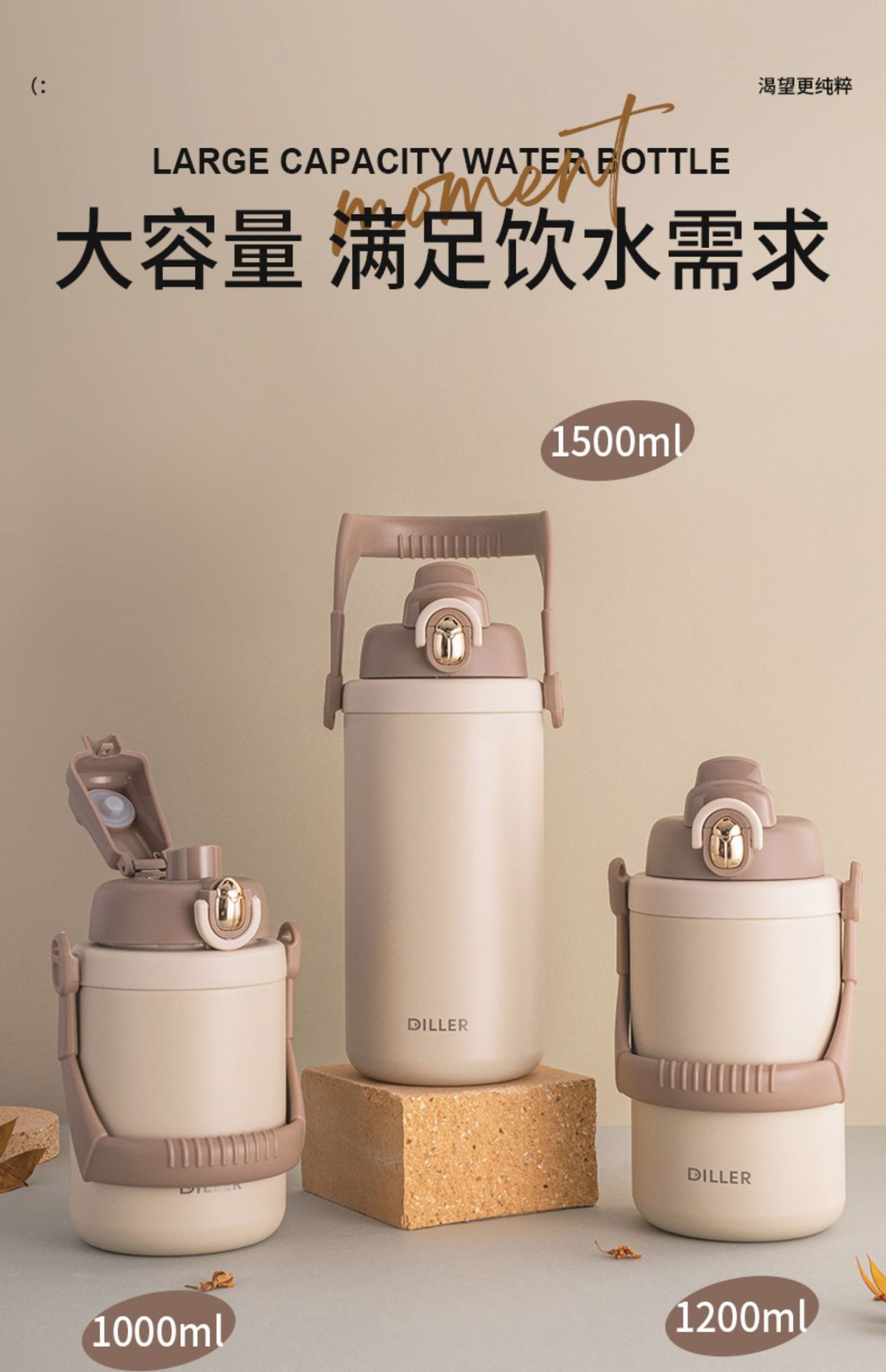 「1500ml大容量!颜值派」保温杯大容量便携户外颜值316不锈钢男女士通用保温保冷餐饮用具