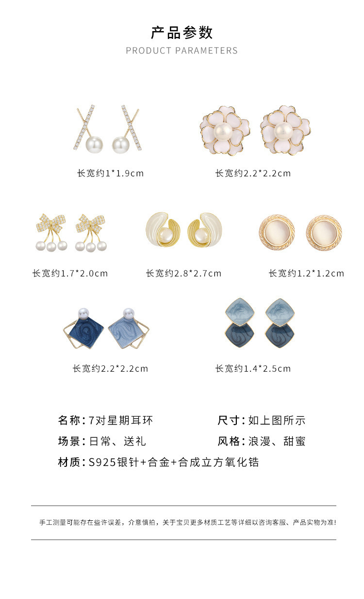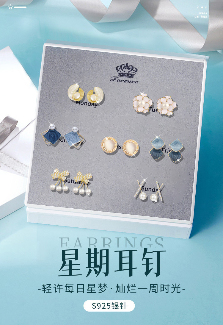 「七款礼盒装」耳钉925純銀一周耳钉套装高级感蝴蝶结珍珠耳环520礼物送女生时尚饰品