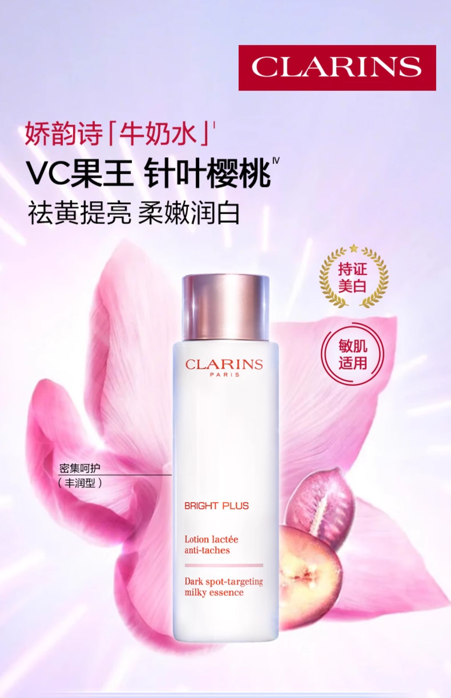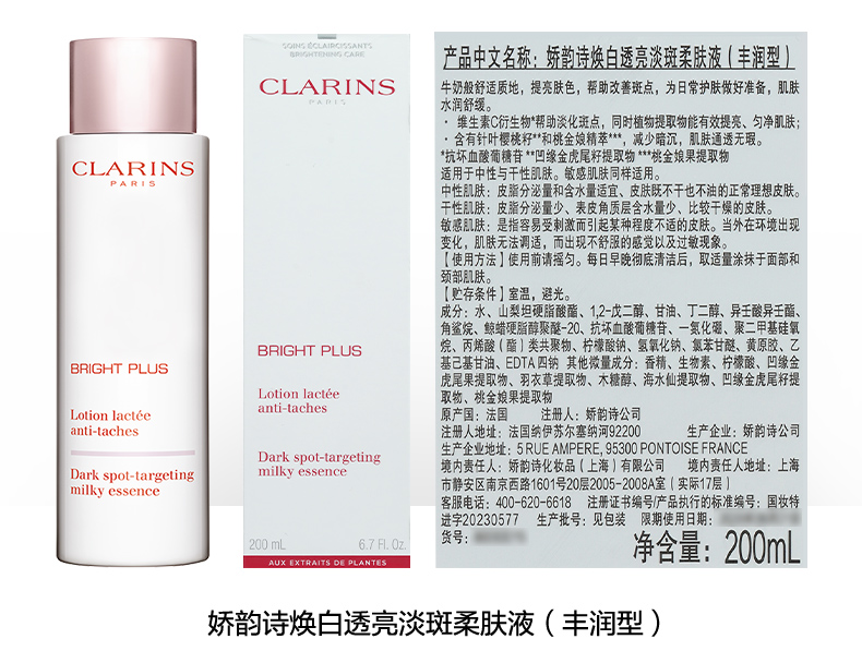 娇韵诗 滋润型牛奶水美白水 美白淡斑补水保湿