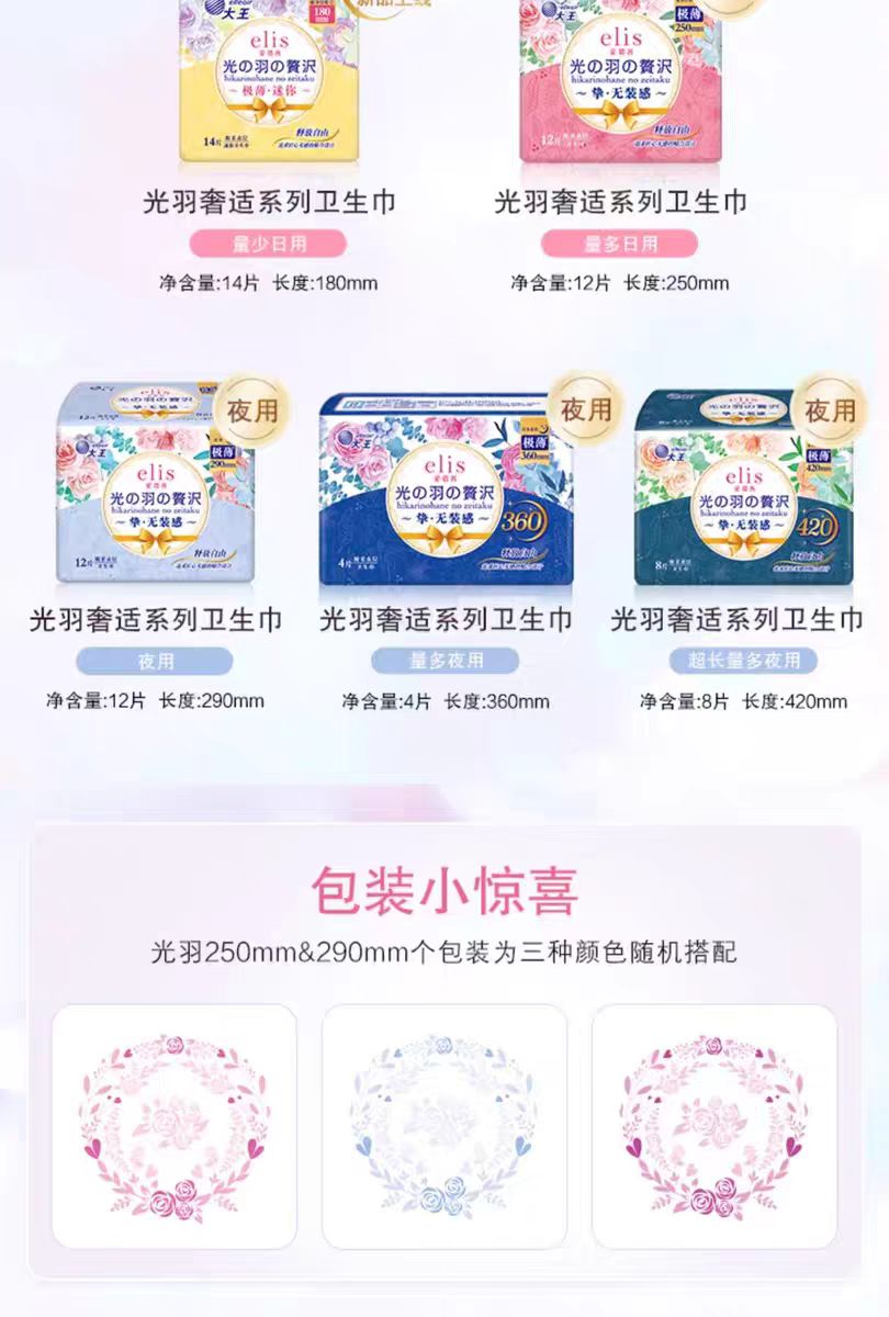 (290mm)大王elis爱璐茜夜用卫生巾光羽 12片