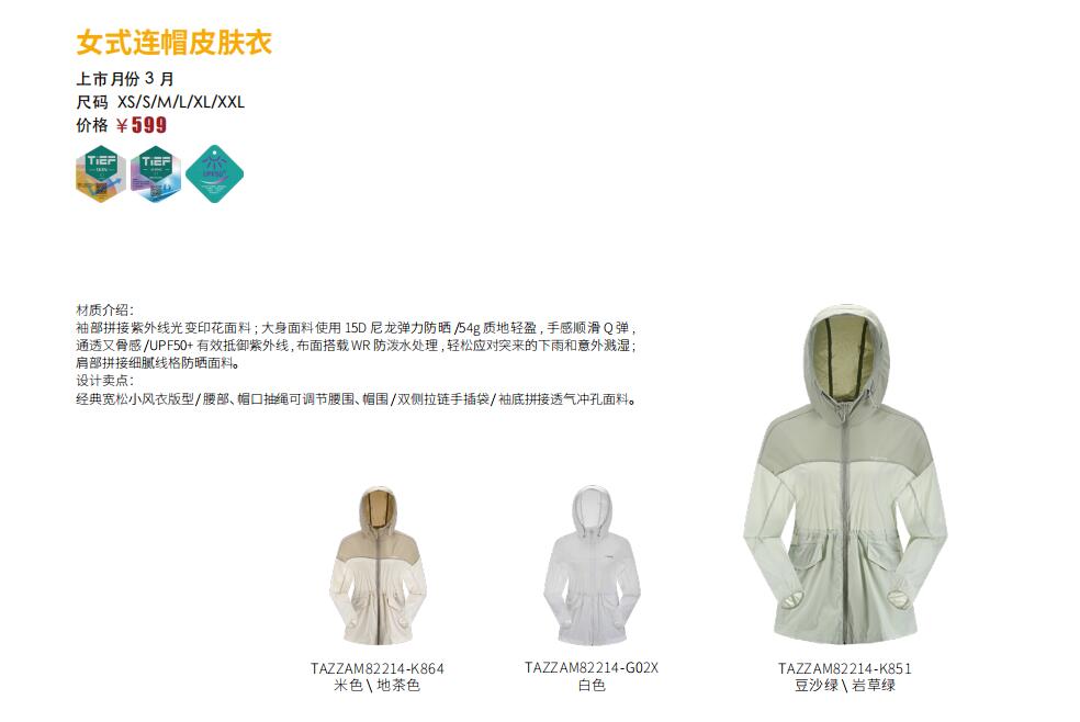 探路者女式连帽皮肤衣TAZZAM82214