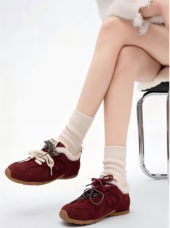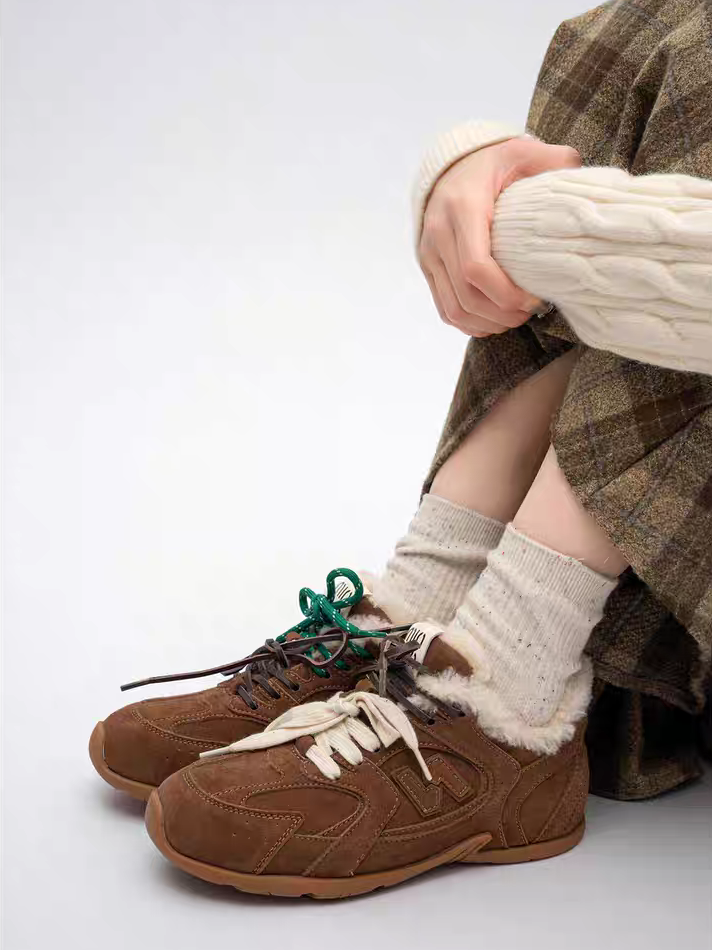 【首发立减10元】2025新款秋冬女款平底德训鞋 羊毛内里加绒 保暖百搭美拉德秋冬休闲鞋通勤运动两不误【鸳鸯鞋带】