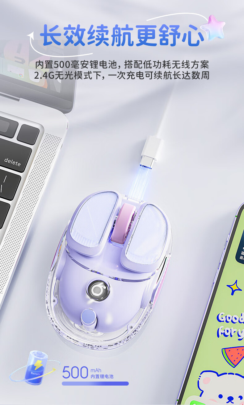 前行者Q9小土豆无线蓝牙双模透明鼠标
