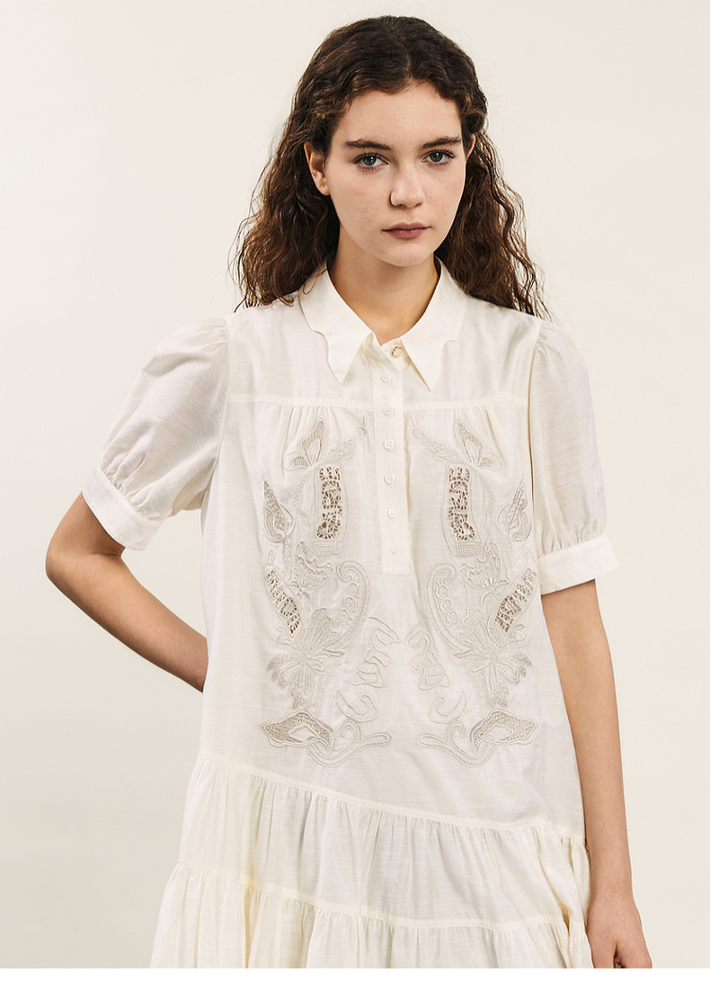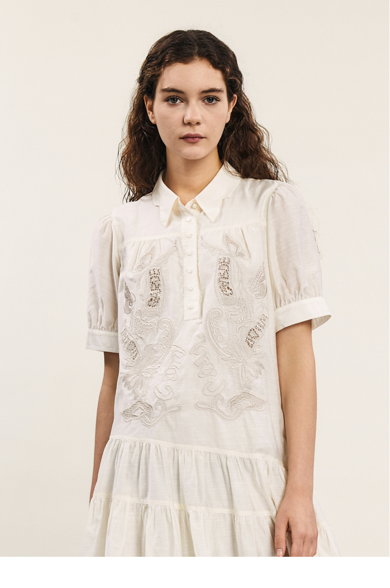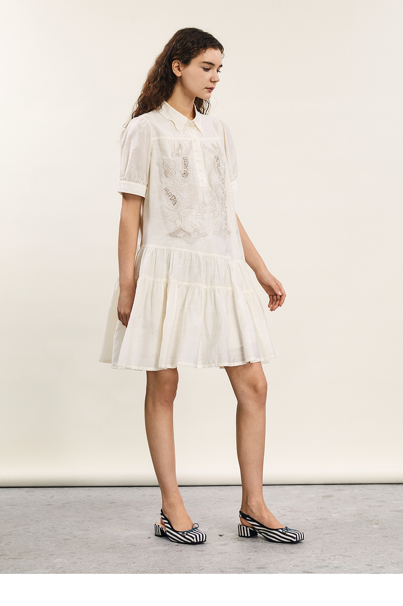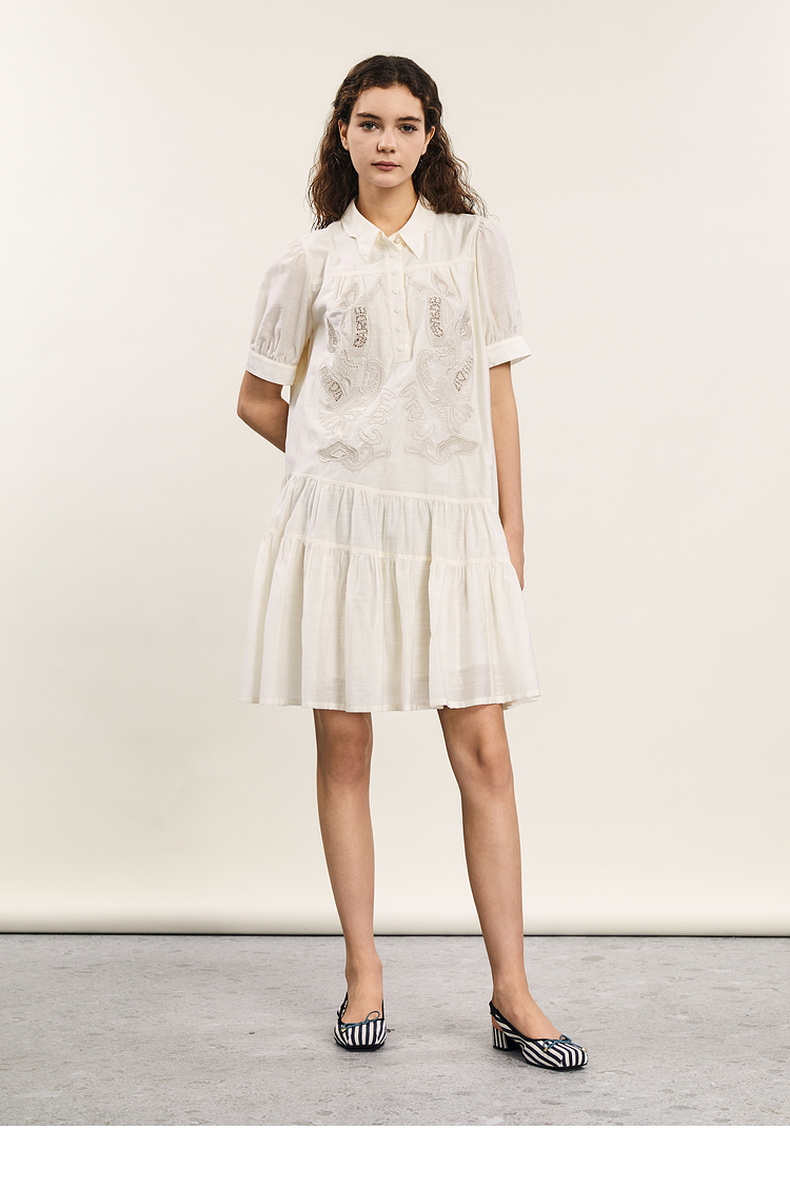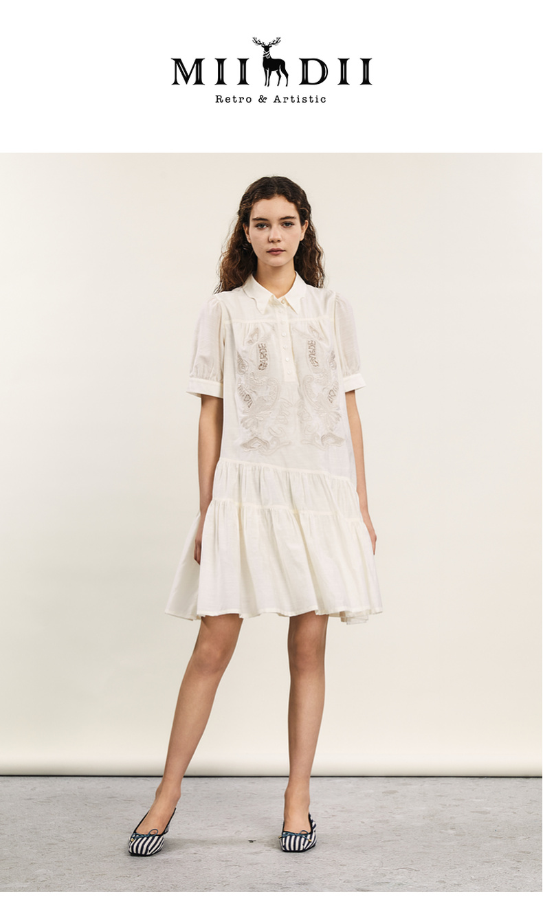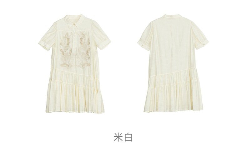谜底连衣裙短袖女2024年夏款复古宫廷风绣花宽松中长裙242ML0508