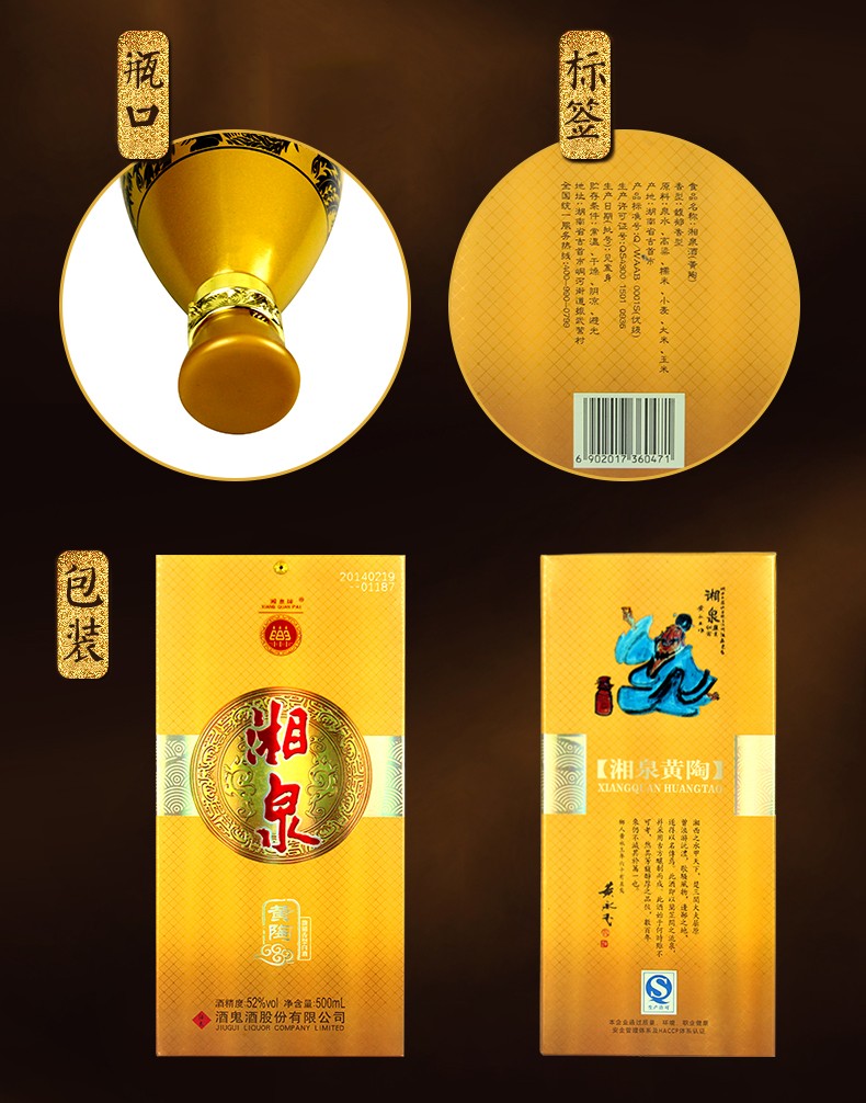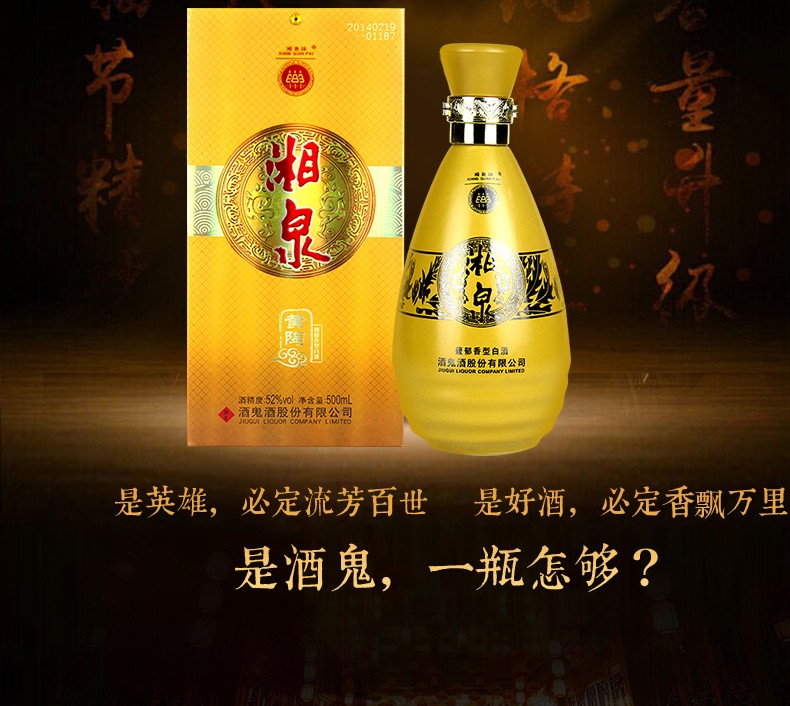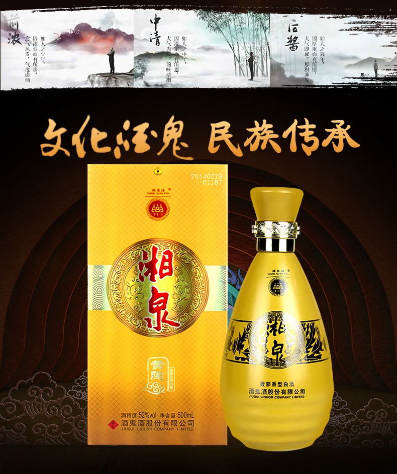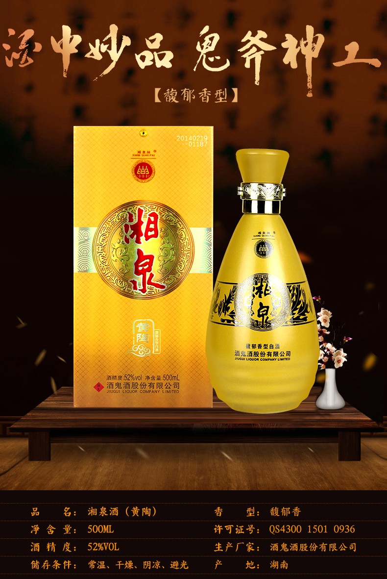 酒鬼湘泉黄陶 52度馥郁香型白酒口粮酒 整箱500ml*6瓶包邮