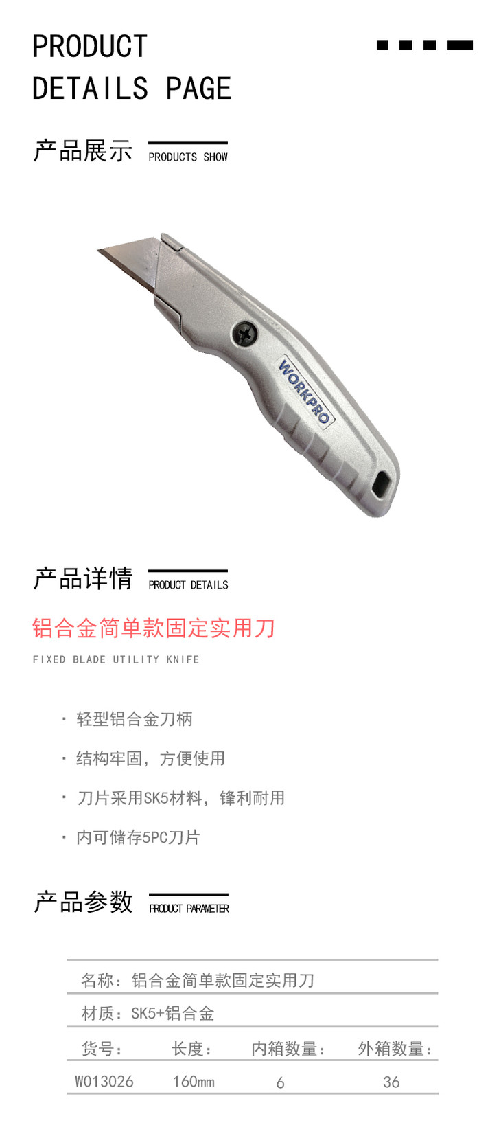 w013026万克宝WORKPRO铝合金简单款固定实用刀