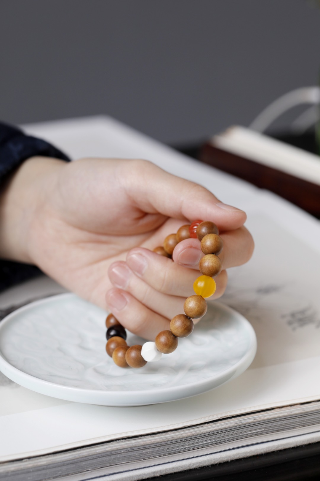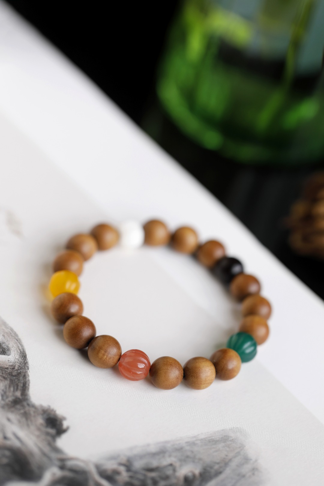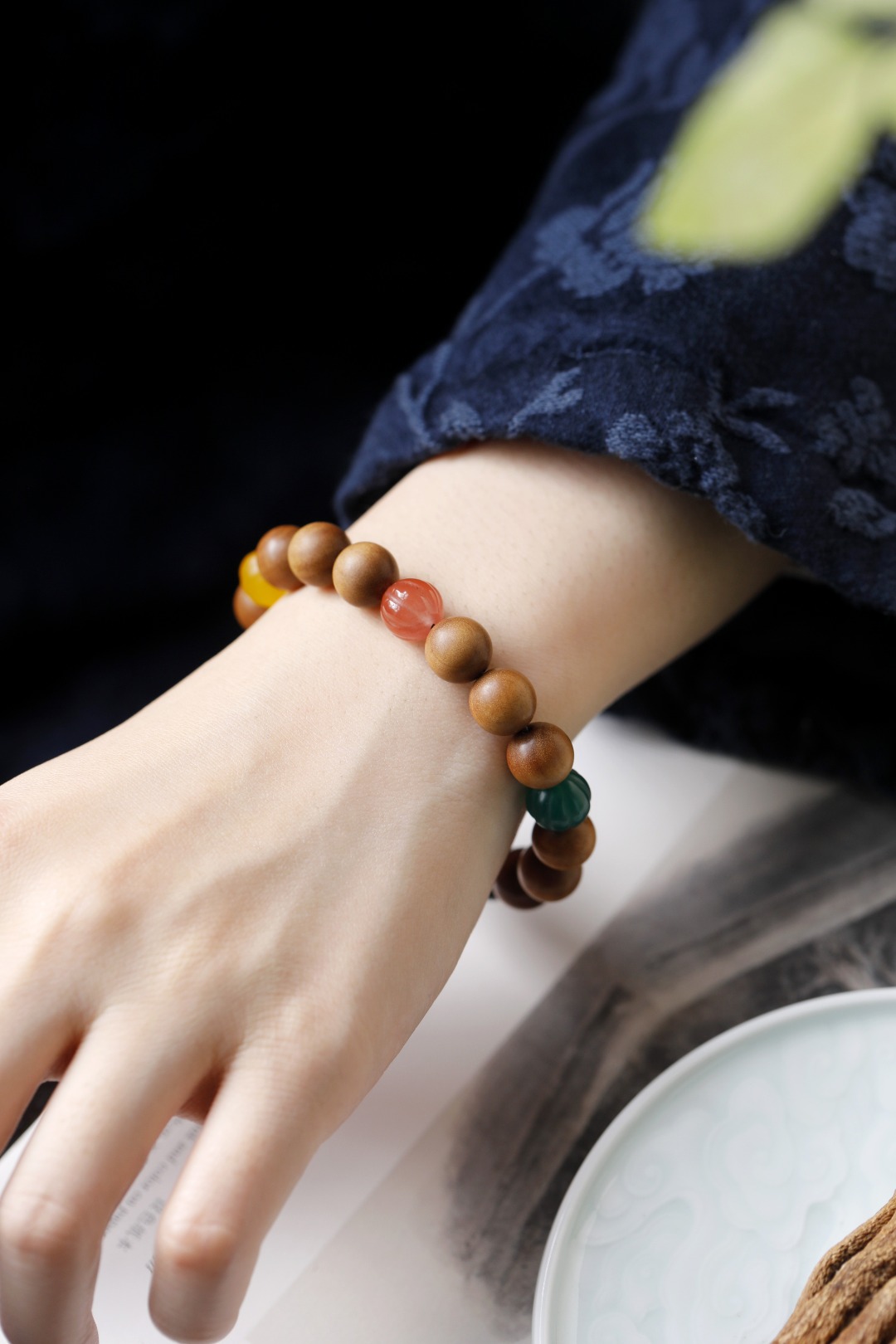选用醇香老山檀香,搭配大漆珠,