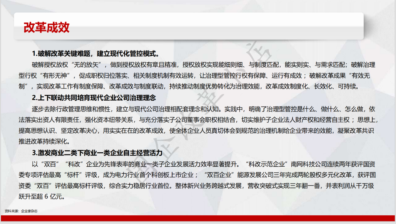 加强子企业治理:建立“三个加强、四个推进、三个优化”的“三四三”工作法,推动集团完善子企业治理相关经验做法落地实施,提升整体公司治理水平。
