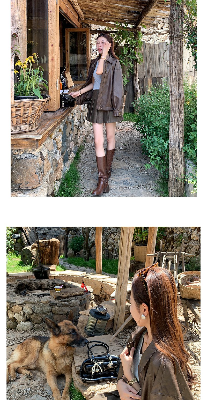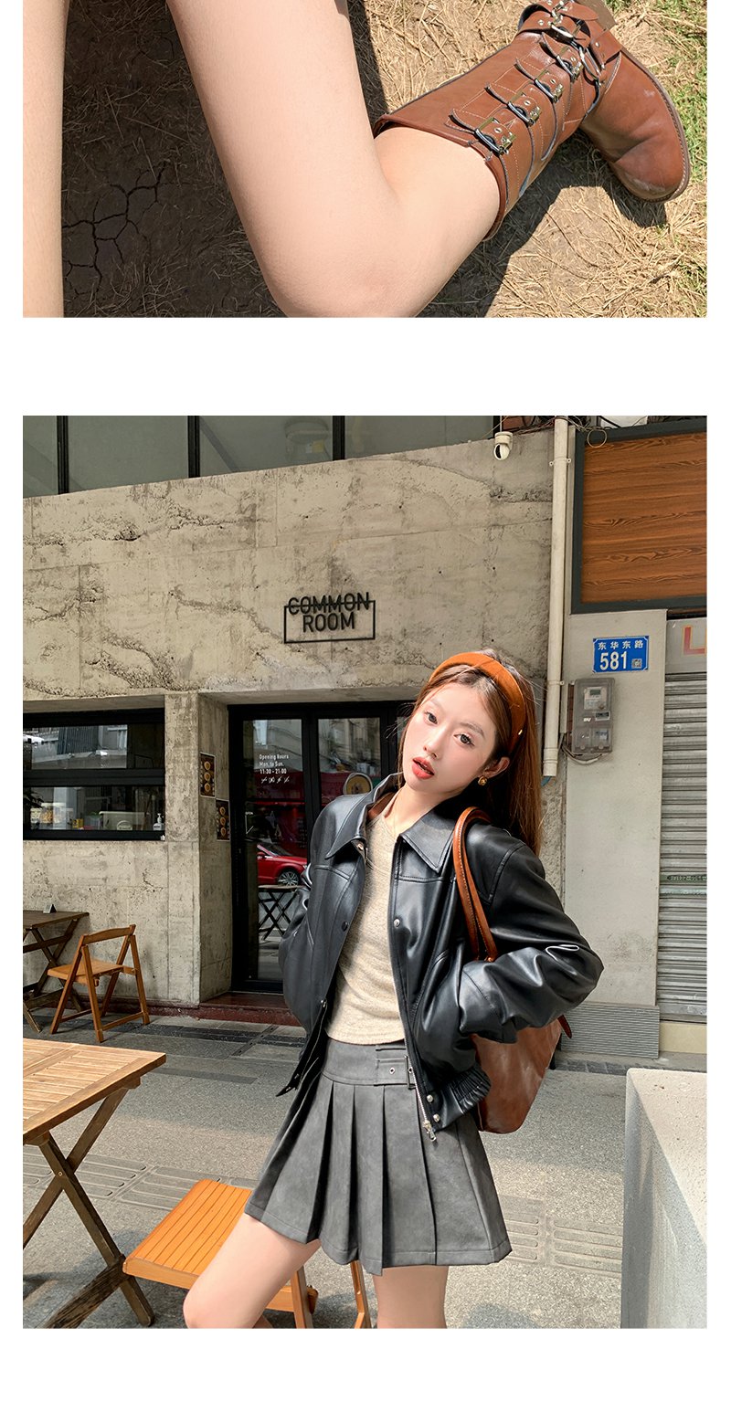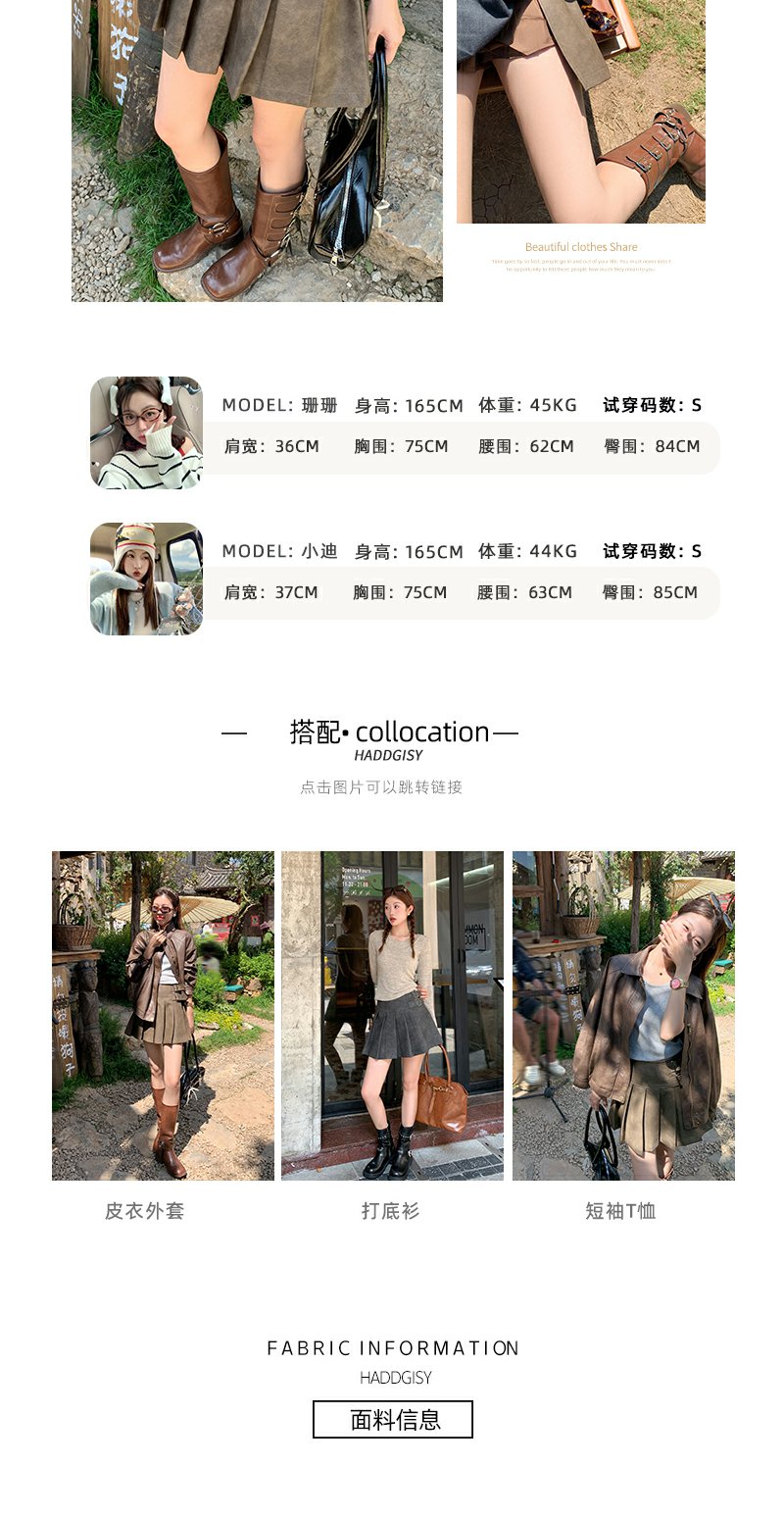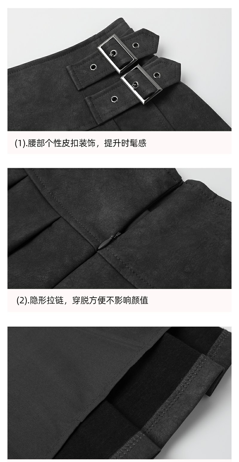 【129元任选2件】现货!复古百搭2色皮裙高腰a字百褶半裙