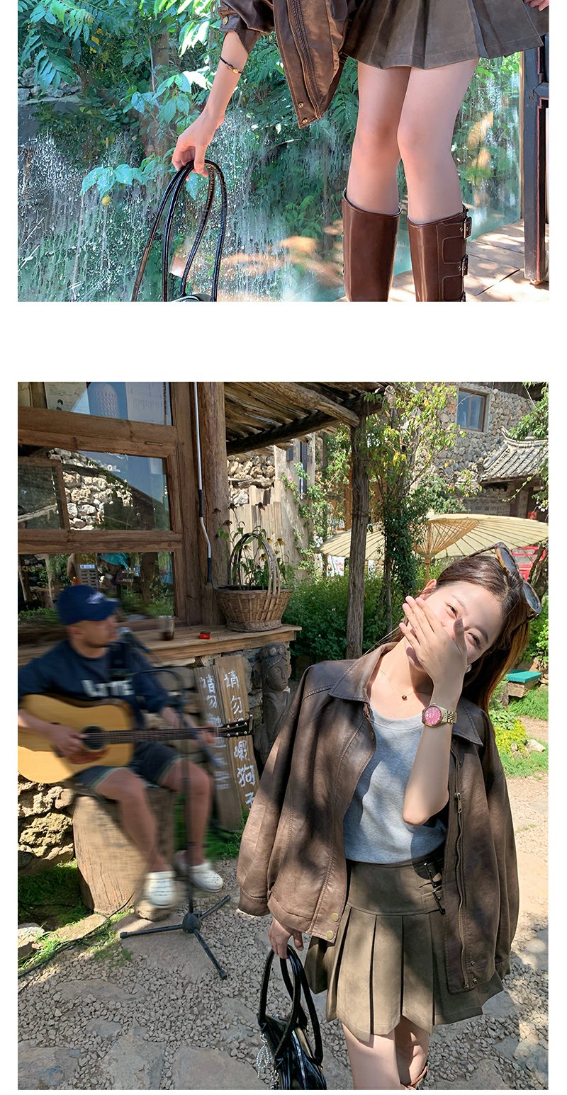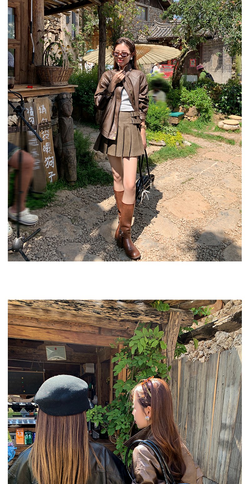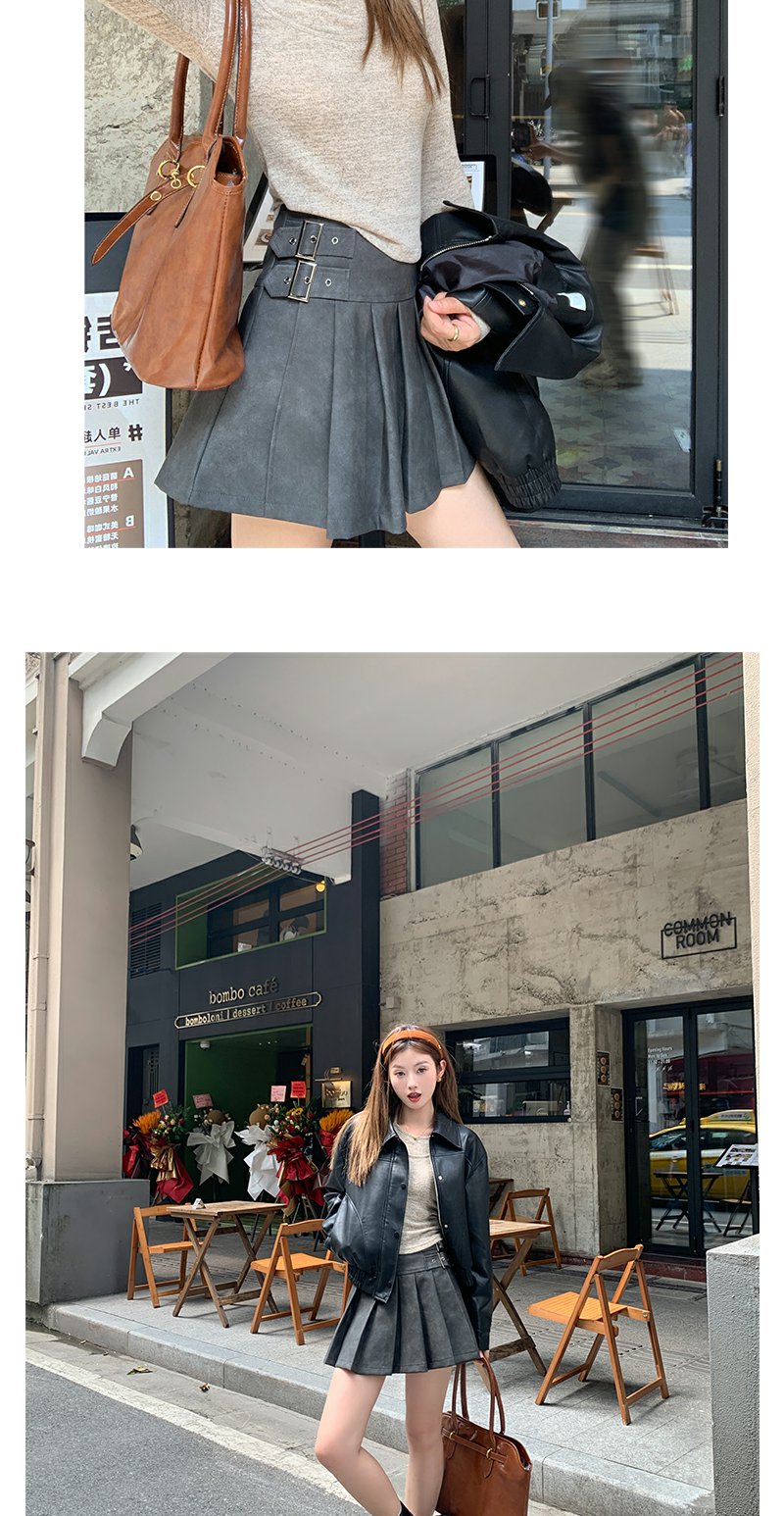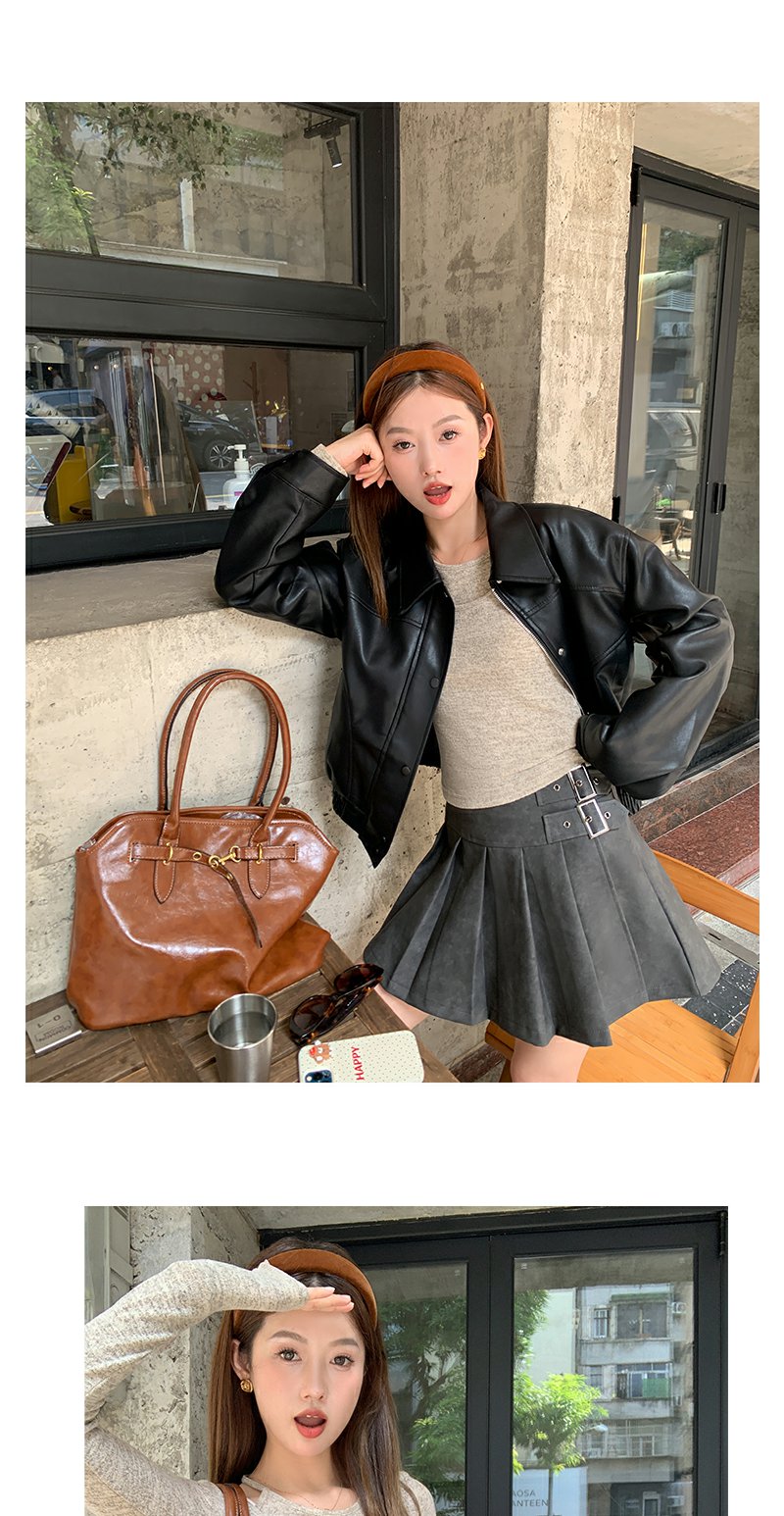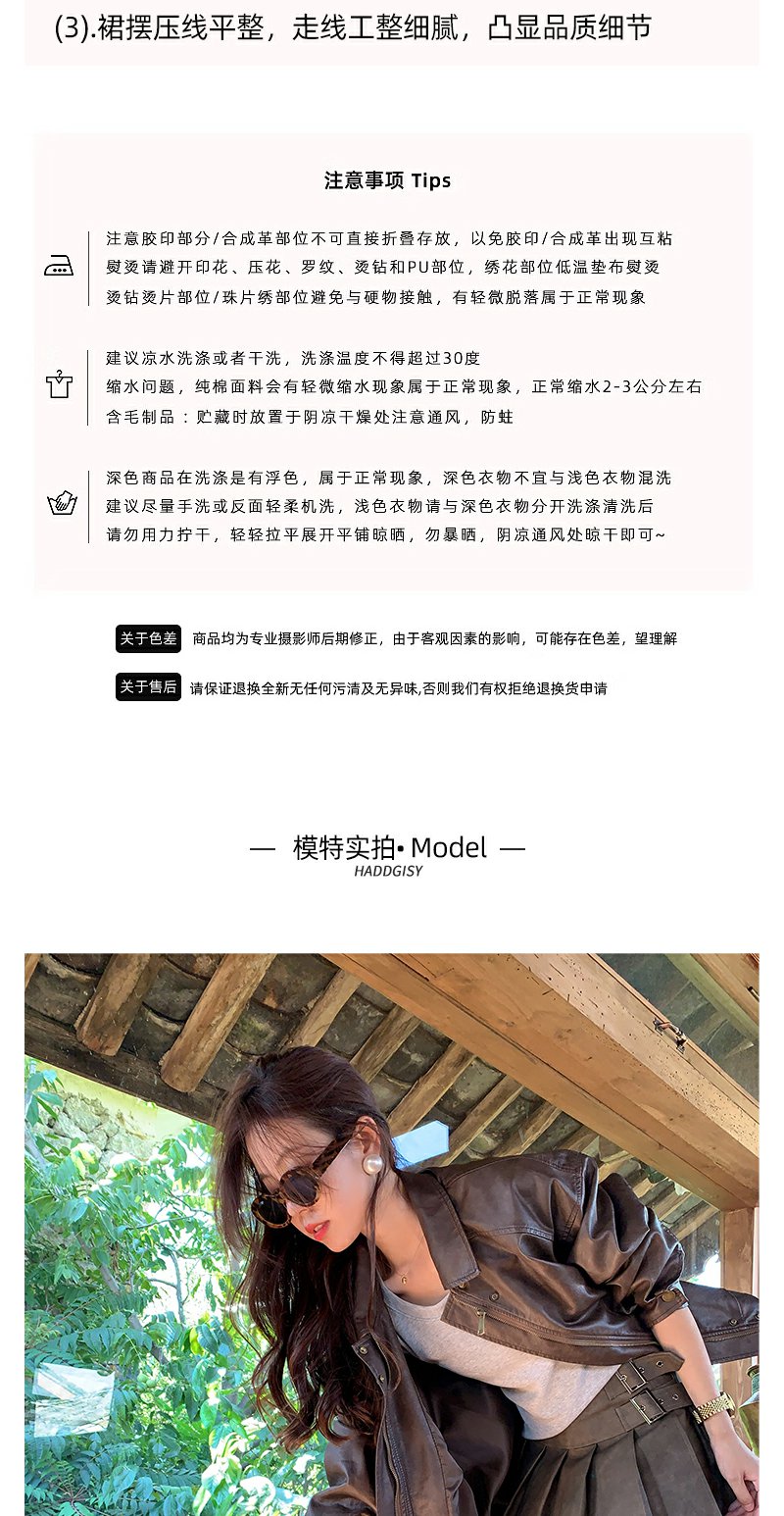 【129元任选2件】现货!复古百搭2色皮裙高腰a字百褶半裙