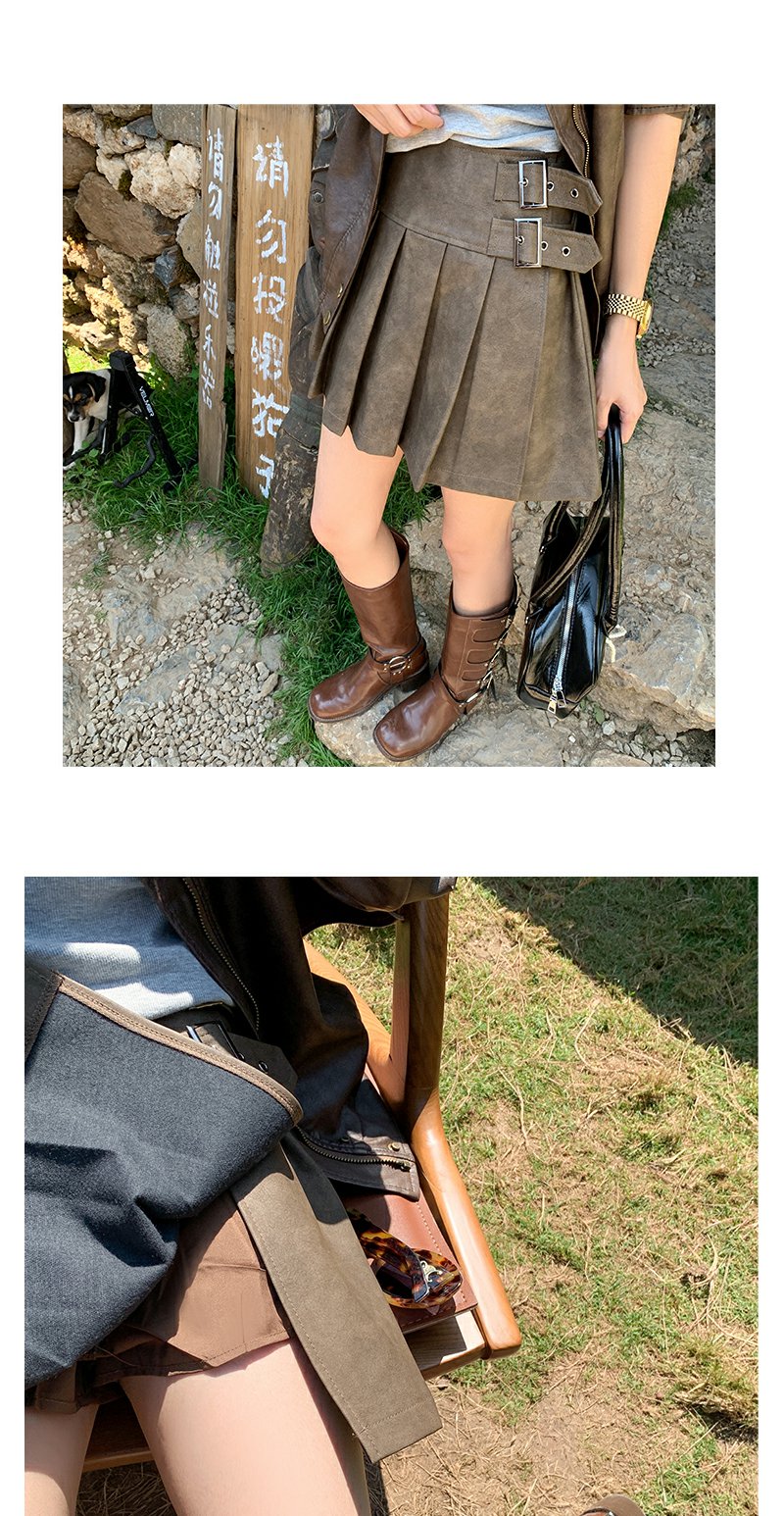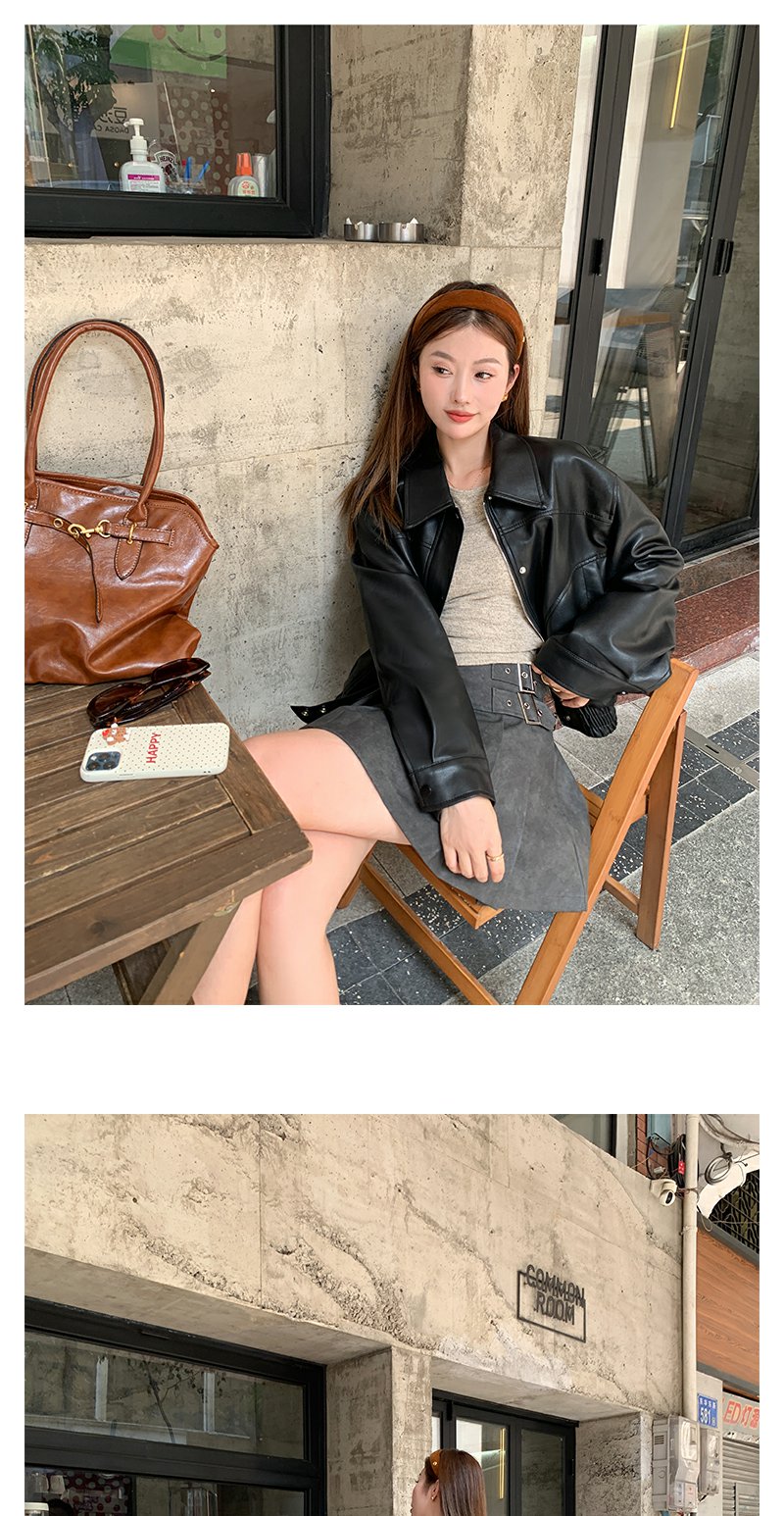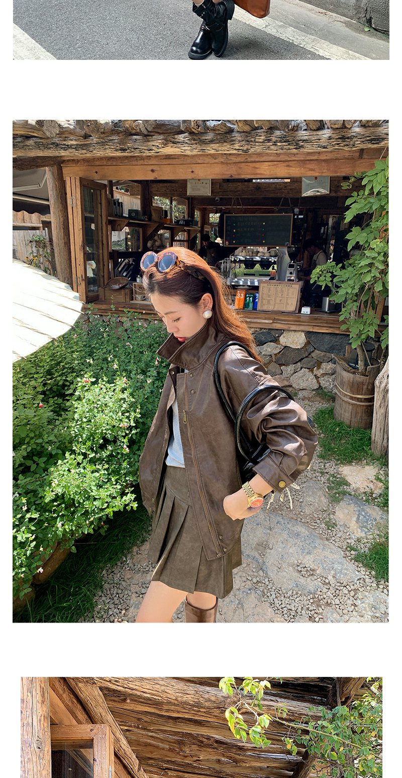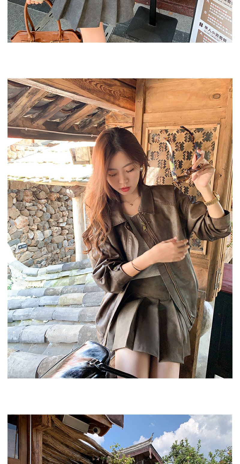 【129元任选2件】现货!复古百搭2色皮裙高腰a字百褶半裙