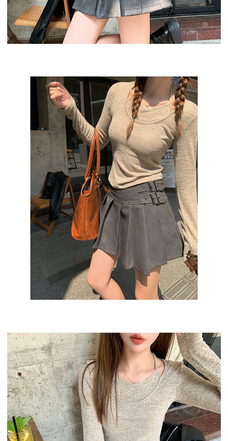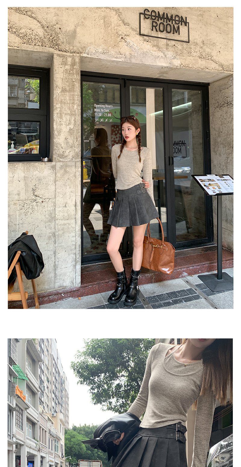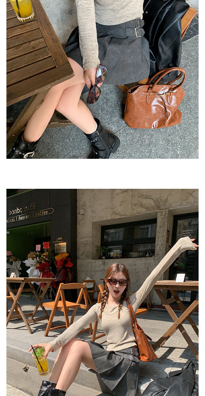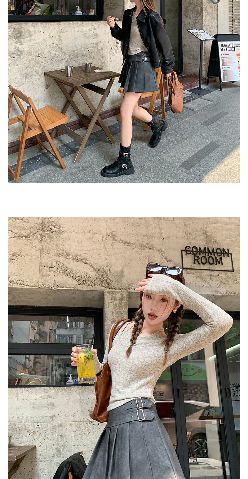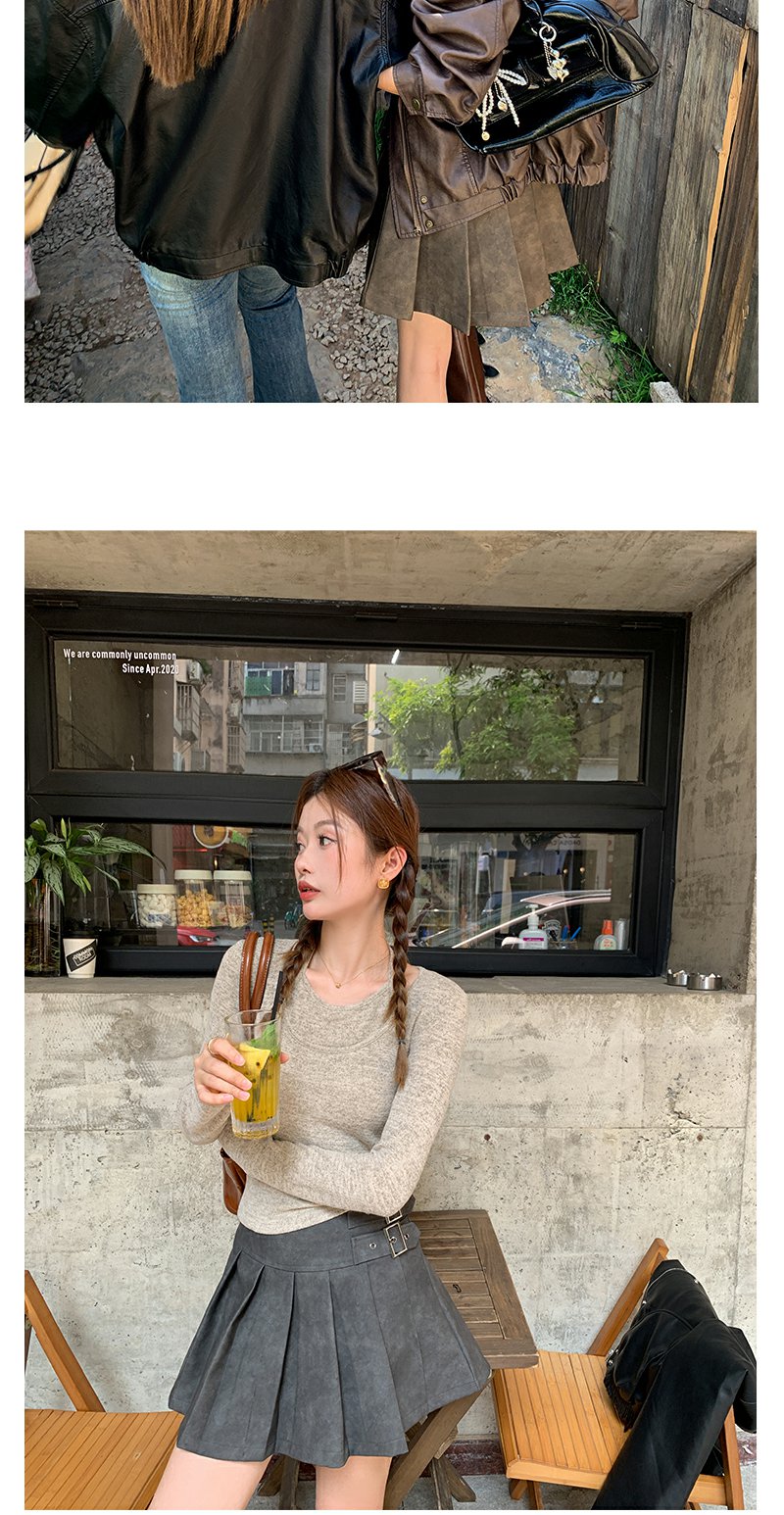 【129元任选2件】现货!复古百搭2色皮裙高腰a字百褶半裙