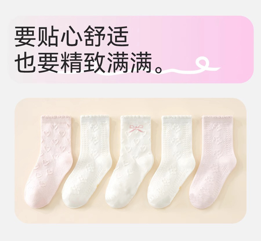 「5双装!公主童袜」儿童袜子女童春秋薄款宝宝袜白色童袜女孩袜女宝宝春夏袜潮流童装