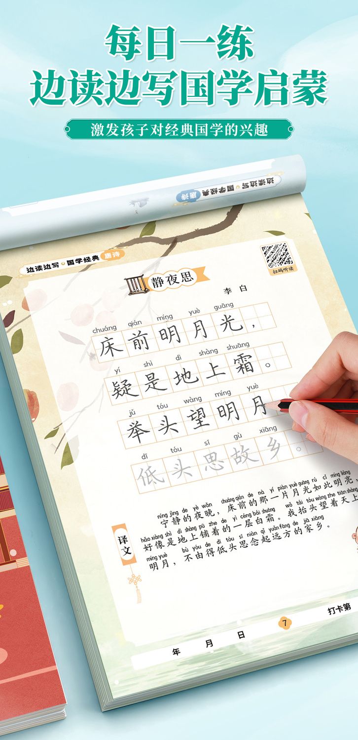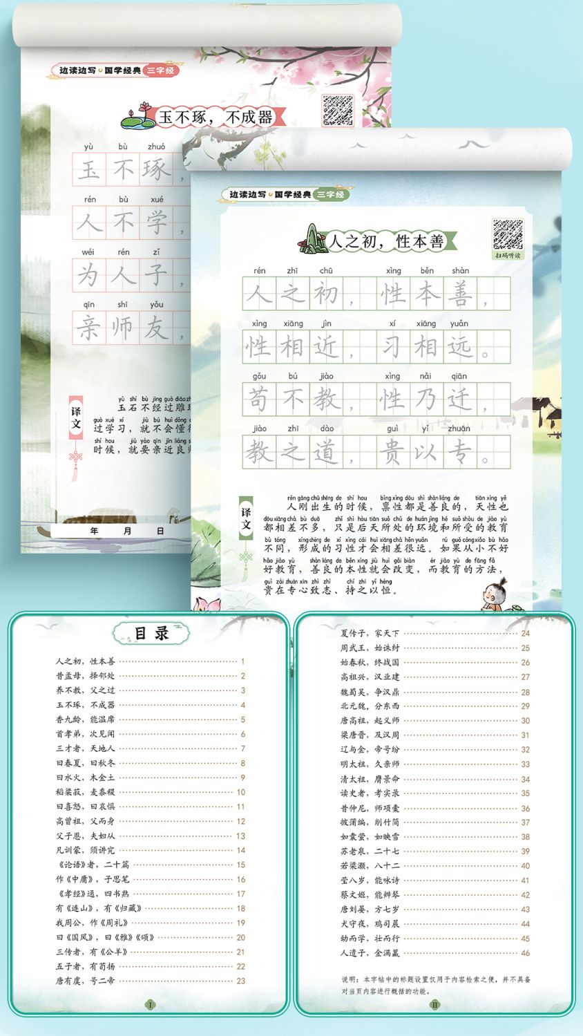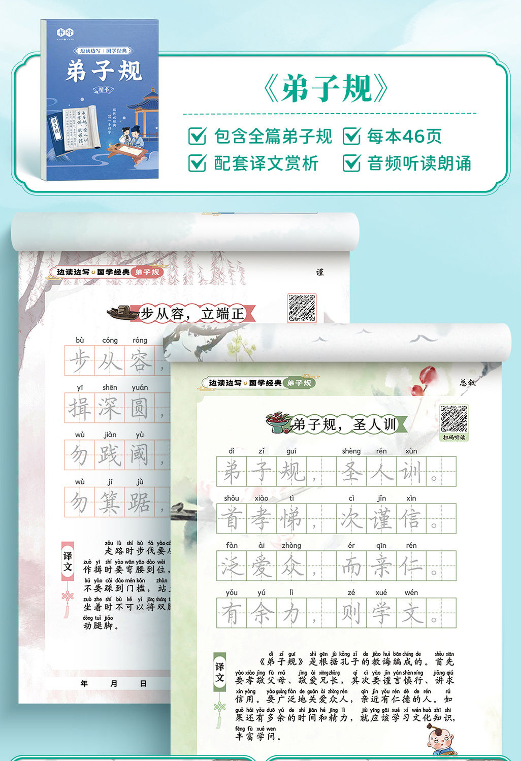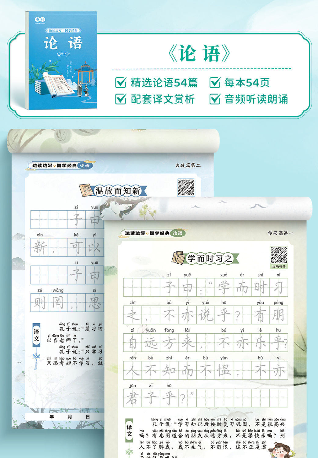 【扫码跟读】国学经典硬笔字帖边读边写每日一练论语三字经弟子规百家姓边读边写注音描红本唐诗千字文方正楷书练字帖