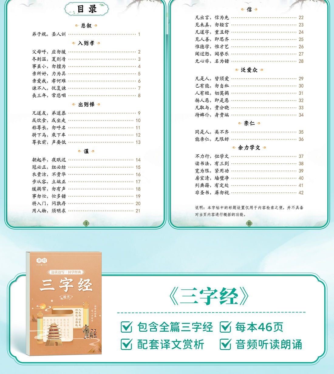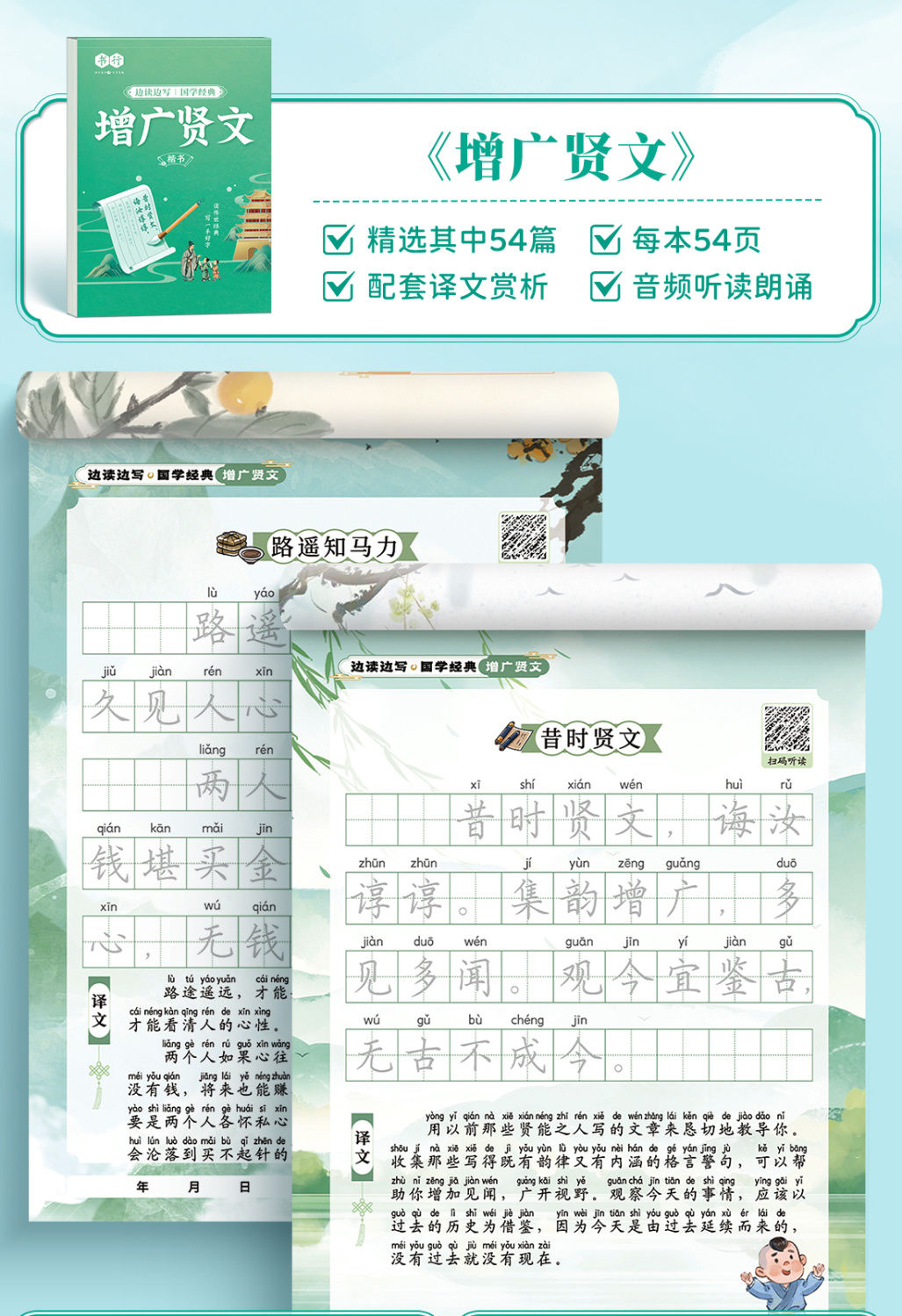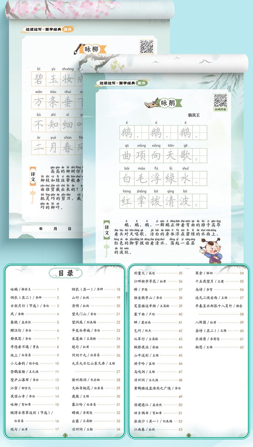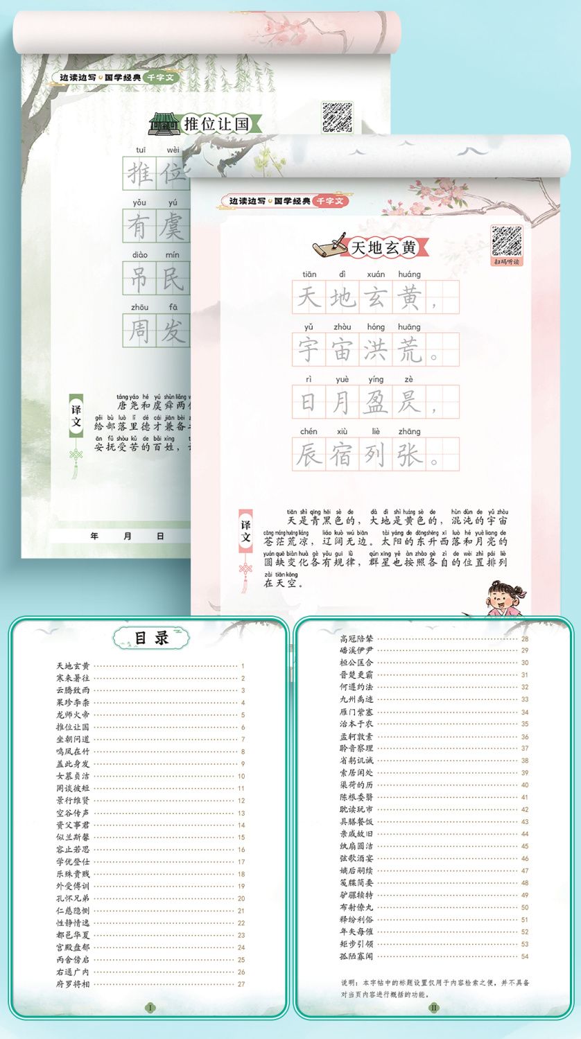 【扫码跟读】国学经典硬笔字帖边读边写每日一练论语三字经弟子规百家姓边读边写注音描红本唐诗千字文方正楷书练字帖