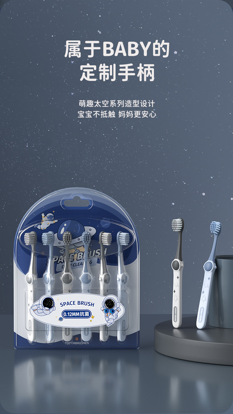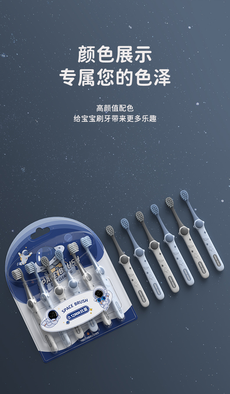 「19.9到手6支」太空设计款儿童牙刷软毛3-12岁宝宝用牙齿清洁口腔护理